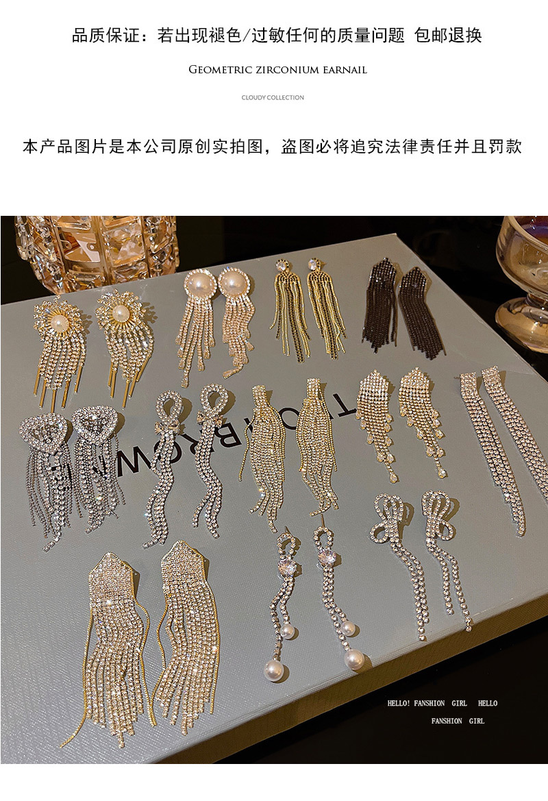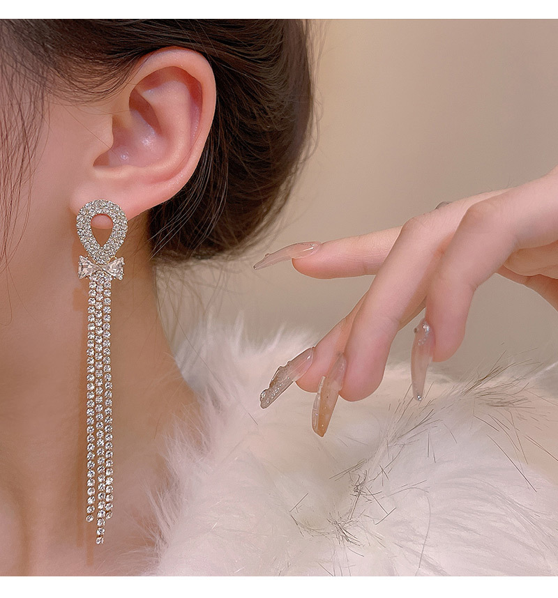 925银针精致满钻长款流苏耳环女ins潮轻奢小众网红同款蝴蝶结耳钉