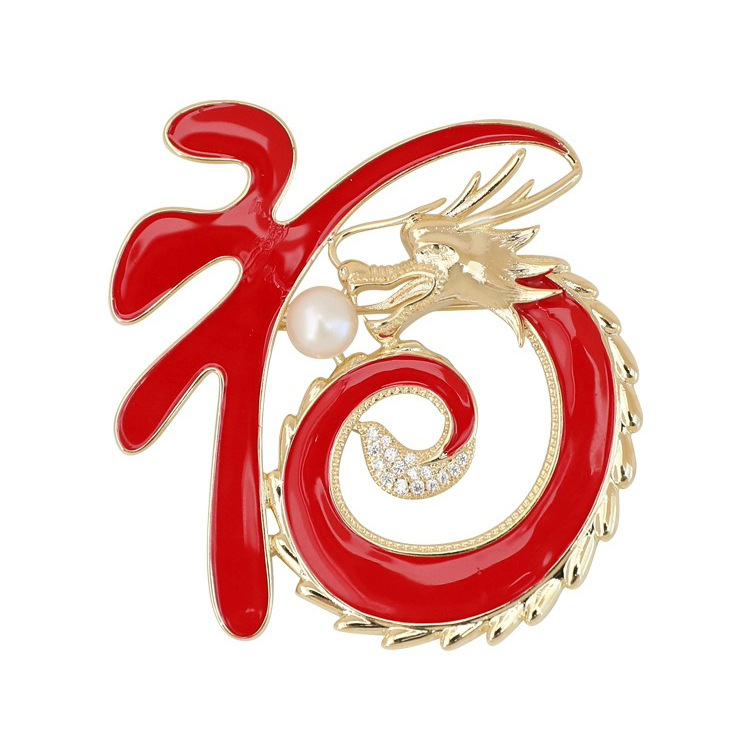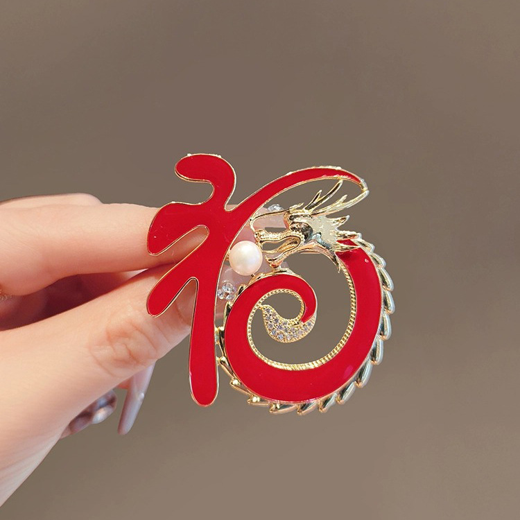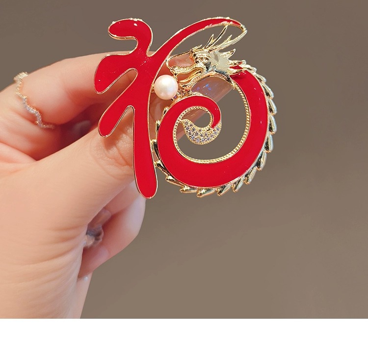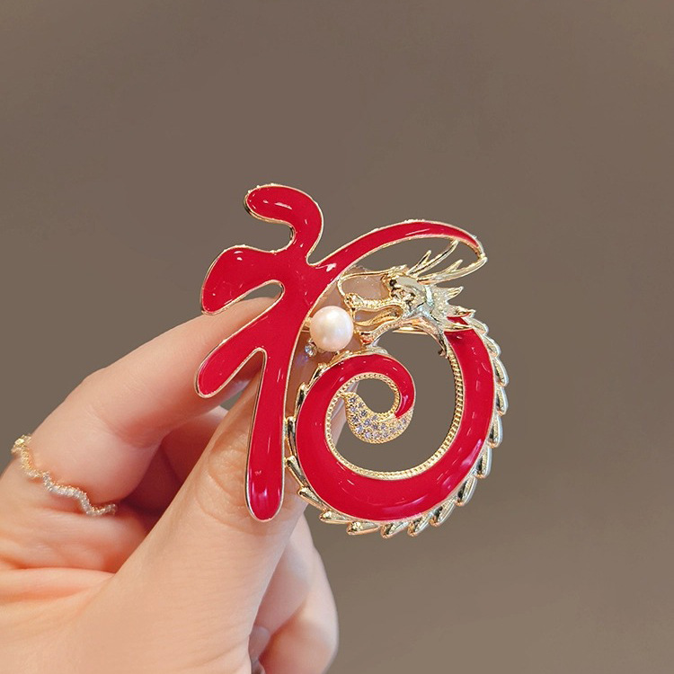 全家有福中国风福字红龙胸针女高档西装配饰别针2024龙年生肖礼物