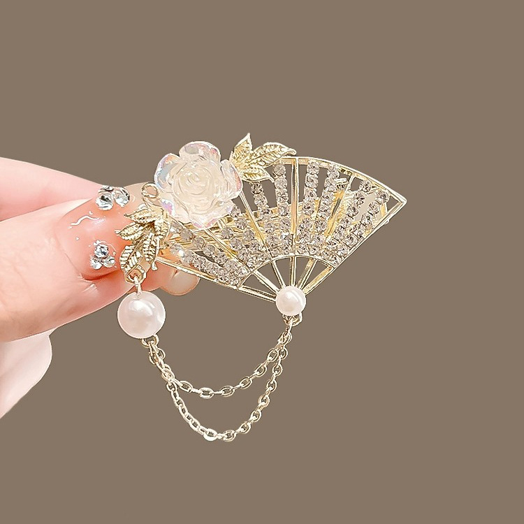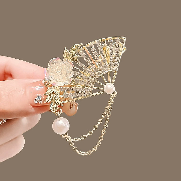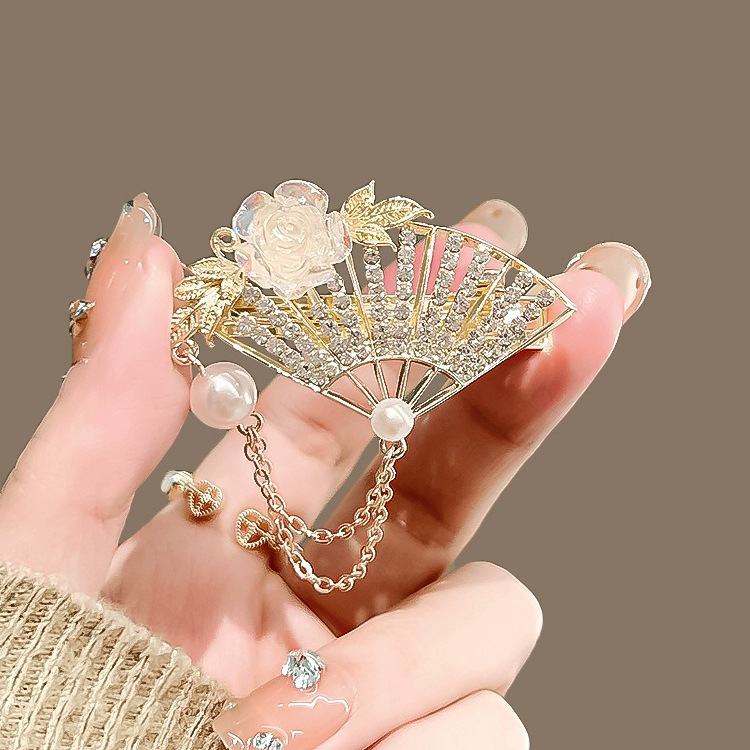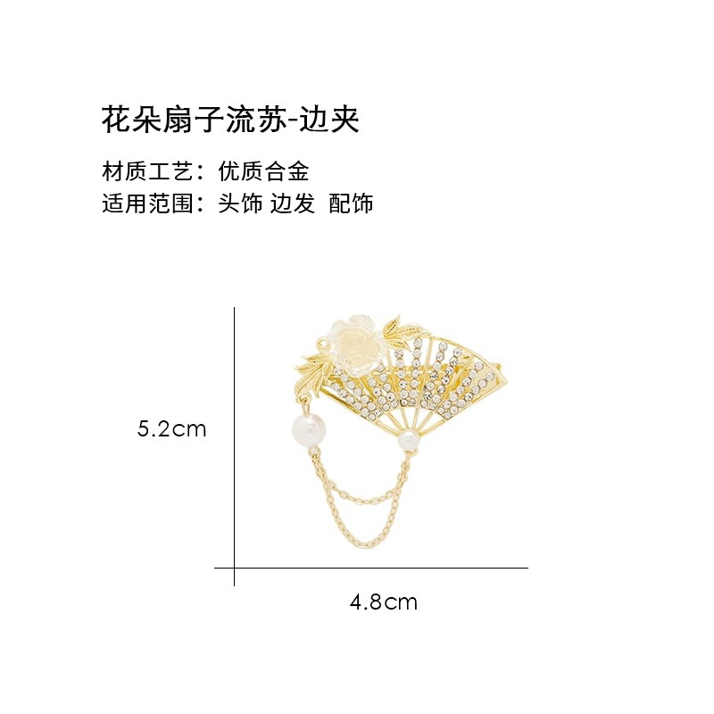 古风花朵扇子发夹气质发卡女侧边夹小众鸭嘴夹新款刘海夹汉服头饰