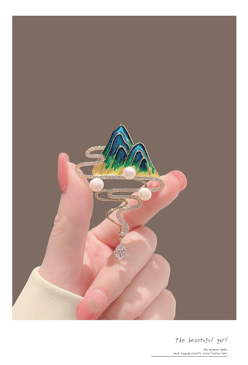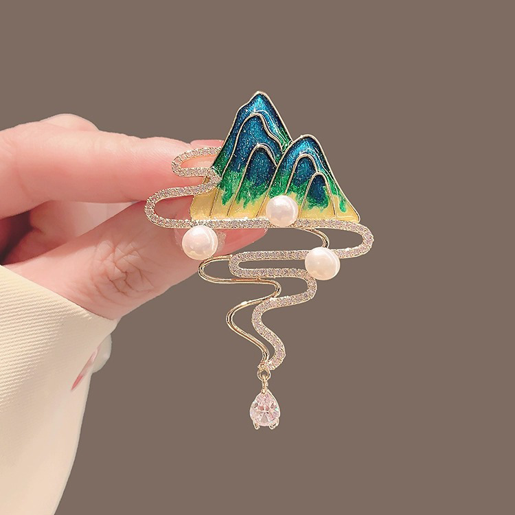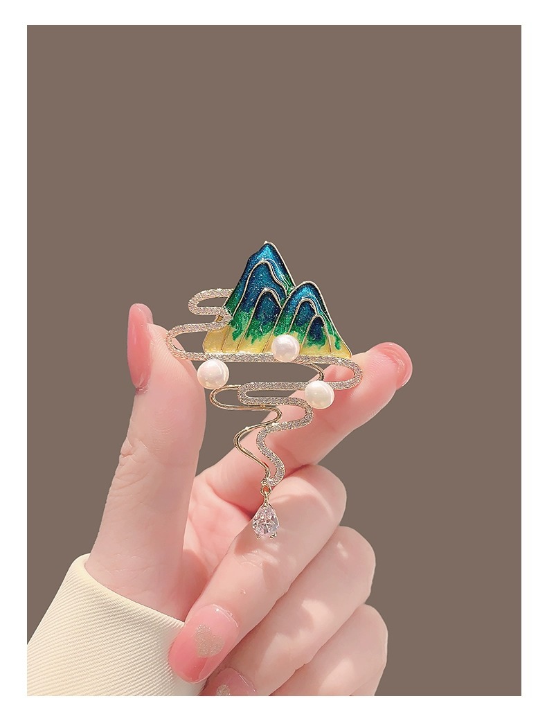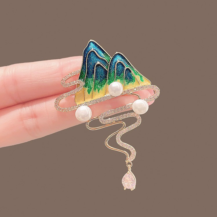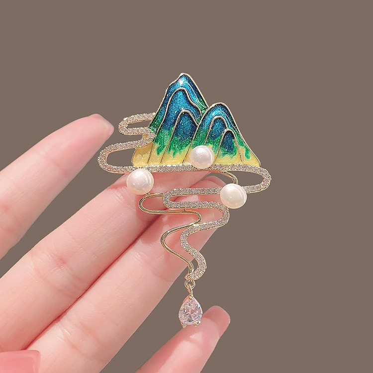 中国风复古名画千里江山图新中式胸针流苏汉服旗袍压襟胸针别针女