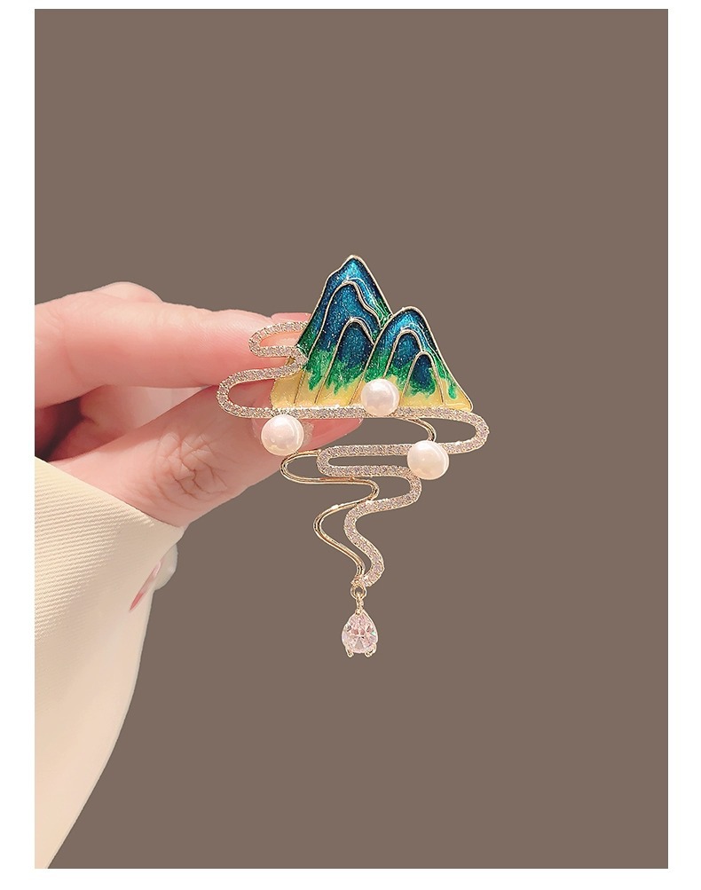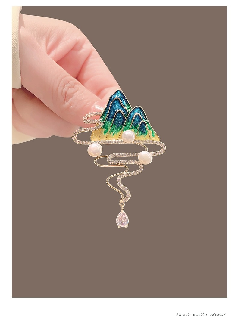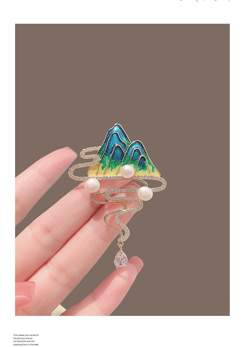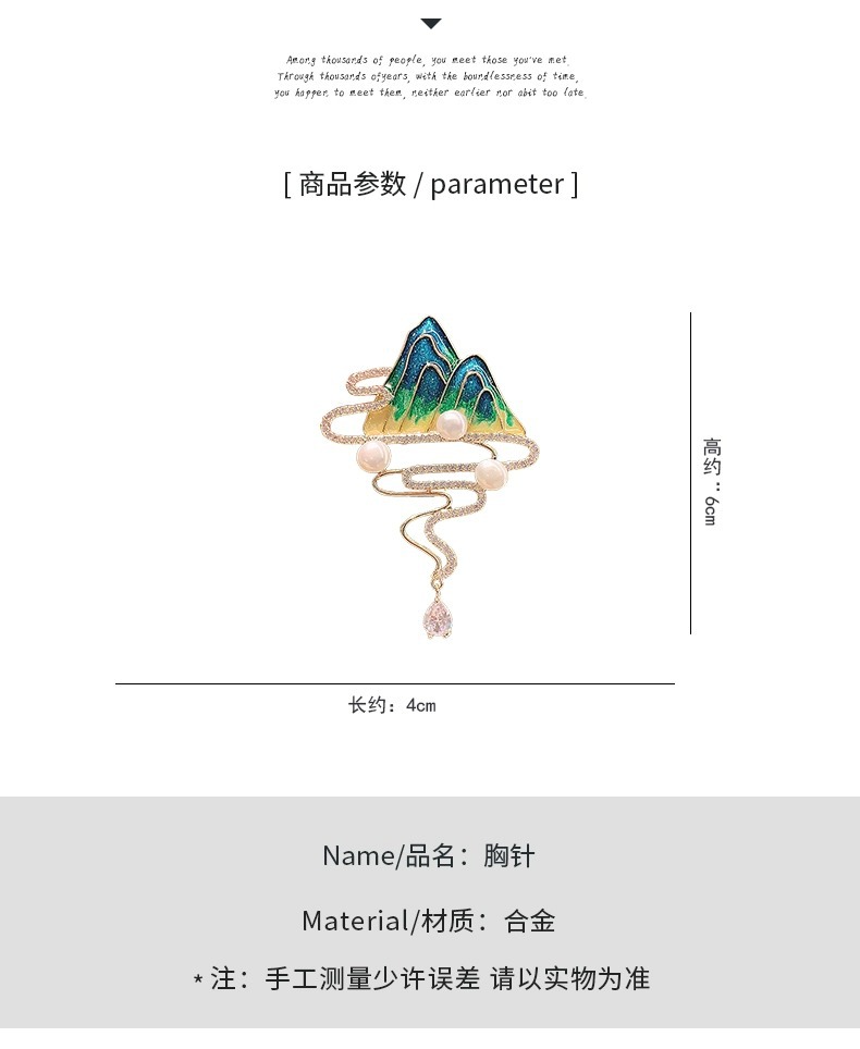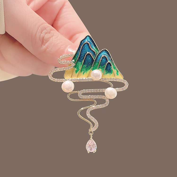 中国风复古名画千里江山图新中式胸针流苏汉服旗袍压襟胸针别针女