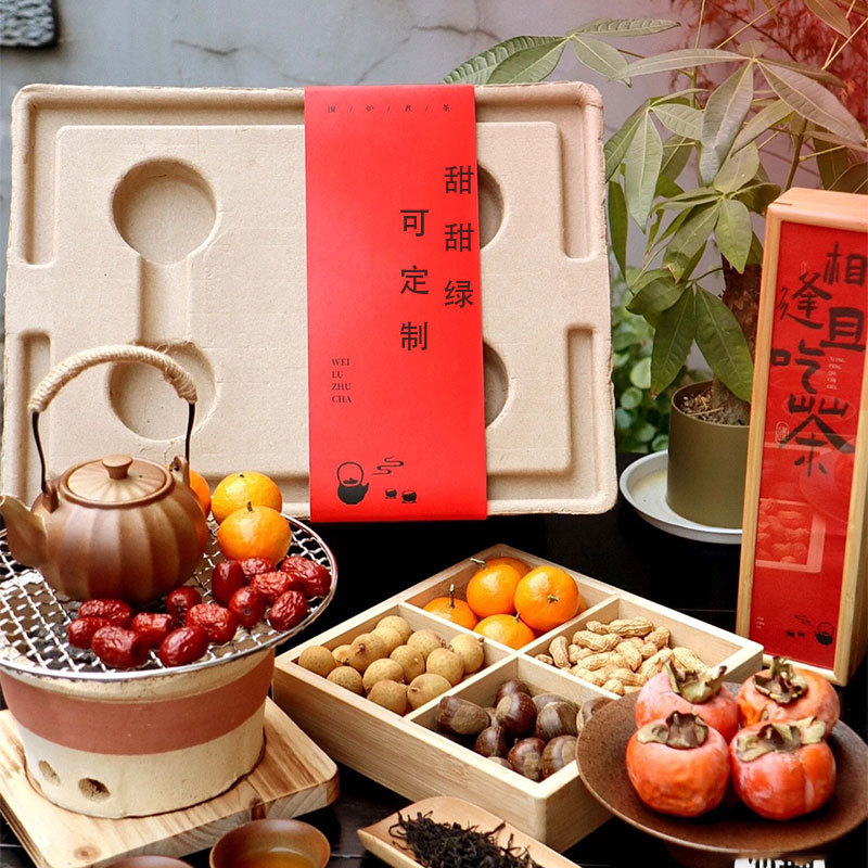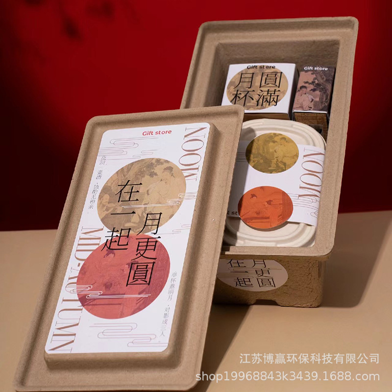 新年礼盒纸浆盒伴手礼盒可全降解礼品环保包装盒纸浆模塑干压中国