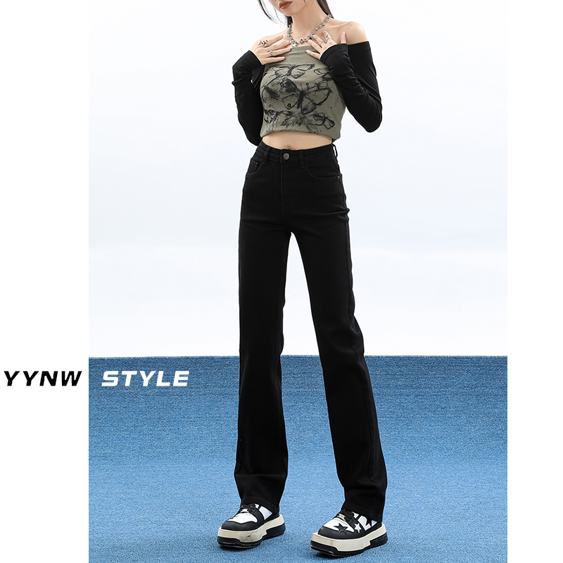 高腰窄版直筒牛仔裤女2024春季新款显瘦弹力烟管裤高个子拖地裤子
