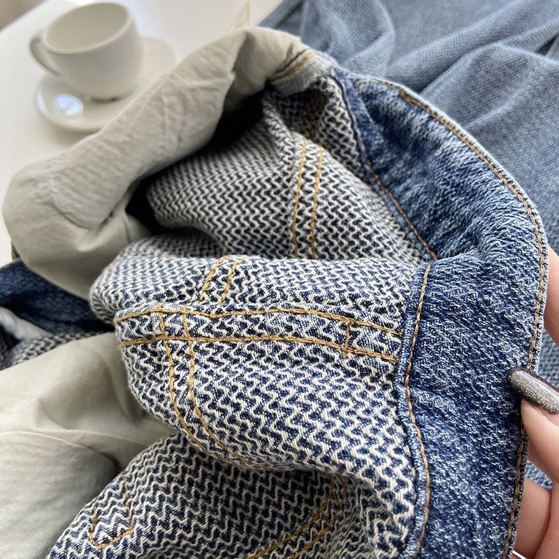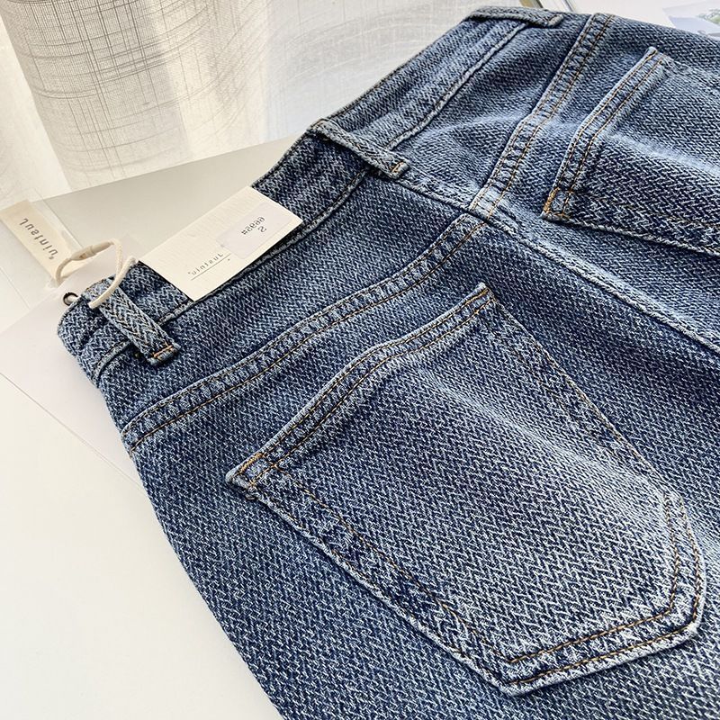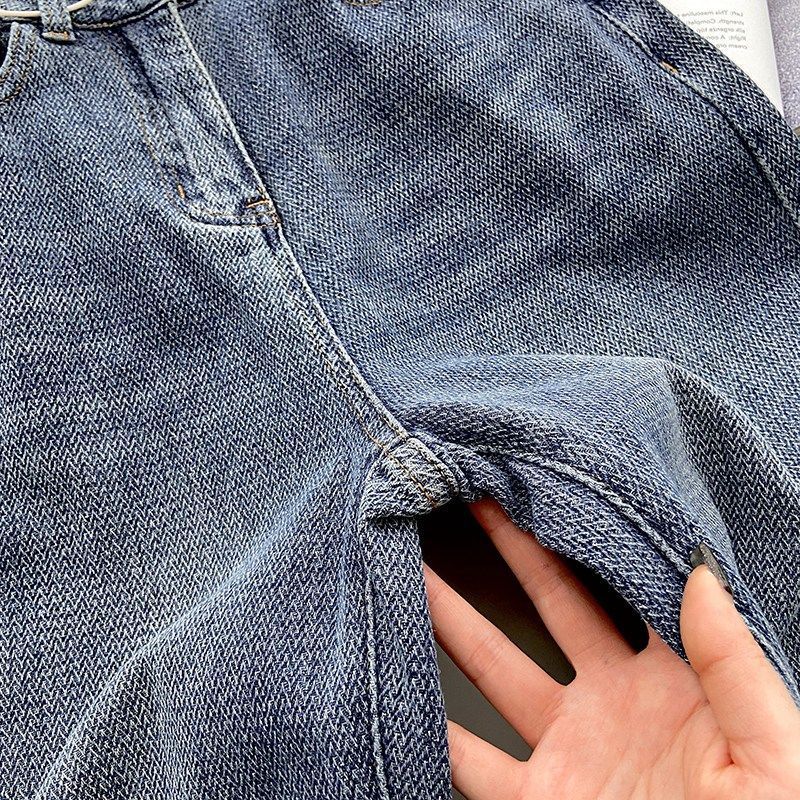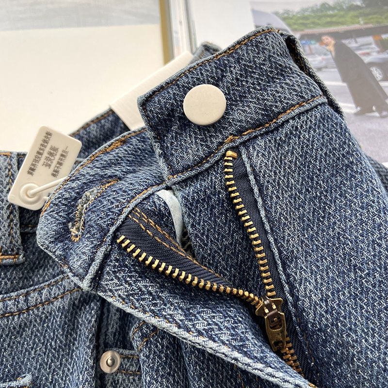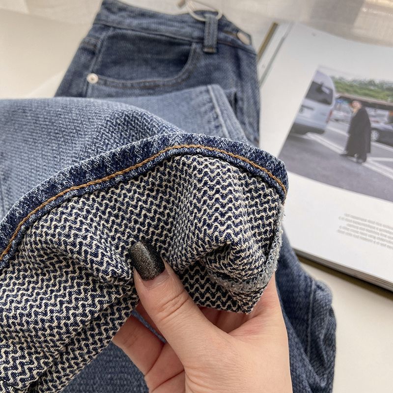 美式复古蓝色直筒牛仔裤女春秋设计感小众高腰宽松阔腿拖地长裤子