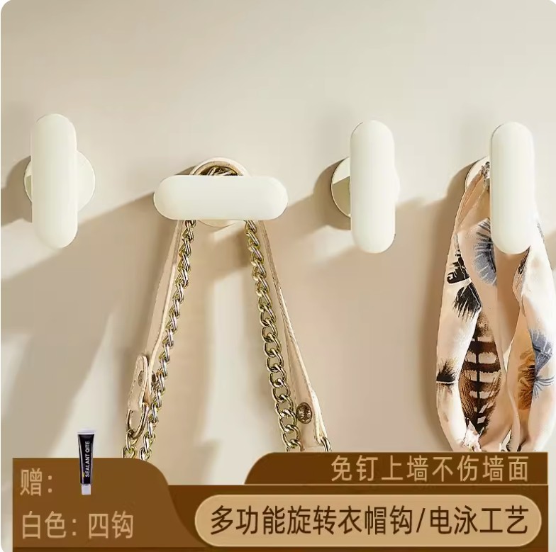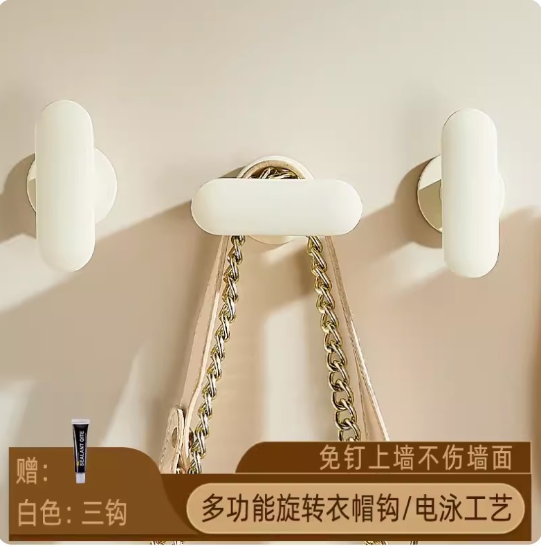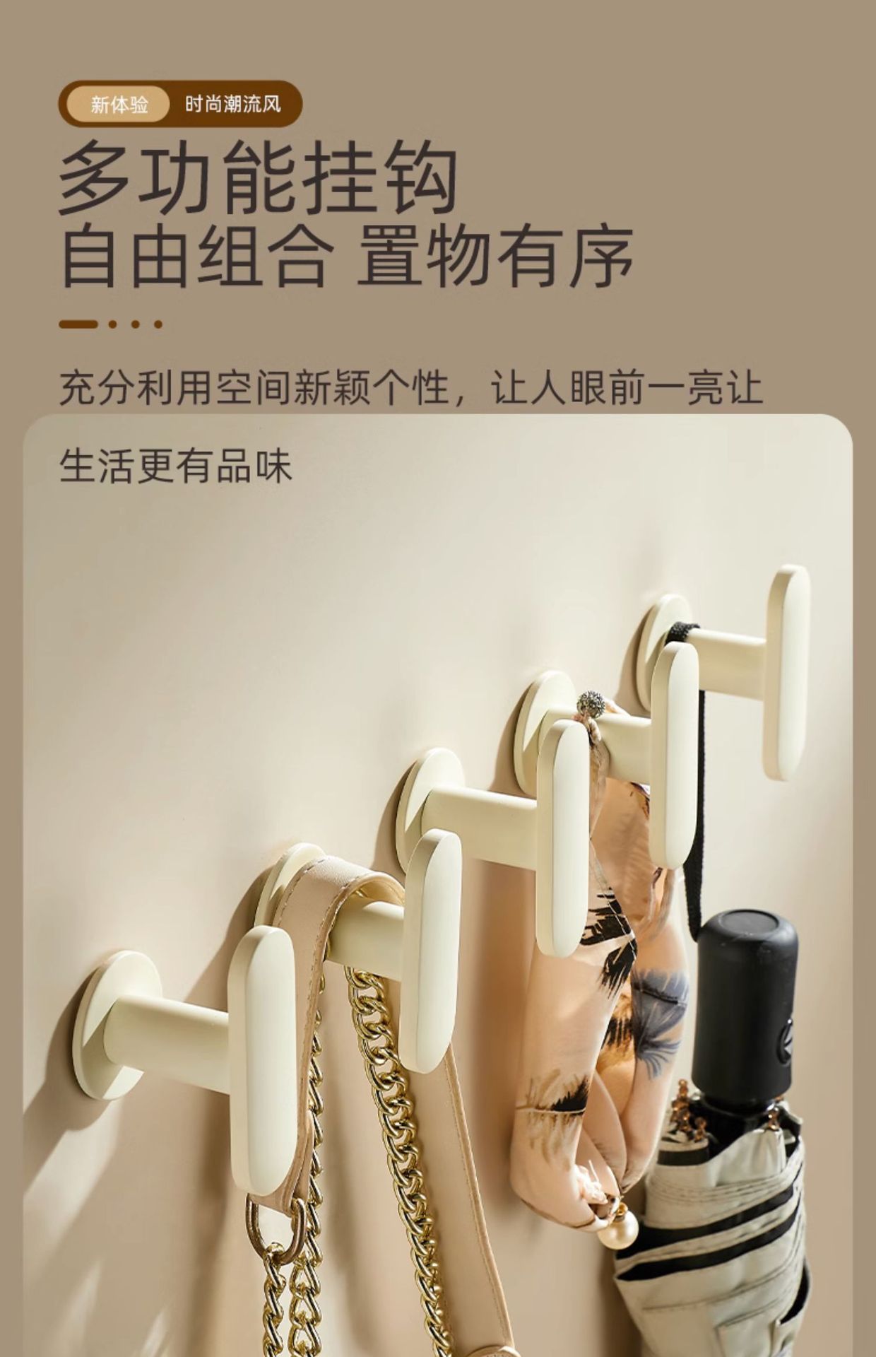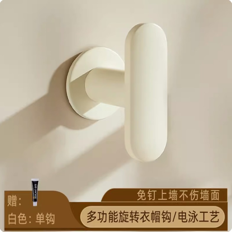 奶油风白色浴室衣服卫生间墙上毛巾衣帽挂钩免打孔进门玄关置物架
