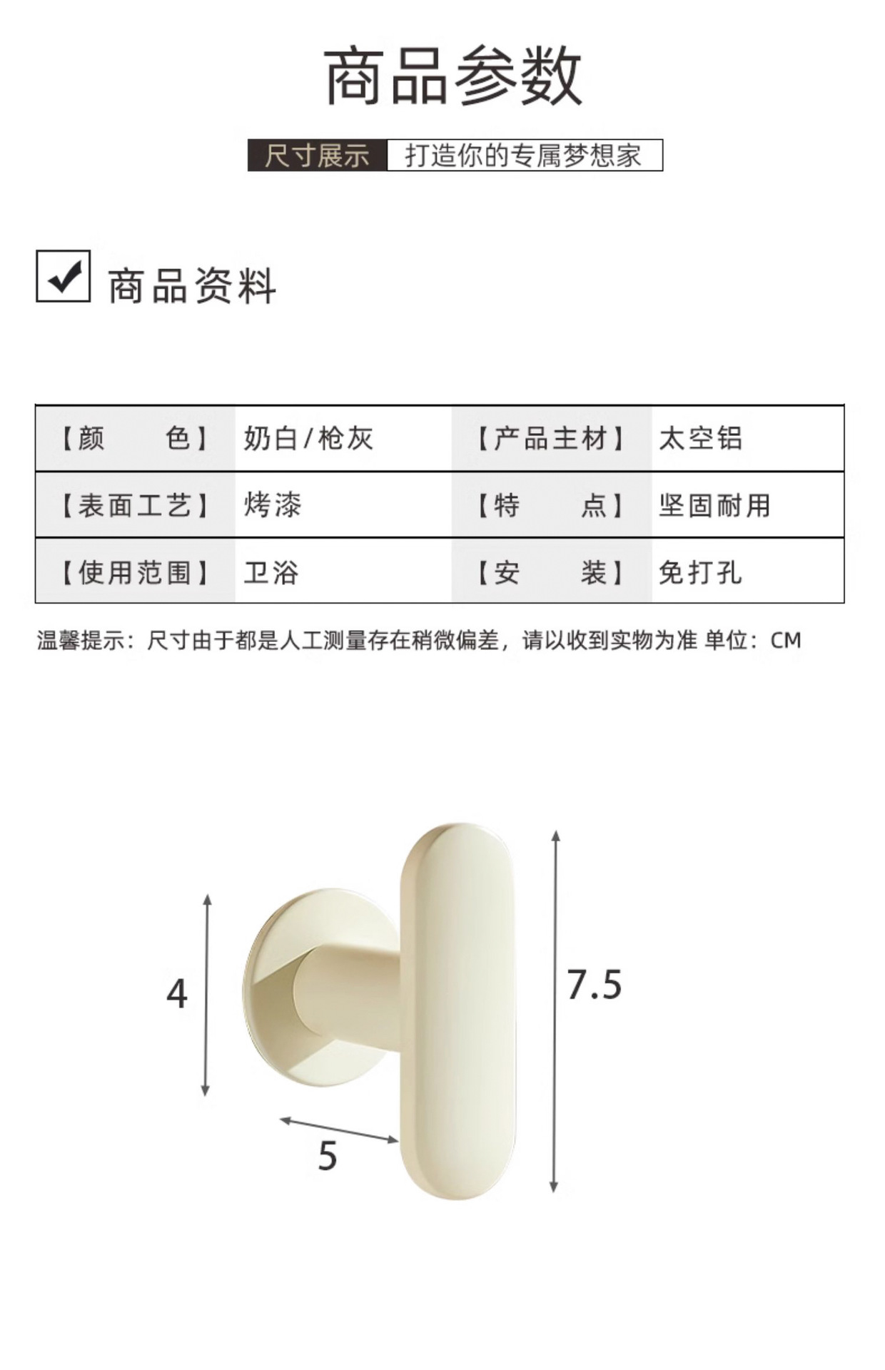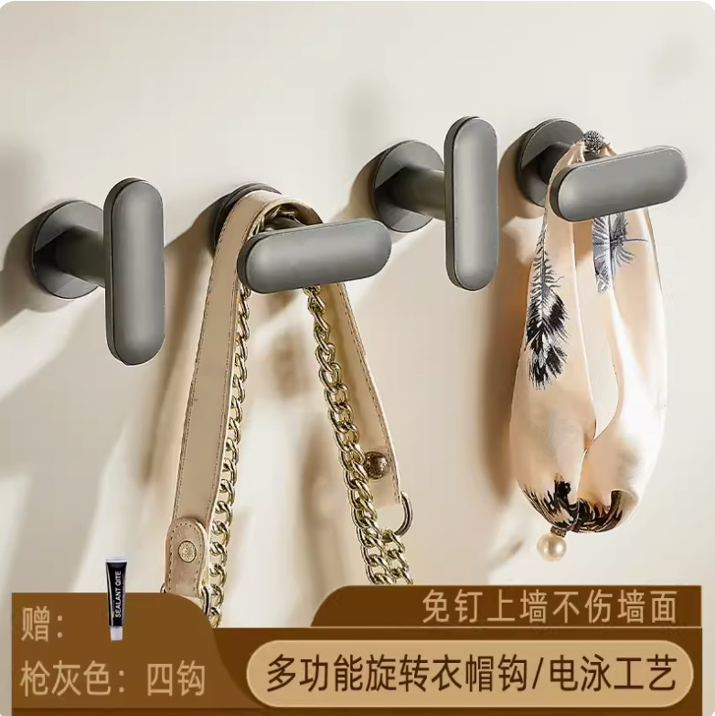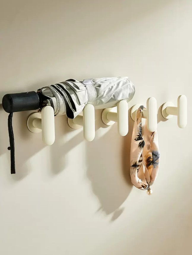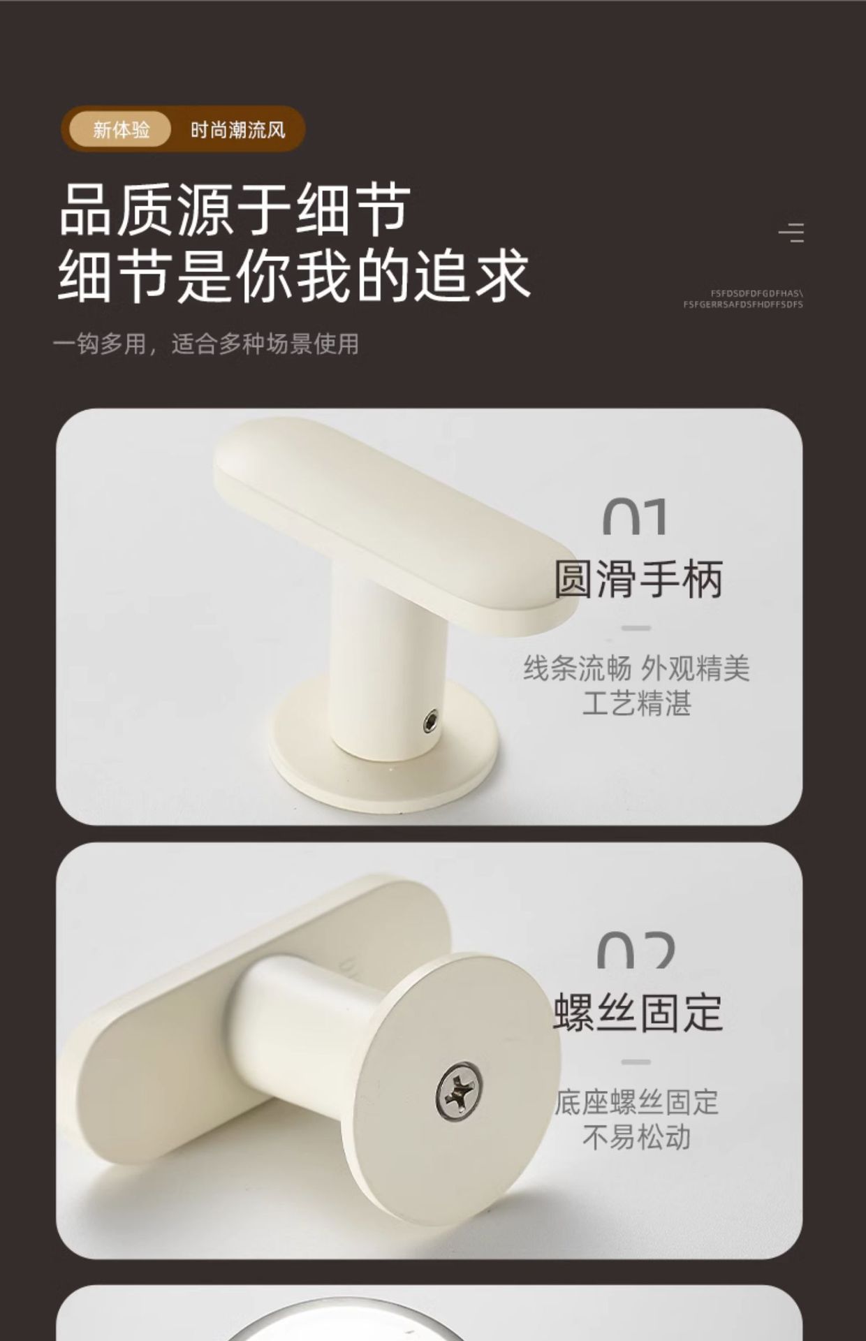 奶油风白色浴室衣服卫生间墙上毛巾衣帽挂钩免打孔进门玄关置物架