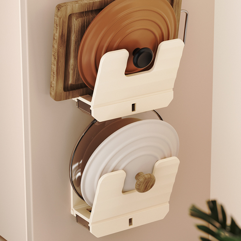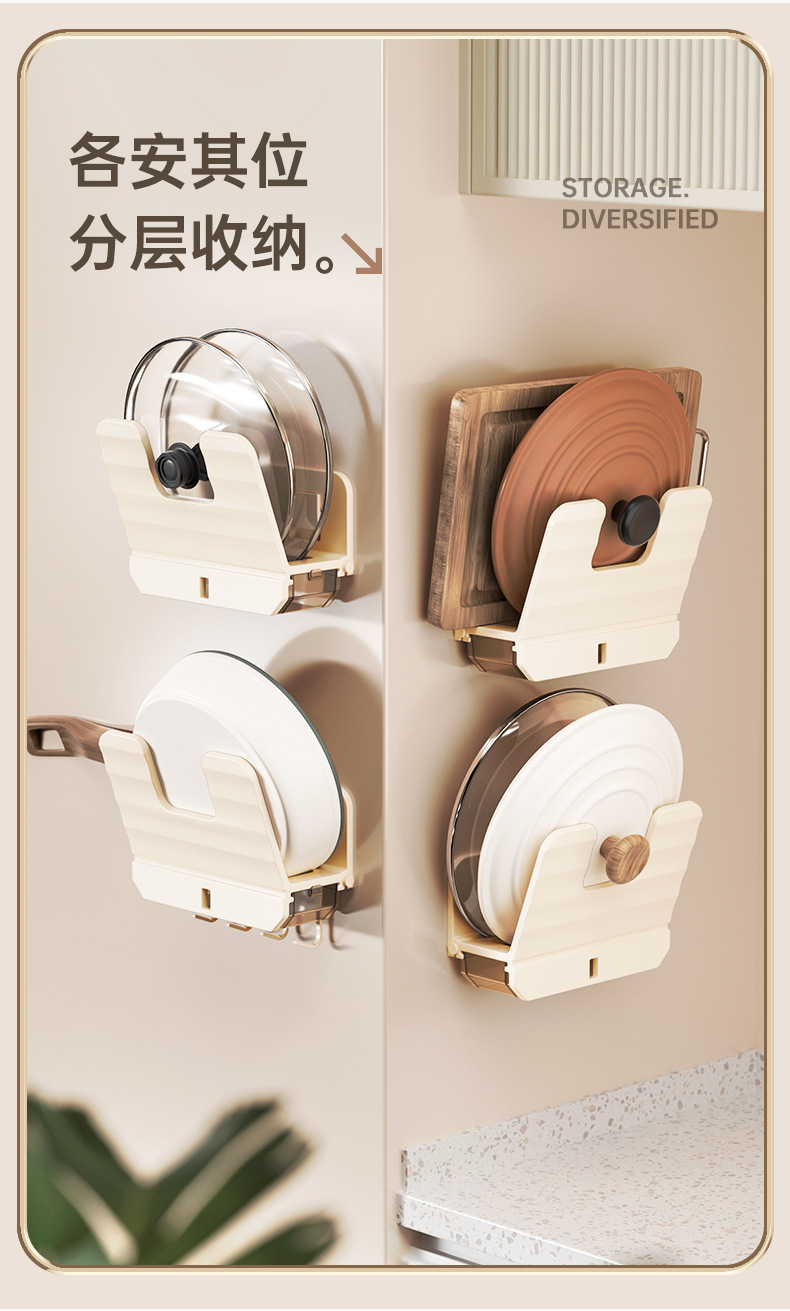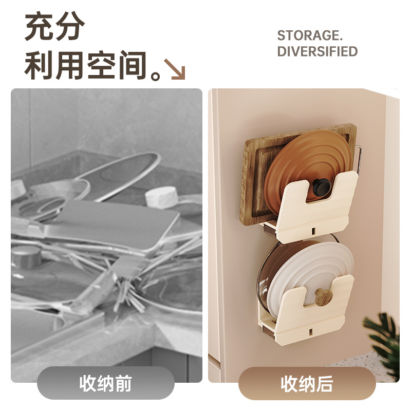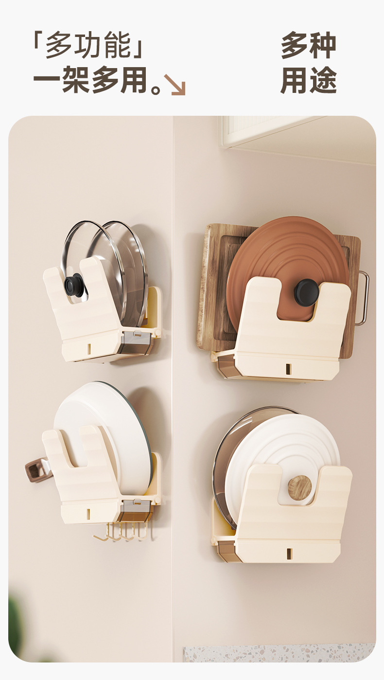 厨房锅盖架子置物架白色免打孔菜板放置架壁挂式砧板多功能收纳架