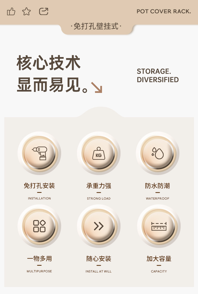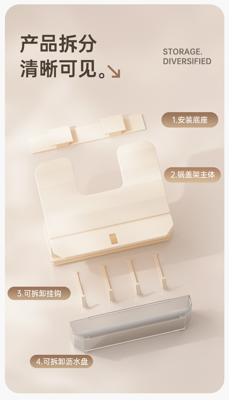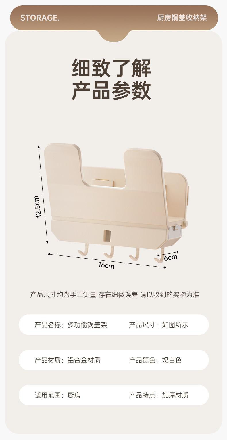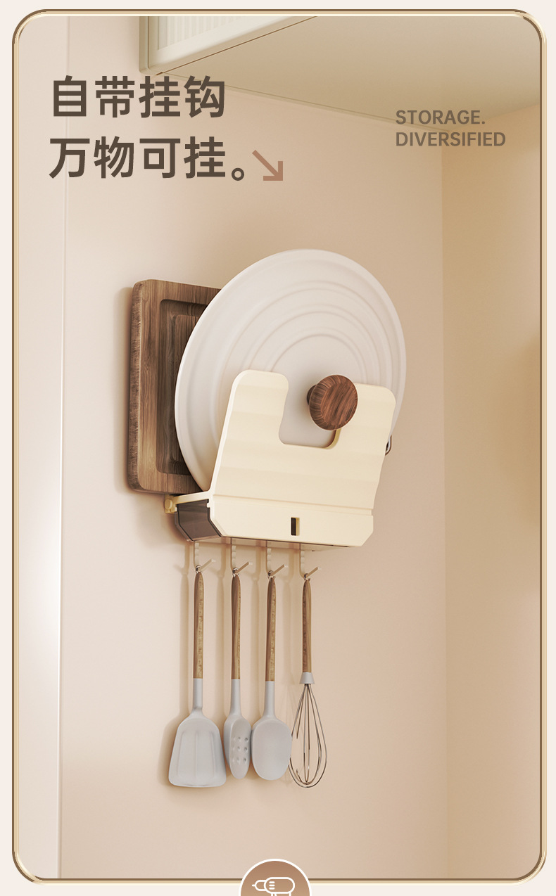 厨房锅盖架子置物架白色免打孔菜板放置架壁挂式砧板多功能收纳架