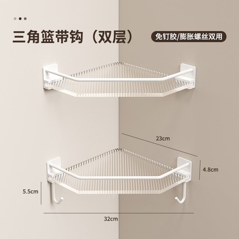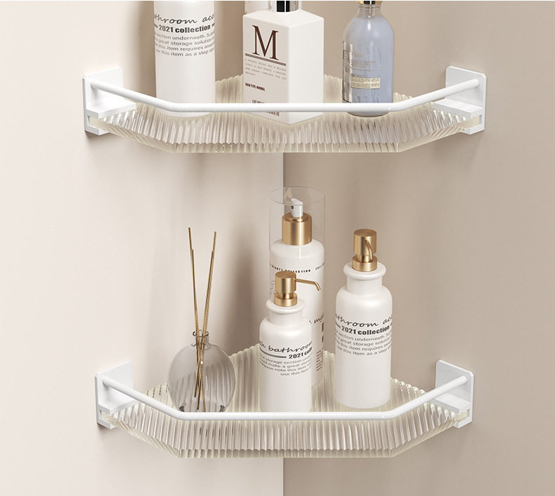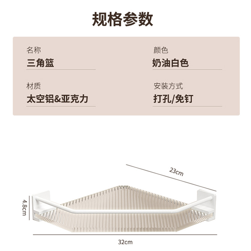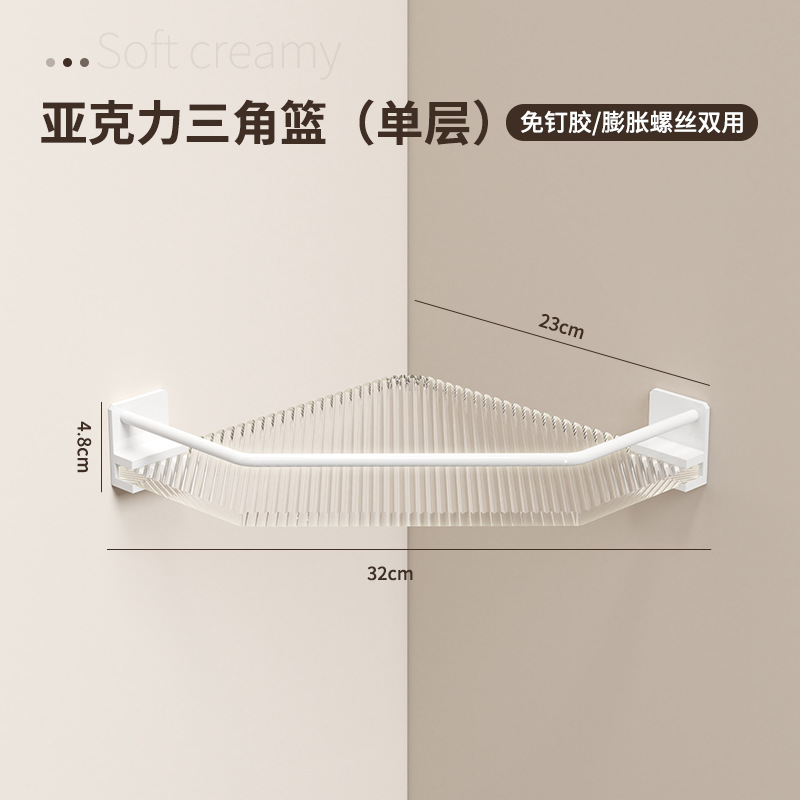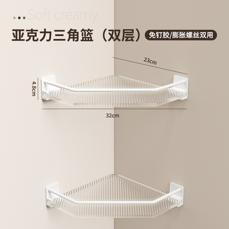 白色亚克力三角架卫生间免打孔洗澡间墙角置物架壁挂式墙上三角蓝