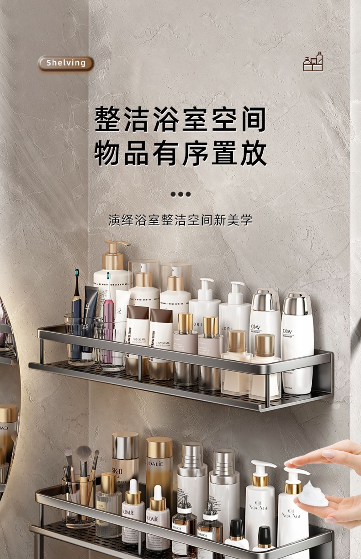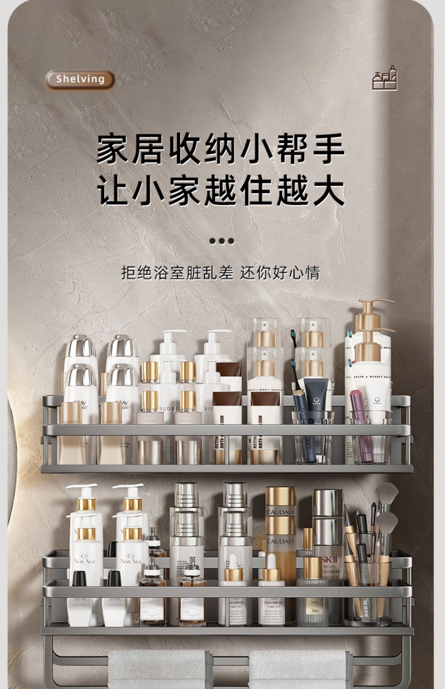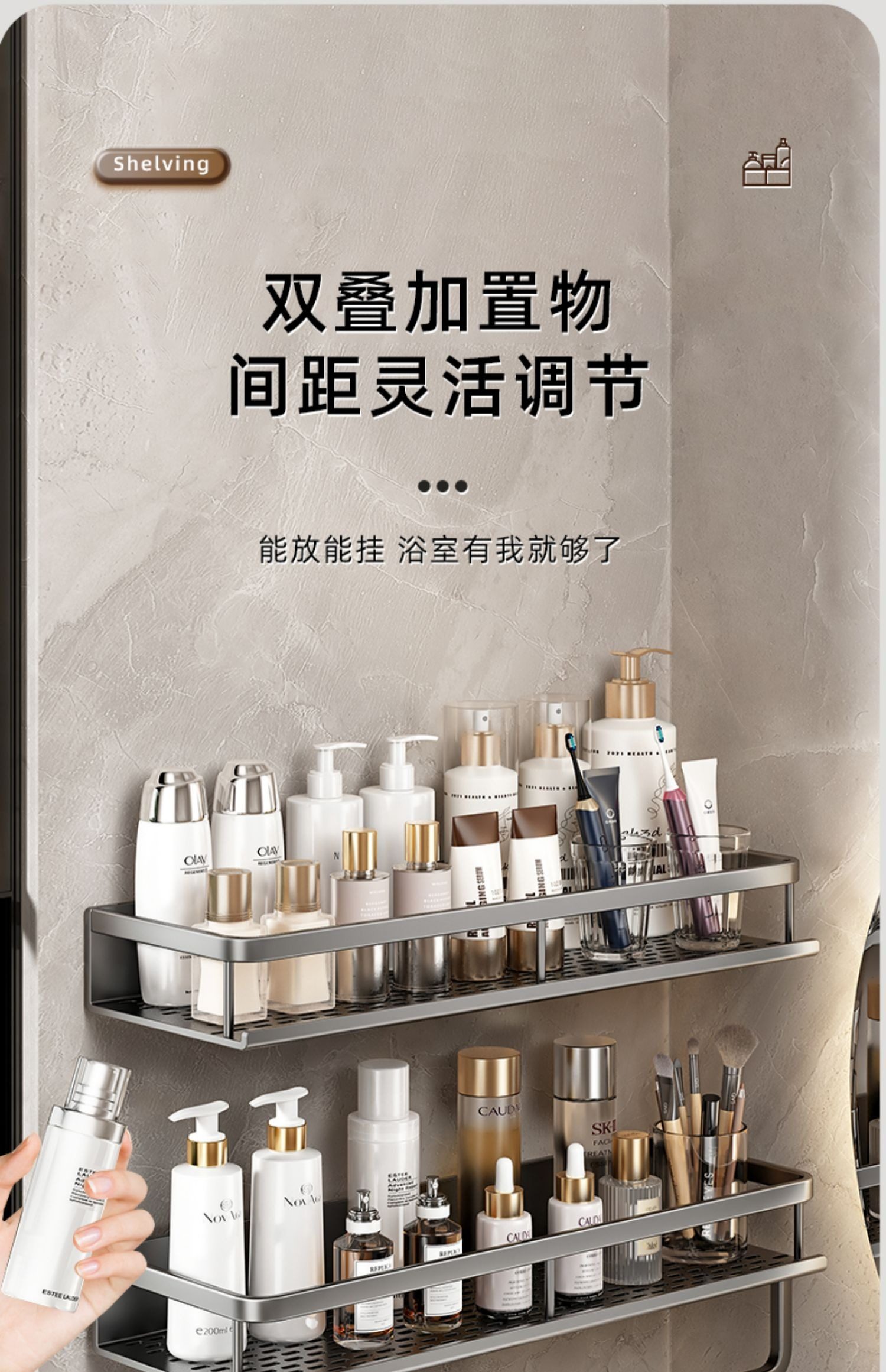 华尔特浴室卫生间置物架厕所洗手洗澡间洗漱台壁挂式墙上收纳架子