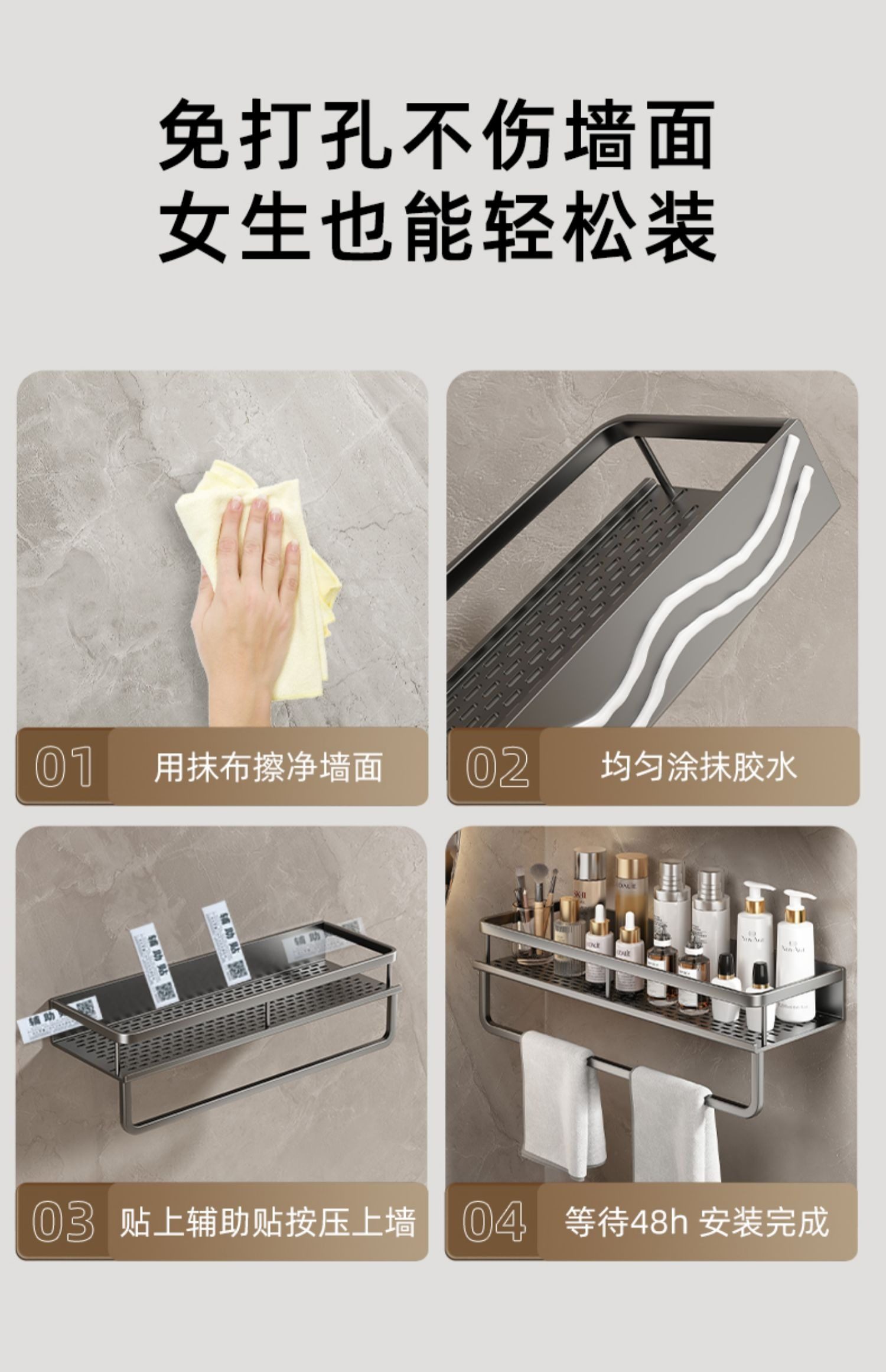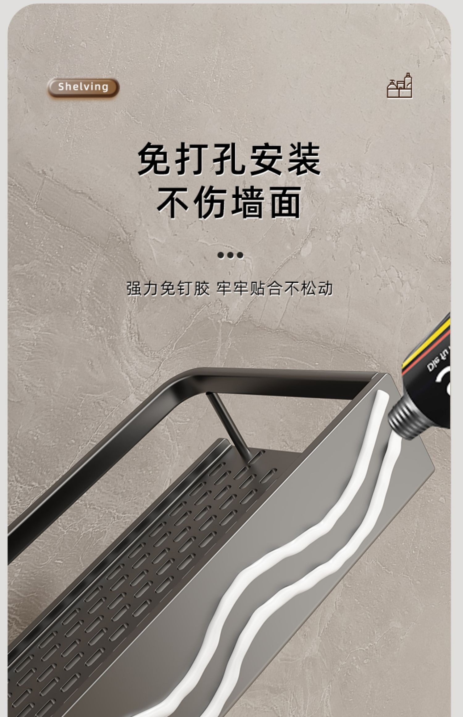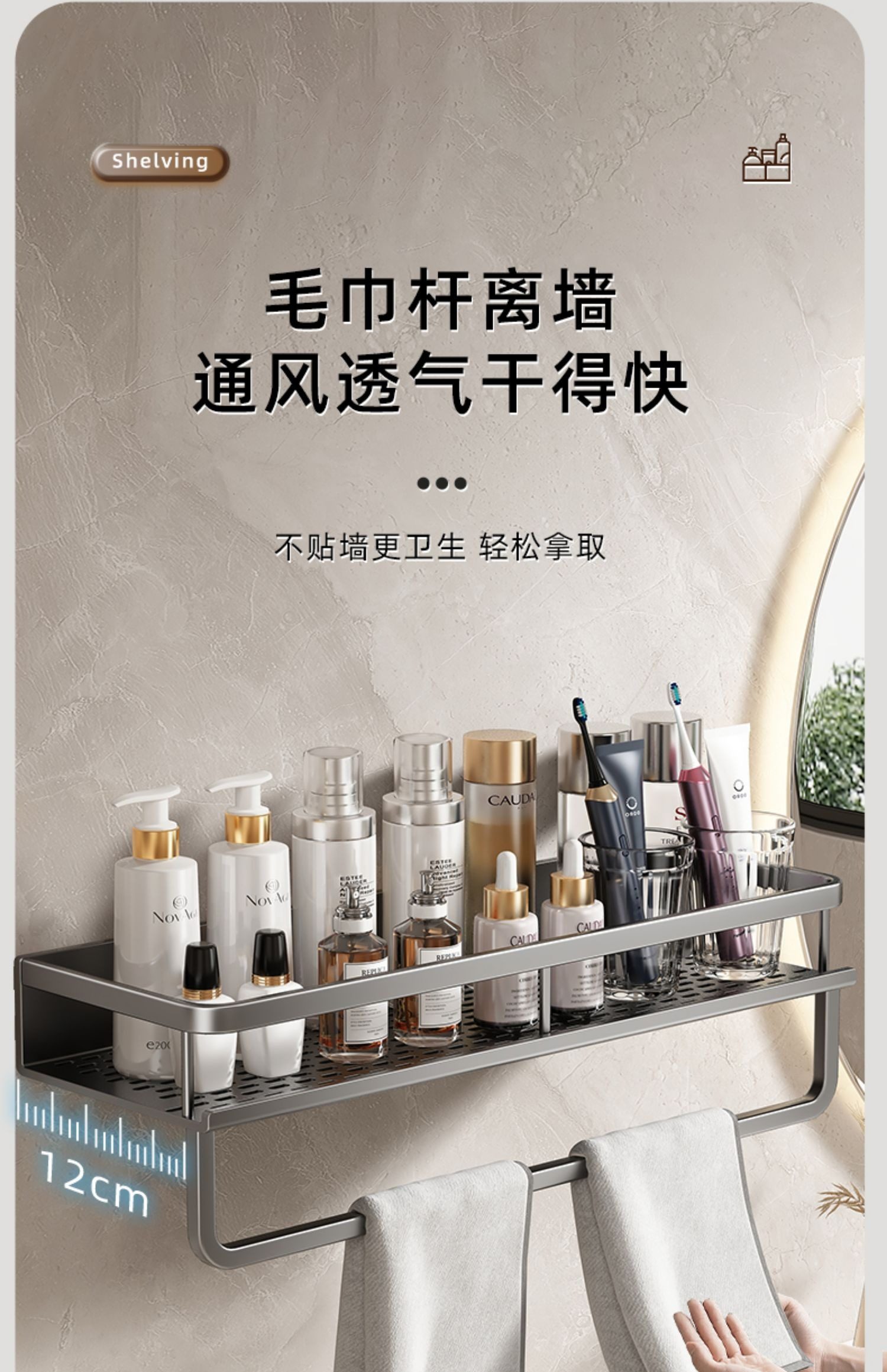 华尔特浴室卫生间置物架厕所洗手洗澡间洗漱台壁挂式墙上收纳架子