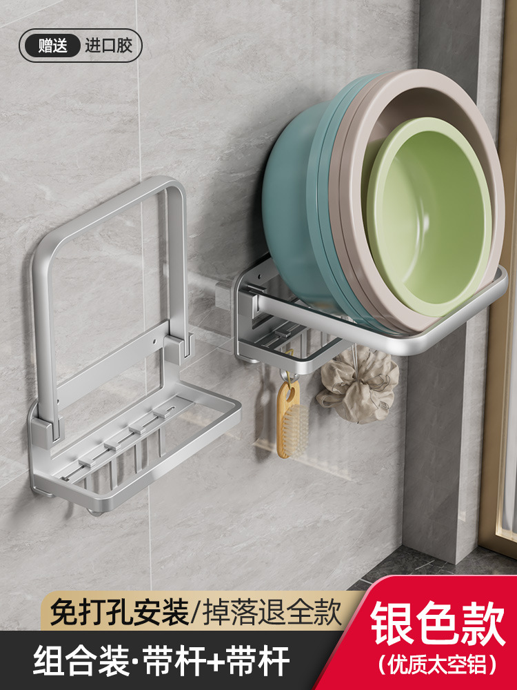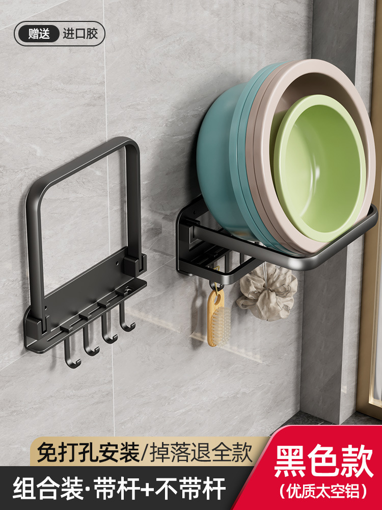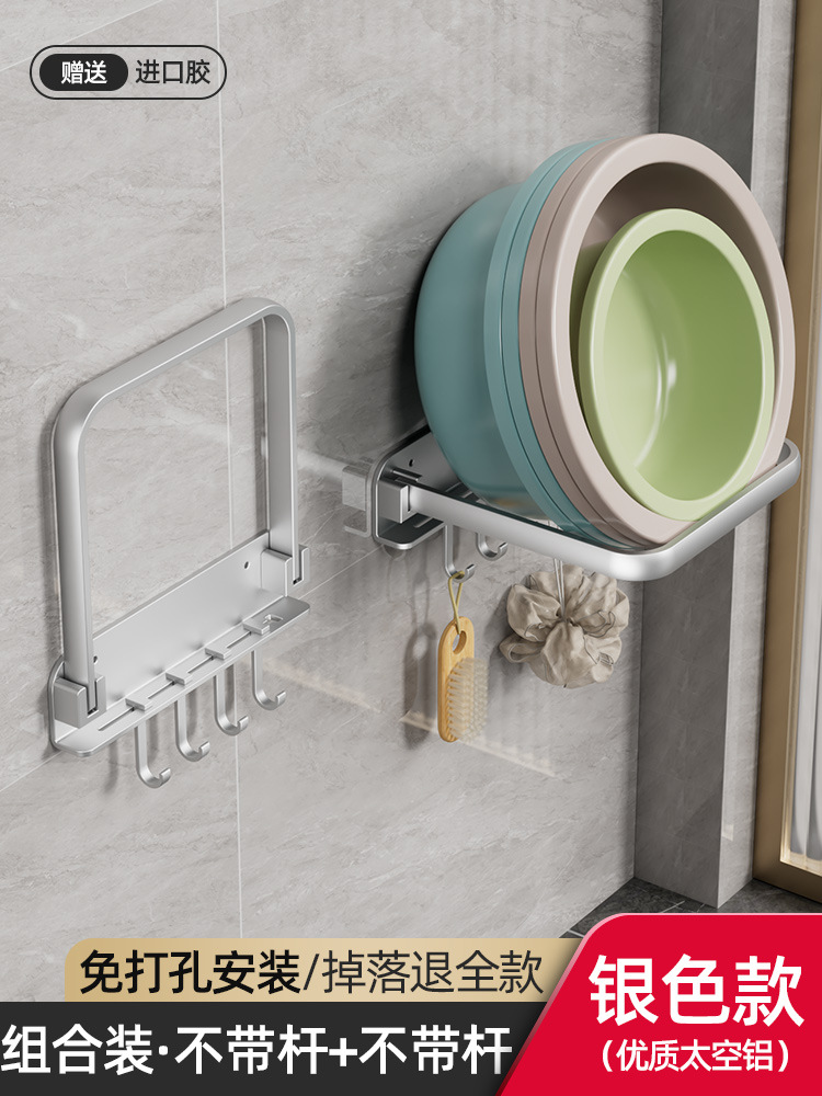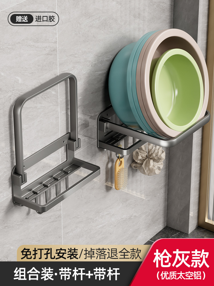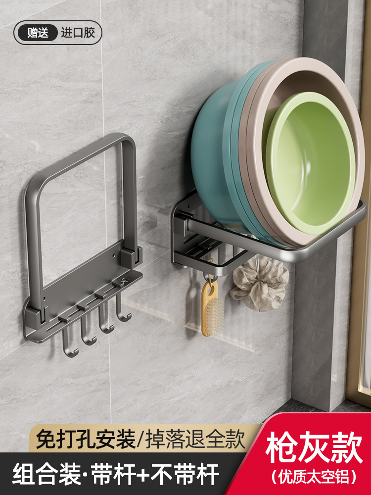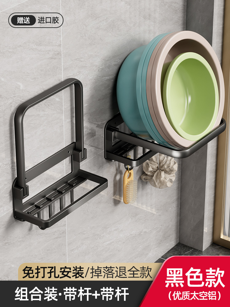 脸盆架壁挂式免打孔厨房卫生间置物架家用多功能浴室盆子收纳挂钩