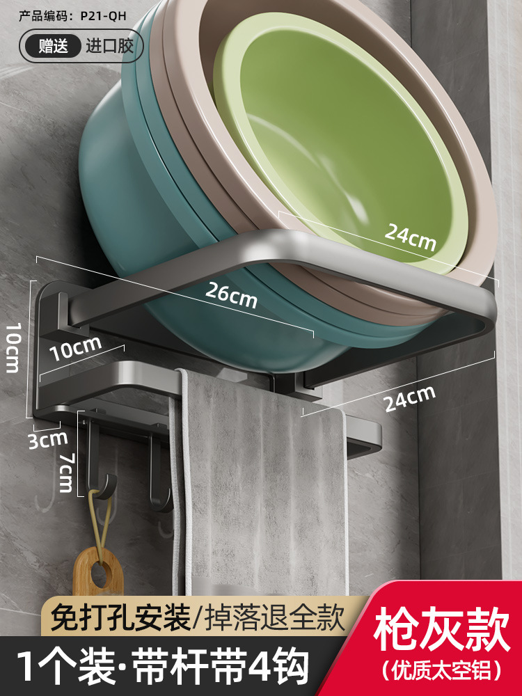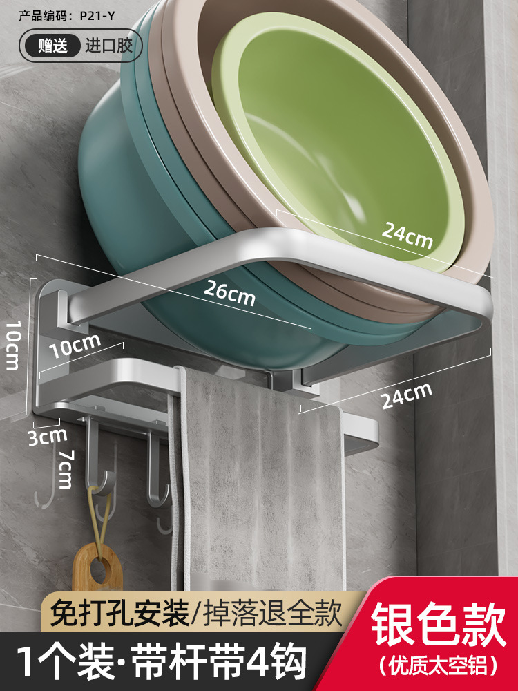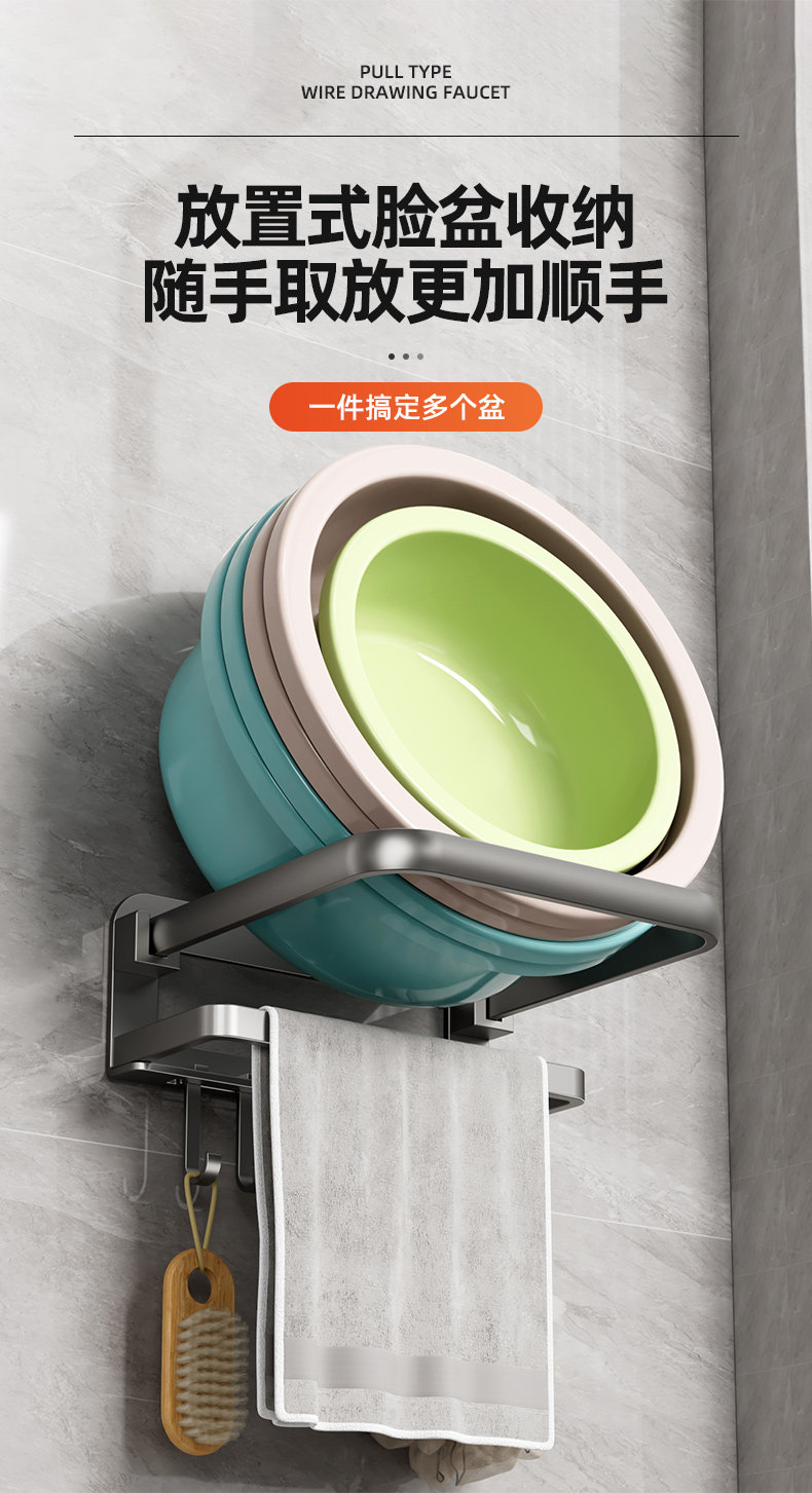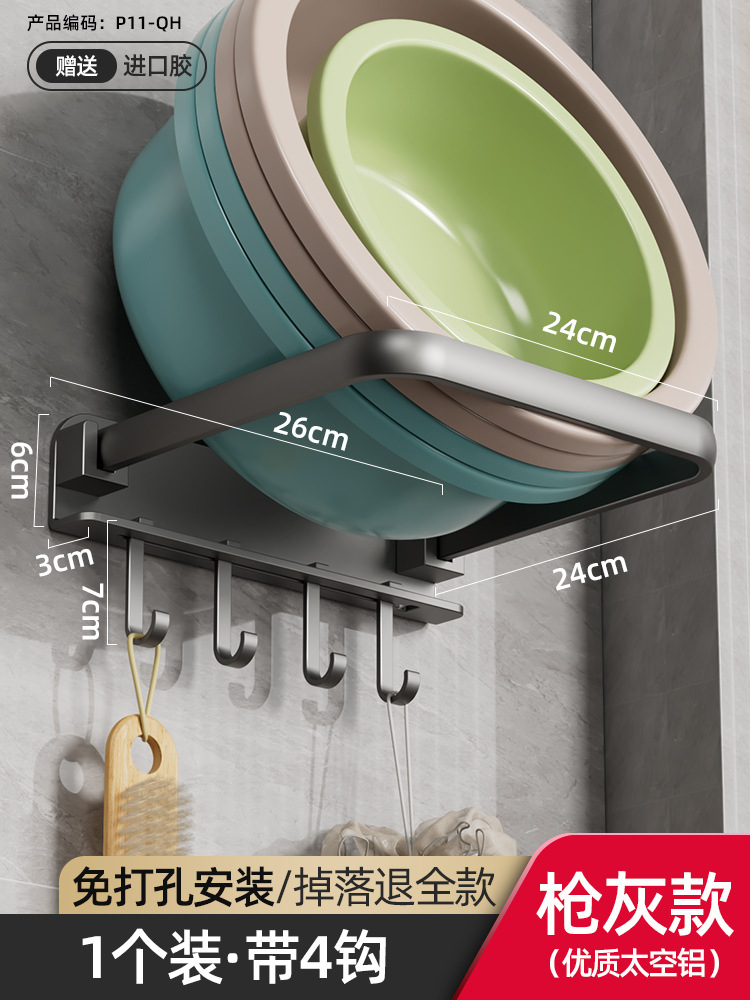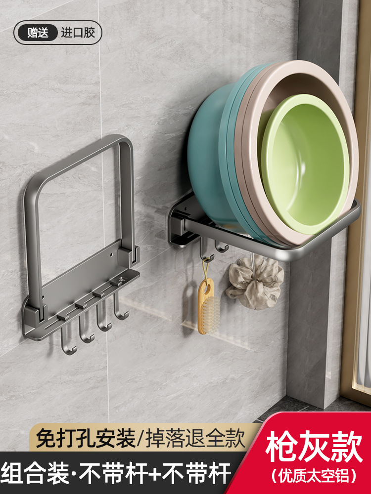 脸盆架壁挂式免打孔厨房卫生间置物架家用多功能浴室盆子收纳挂钩