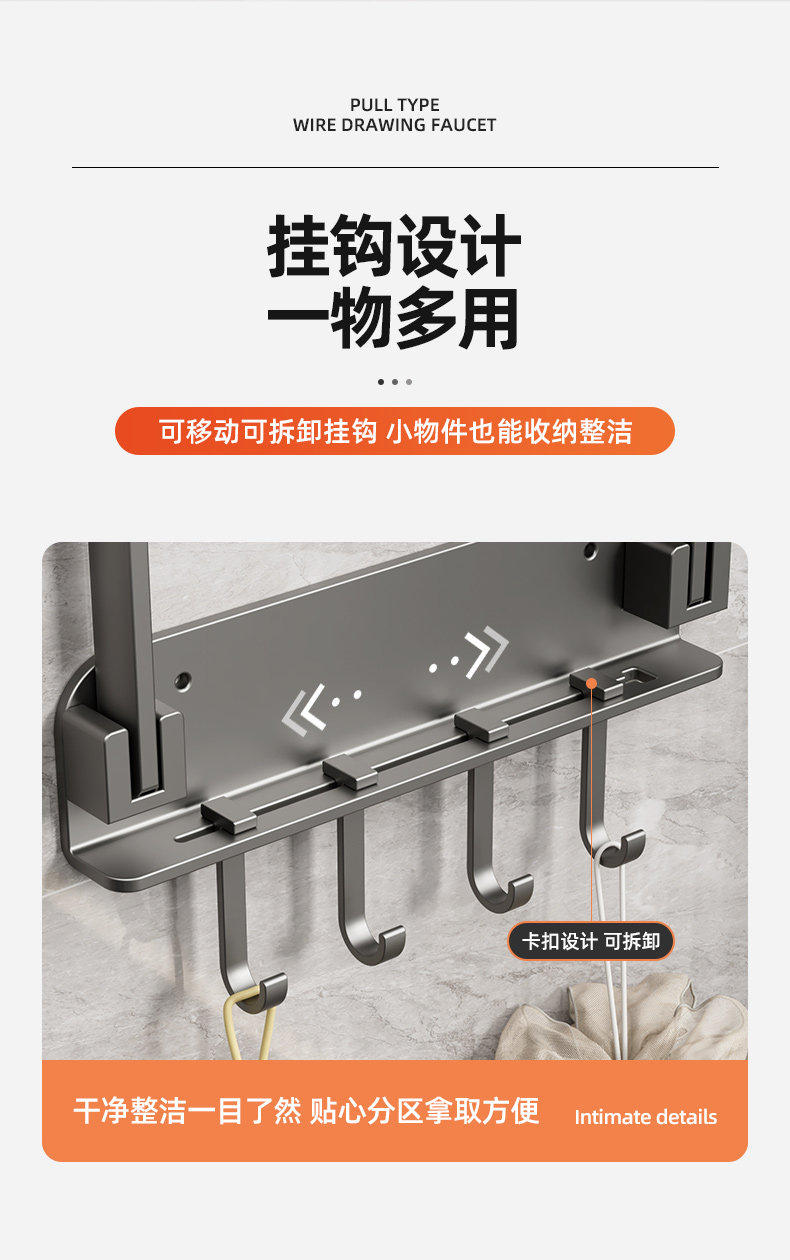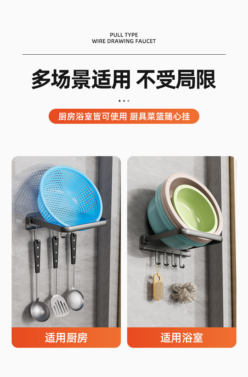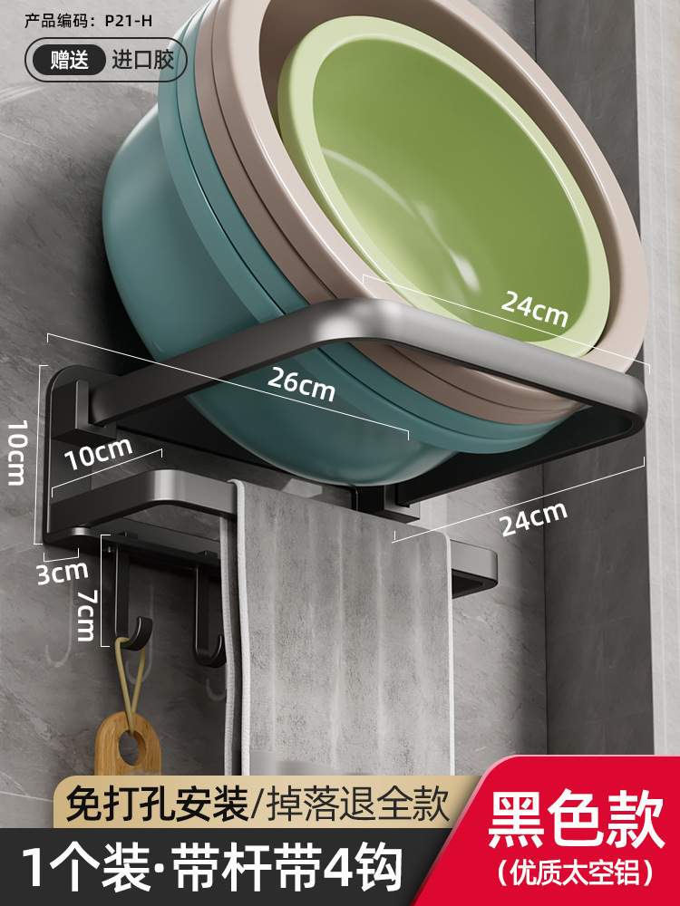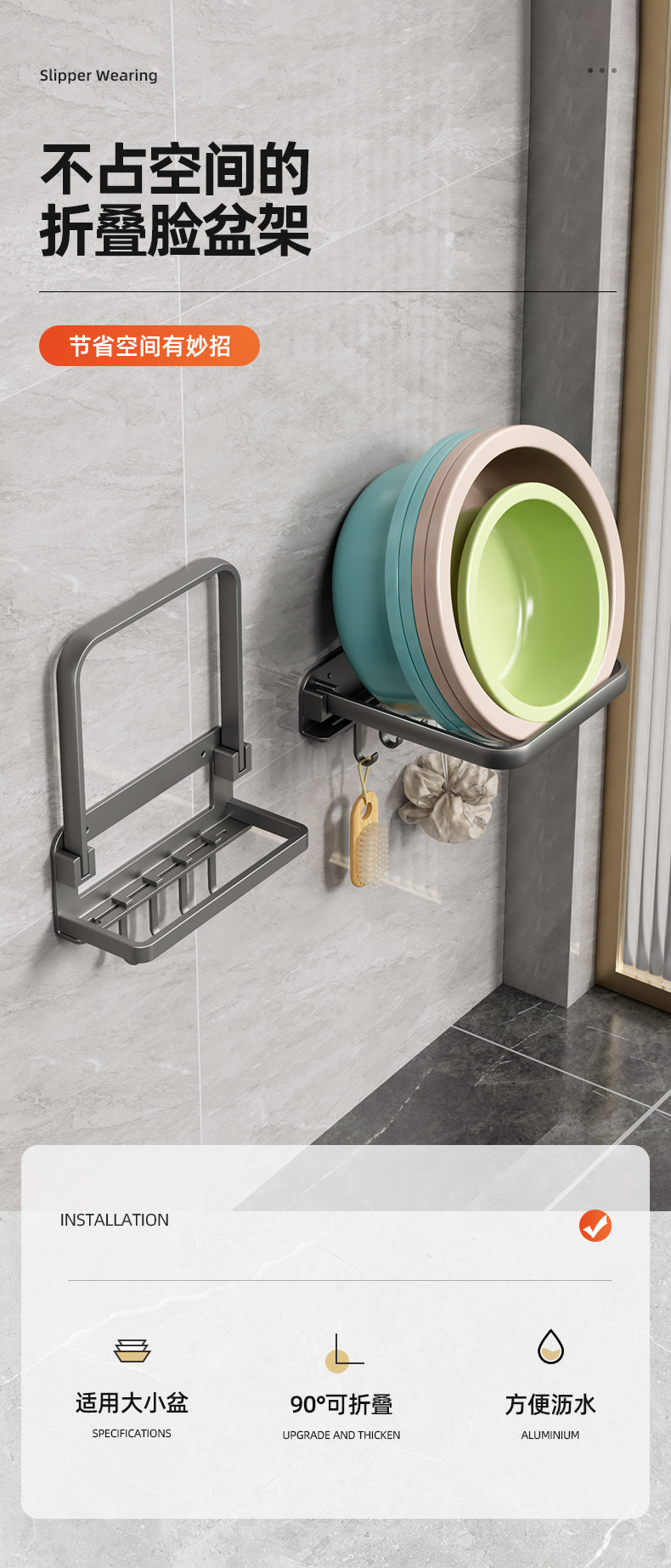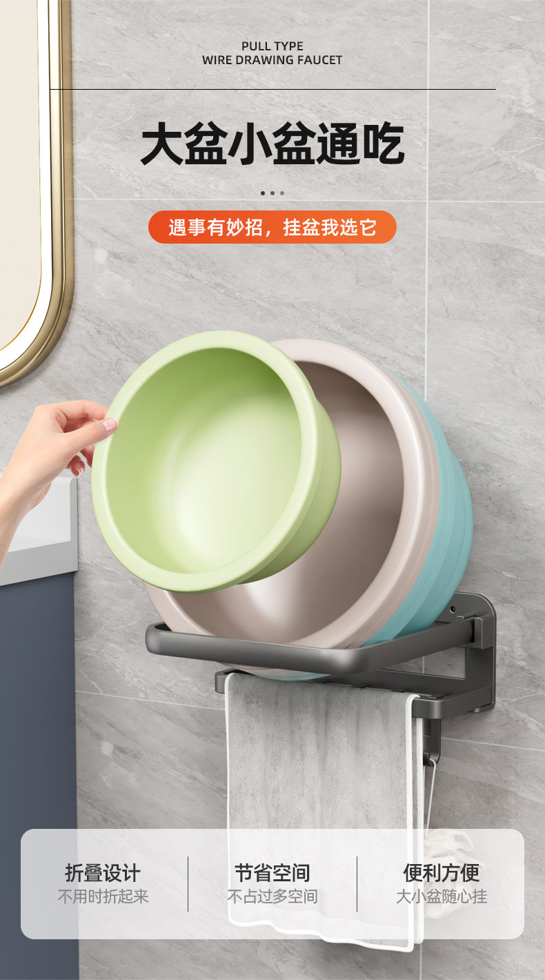 脸盆架壁挂式免打孔厨房卫生间置物架家用多功能浴室盆子收纳挂钩