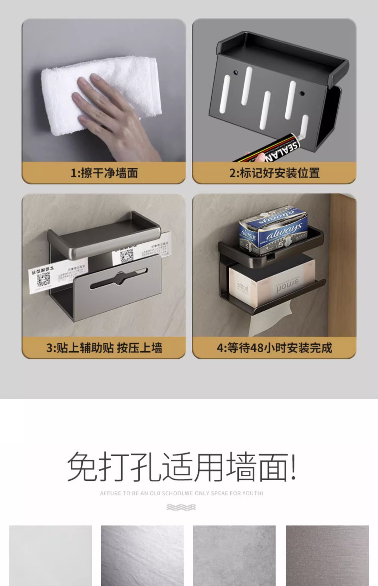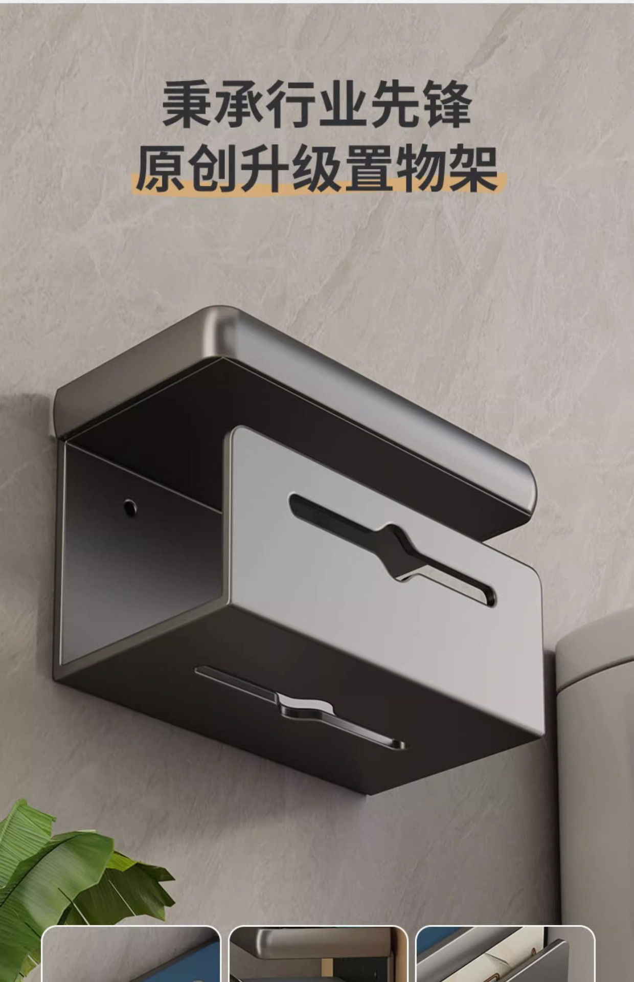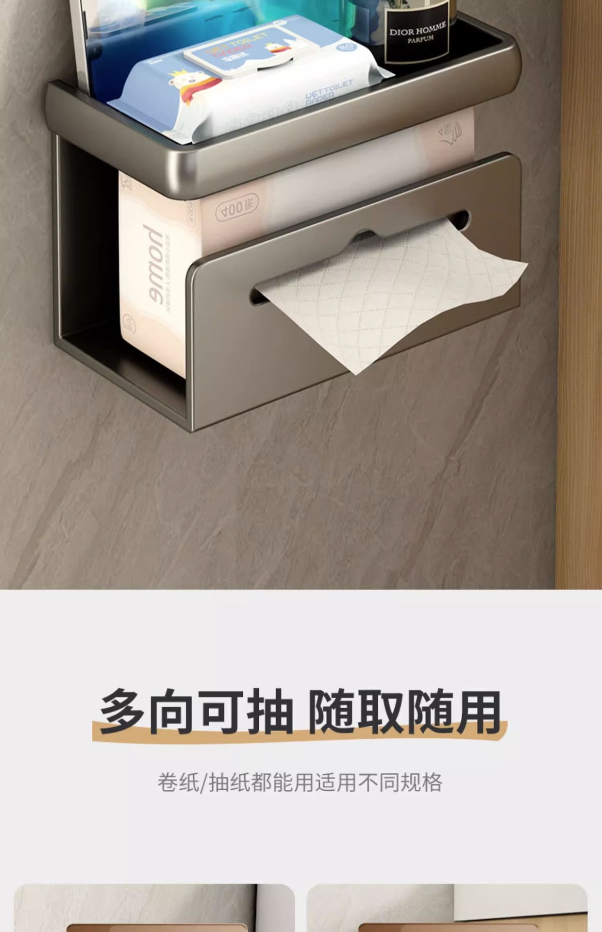 卫生间纸巾盒壁挂式抽纸架洗手间浴室免打孔厕纸盒厕所卷纸置物架