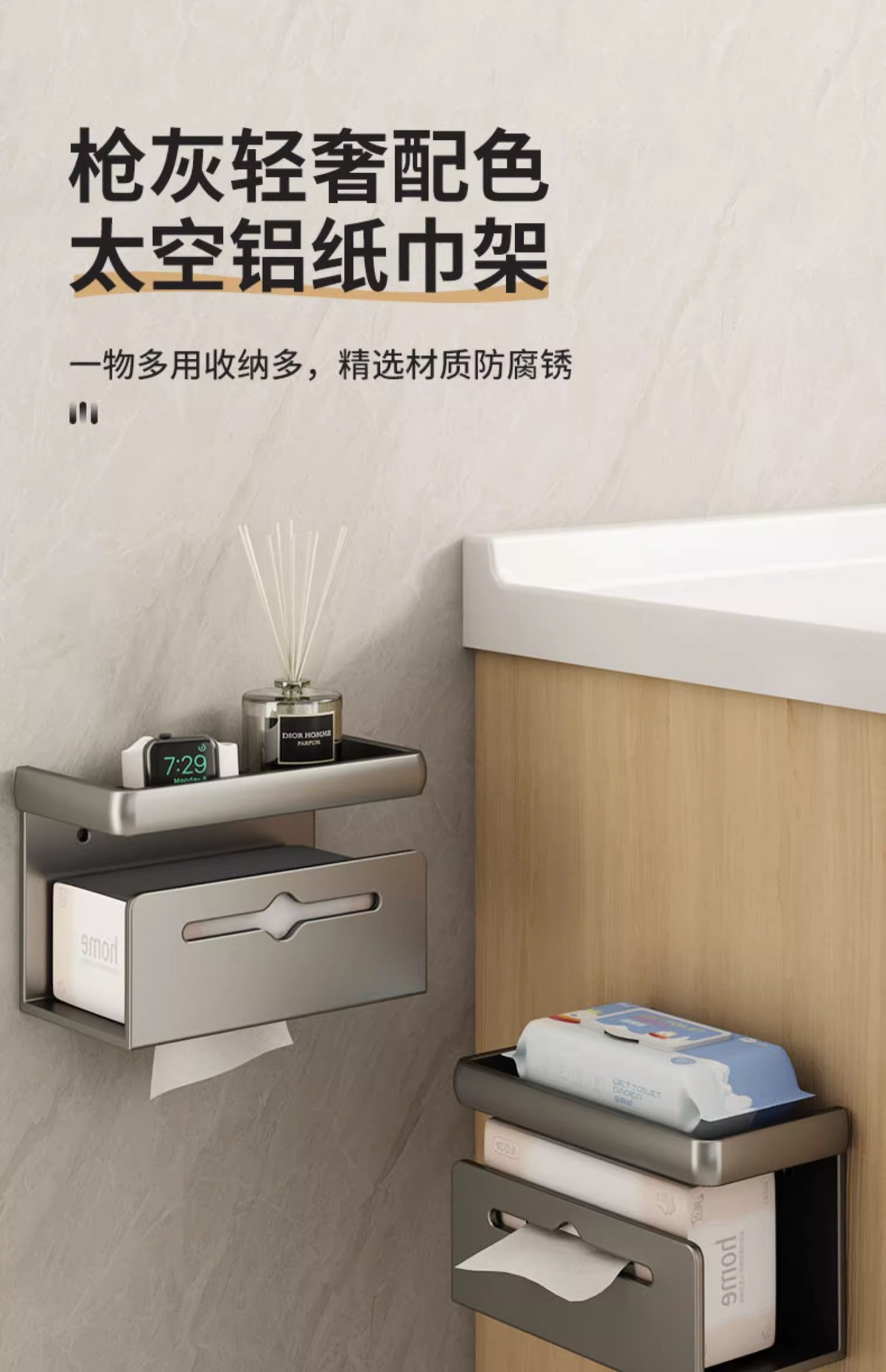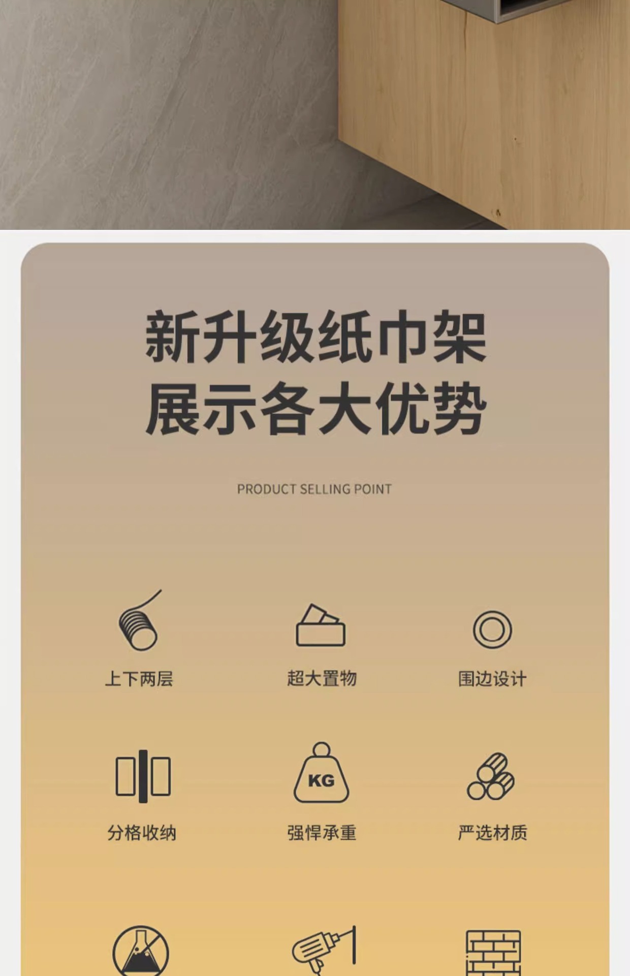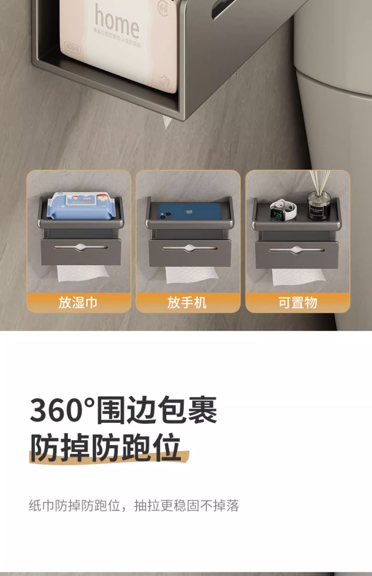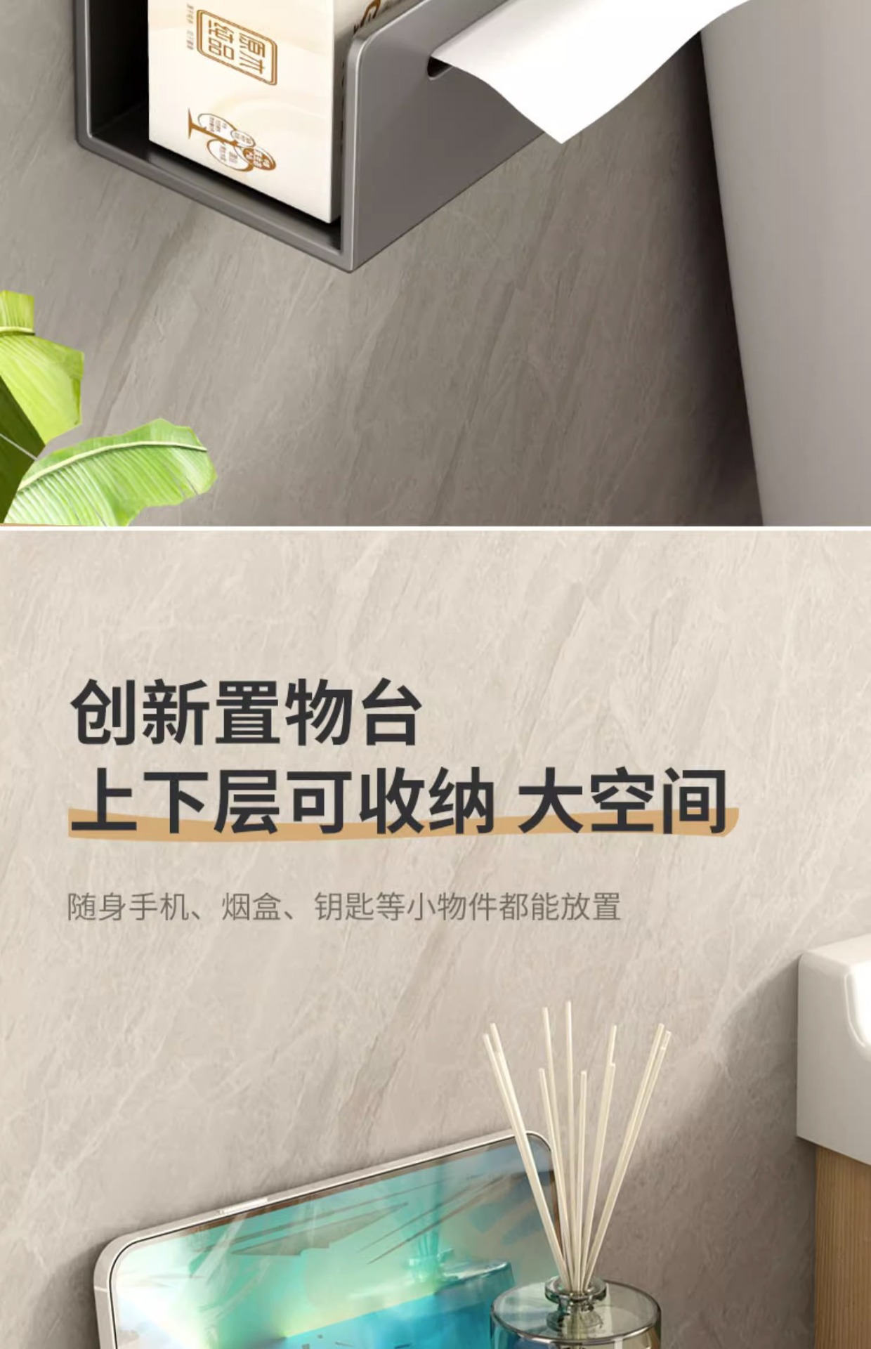 卫生间纸巾盒壁挂式抽纸架洗手间浴室免打孔厕纸盒厕所卷纸置物架