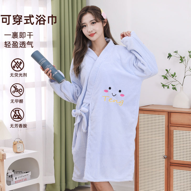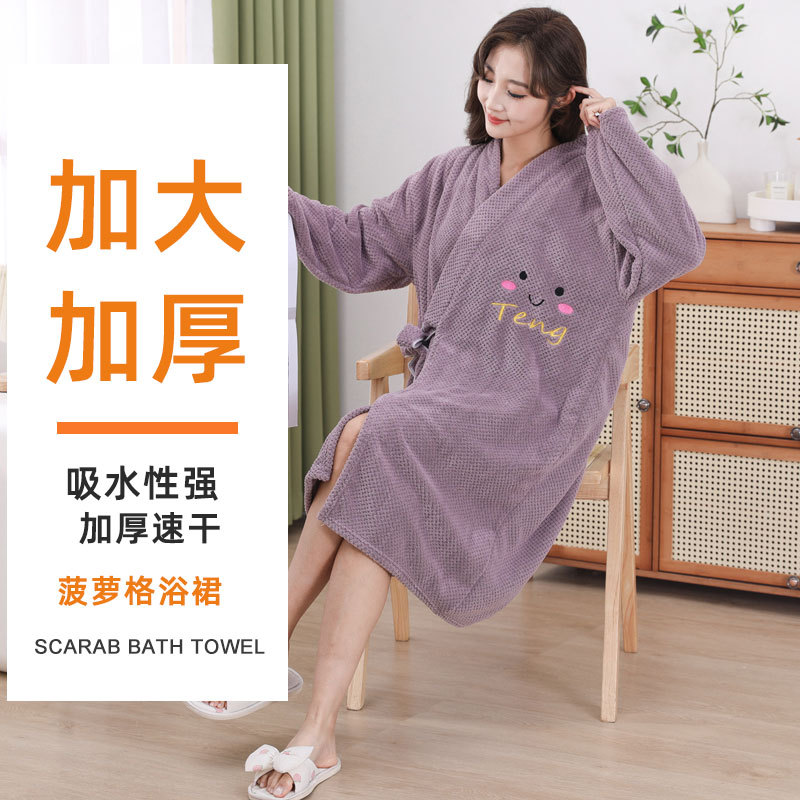 成人浴袍珊瑚绒菠萝格吸水浴衣洗澡酒店美容院女士可穿可裹浴巾