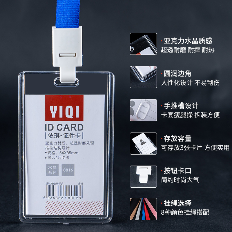 亚克力工作牌卡套胸牌挂绳公司工厂展会学校挂牌吊牌水晶工牌