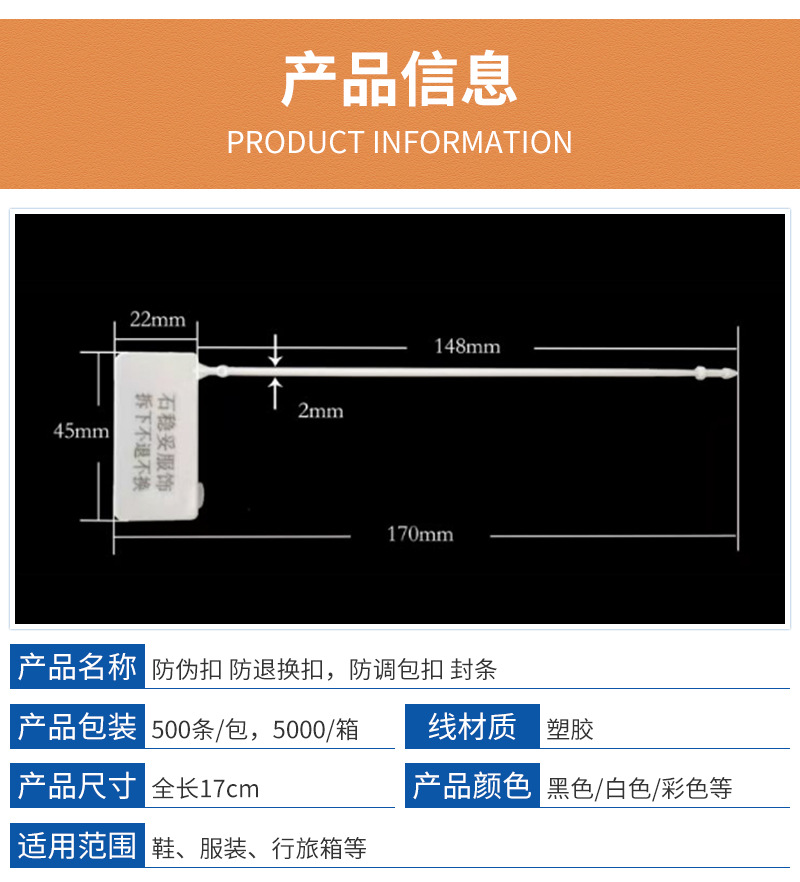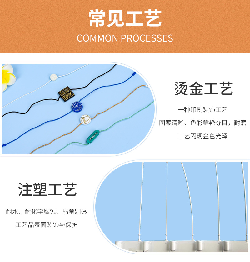 东莞供应服装辅料防盗吊牌绳防伪扣 衣服包包防拆扣退还凭证吊牌