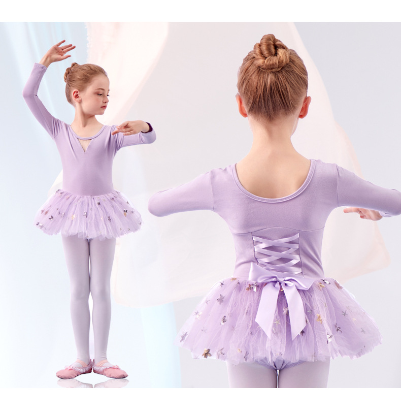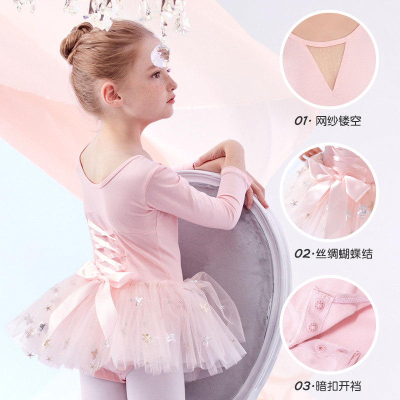 舞蹈服儿童女童长袖春秋季中国舞跳舞练功服女孩衣服芭蕾舞蓬蓬裙