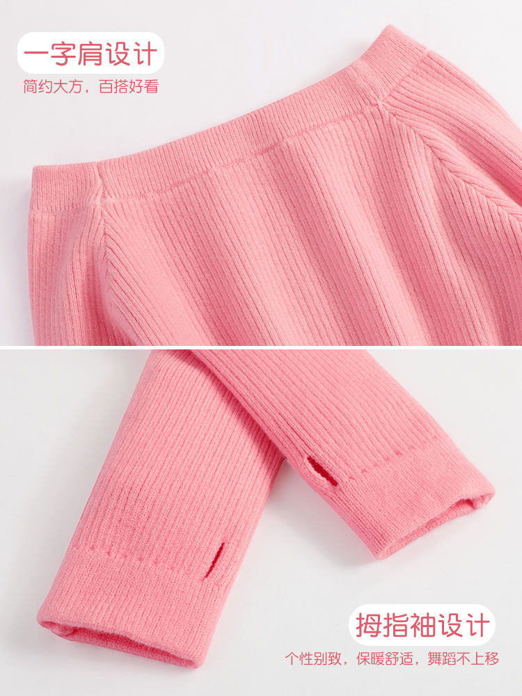 舞蹈服女童长袖一字领针织秋冬练功套头小毛衣外套舞蹈衣外搭上衣