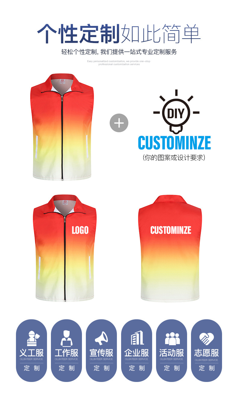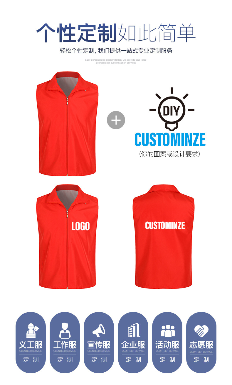 志愿者马甲定制印字logo红色义工背心活动广告公益马甲批发订做