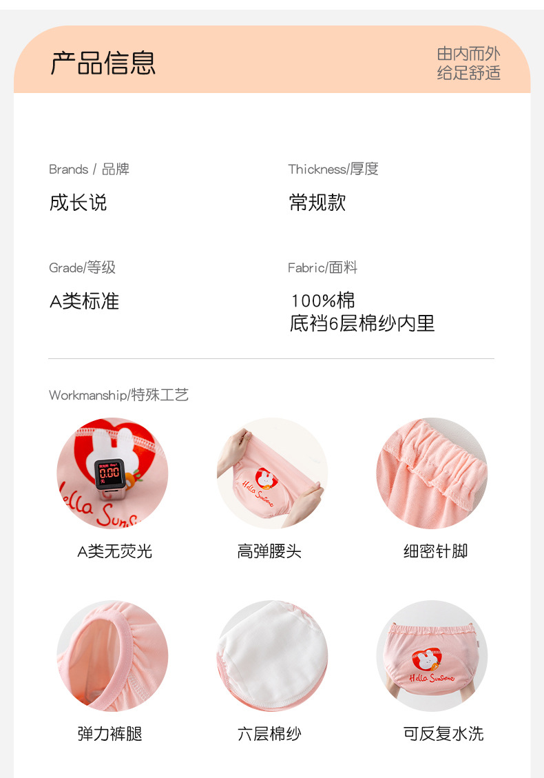宝宝如厕训练裤夏季a类棉可洗裤子女童隔尿尿布兜儿童婴儿尿布裤