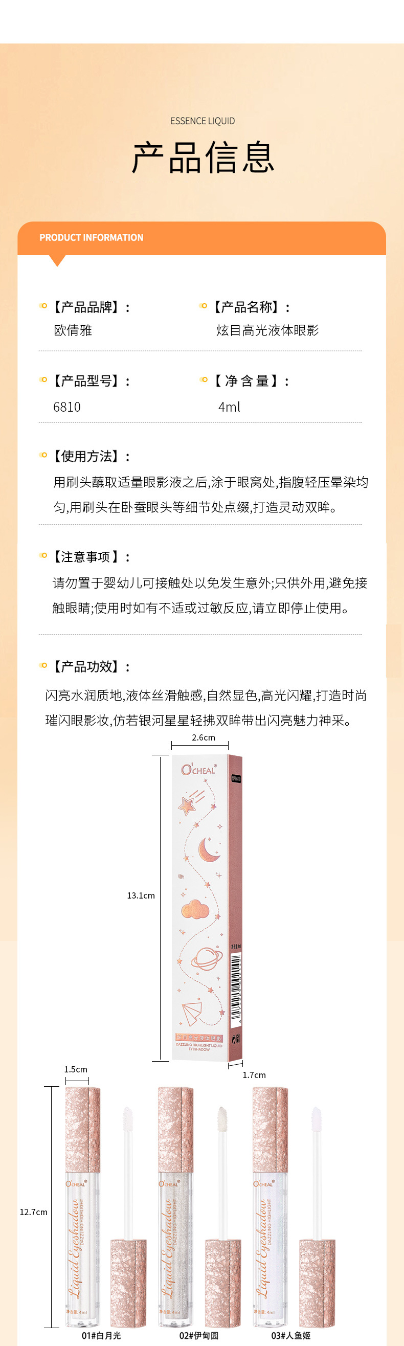 O'CHEAL炫目高光液体眼影 碎钻爆闪液体亮片珠光提亮眼影液