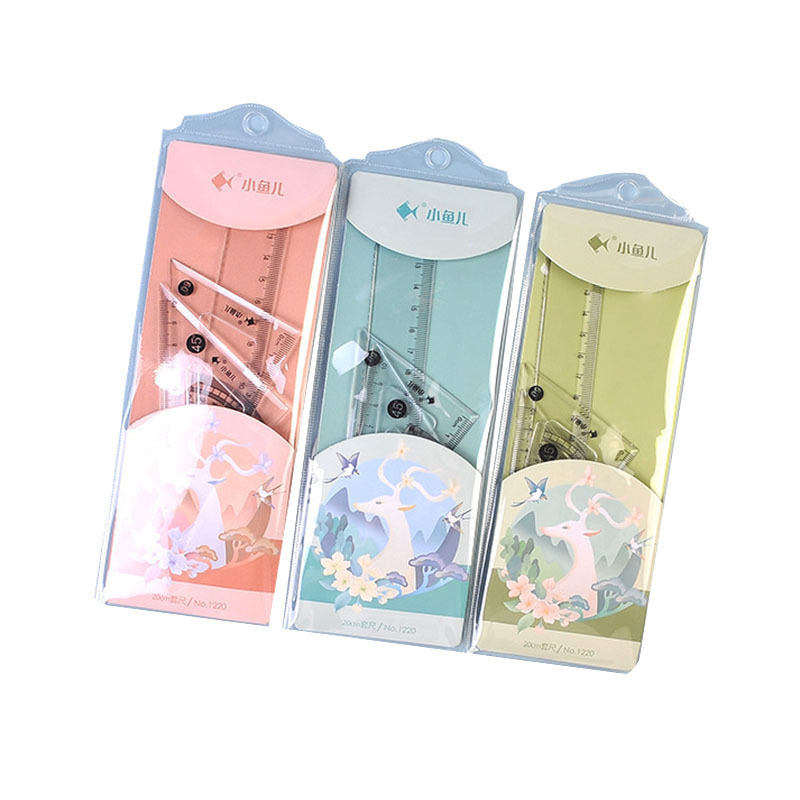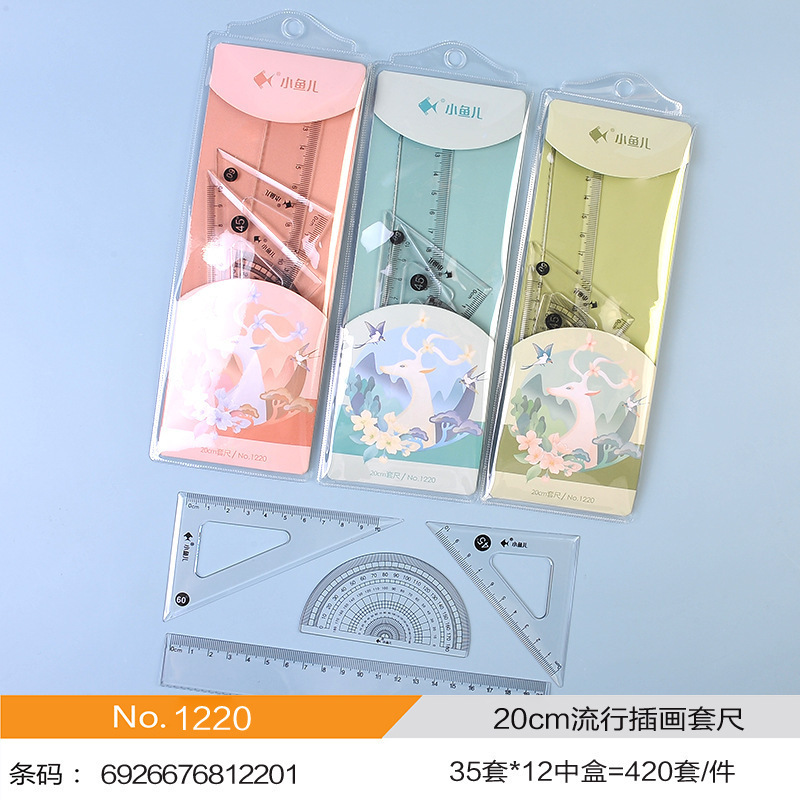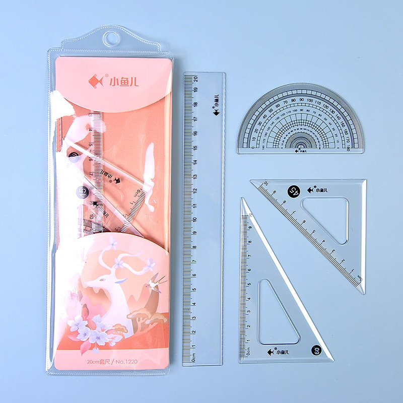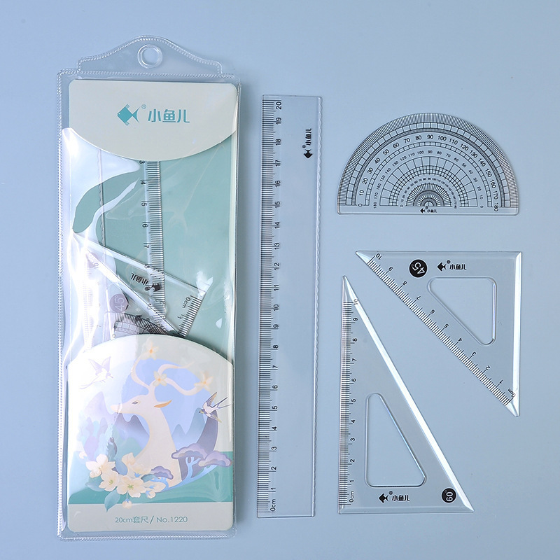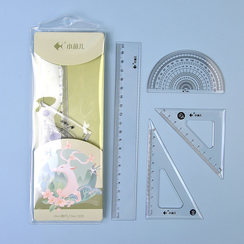 流行插画套尺学生文具20cm学习用品直尺三角尺4件套现货批发定制