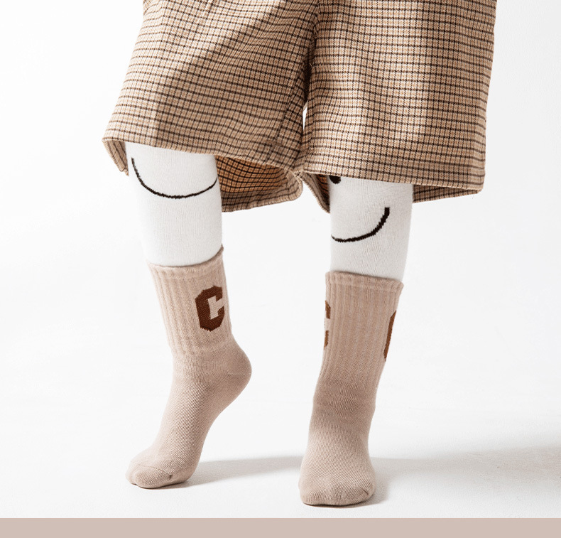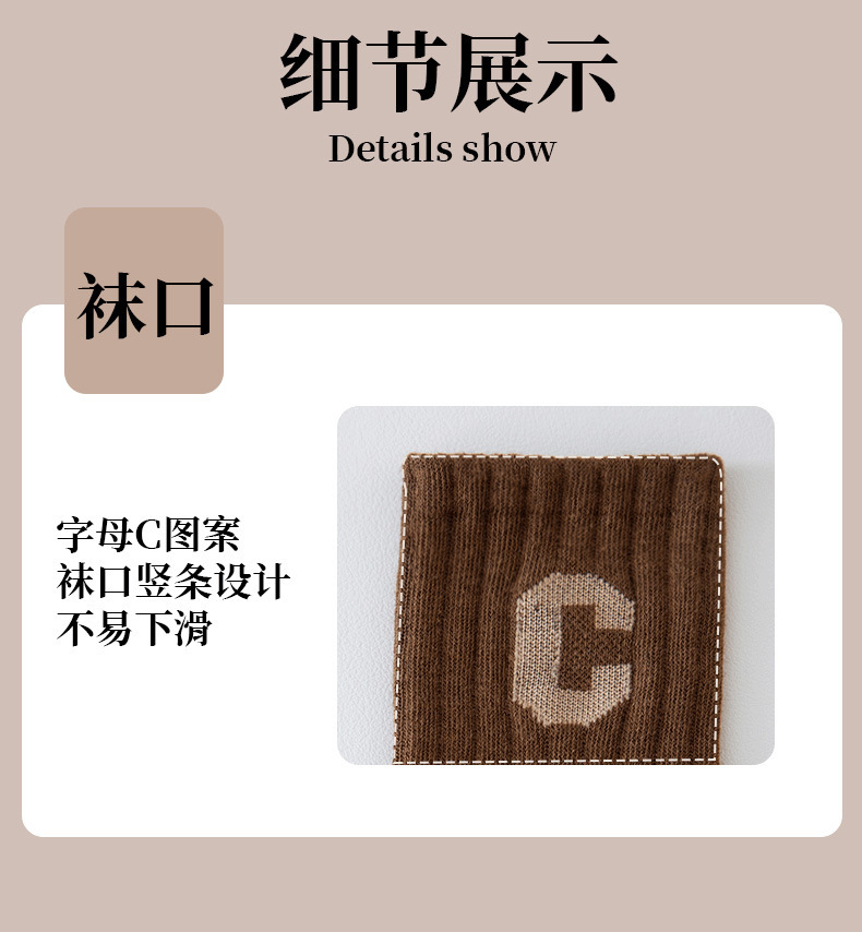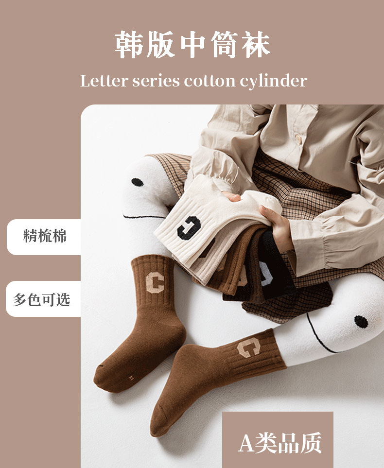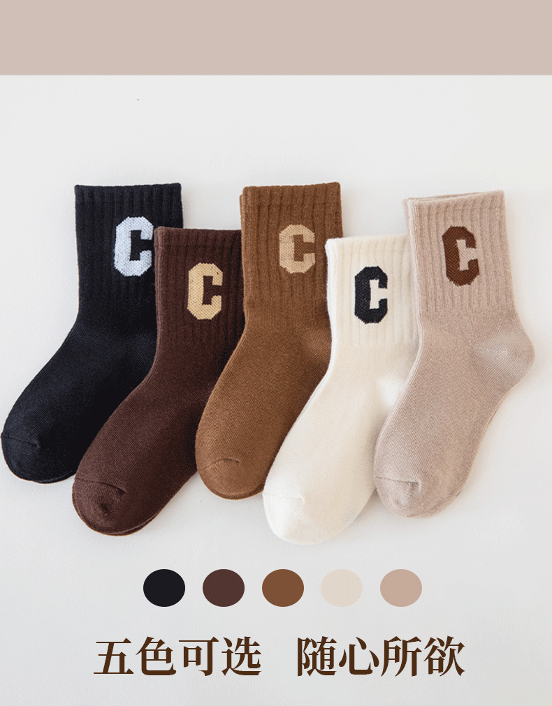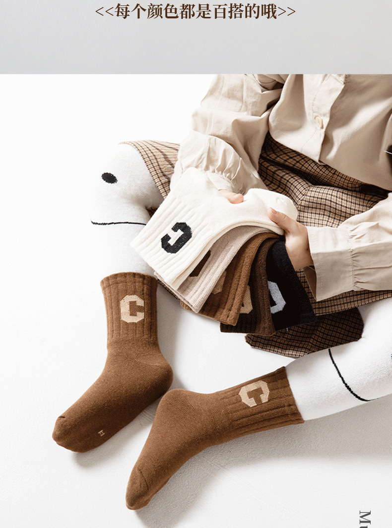 儿童袜子秋冬新款韩系C字母咖色中筒袜子男童女童棉袜学生袜家批