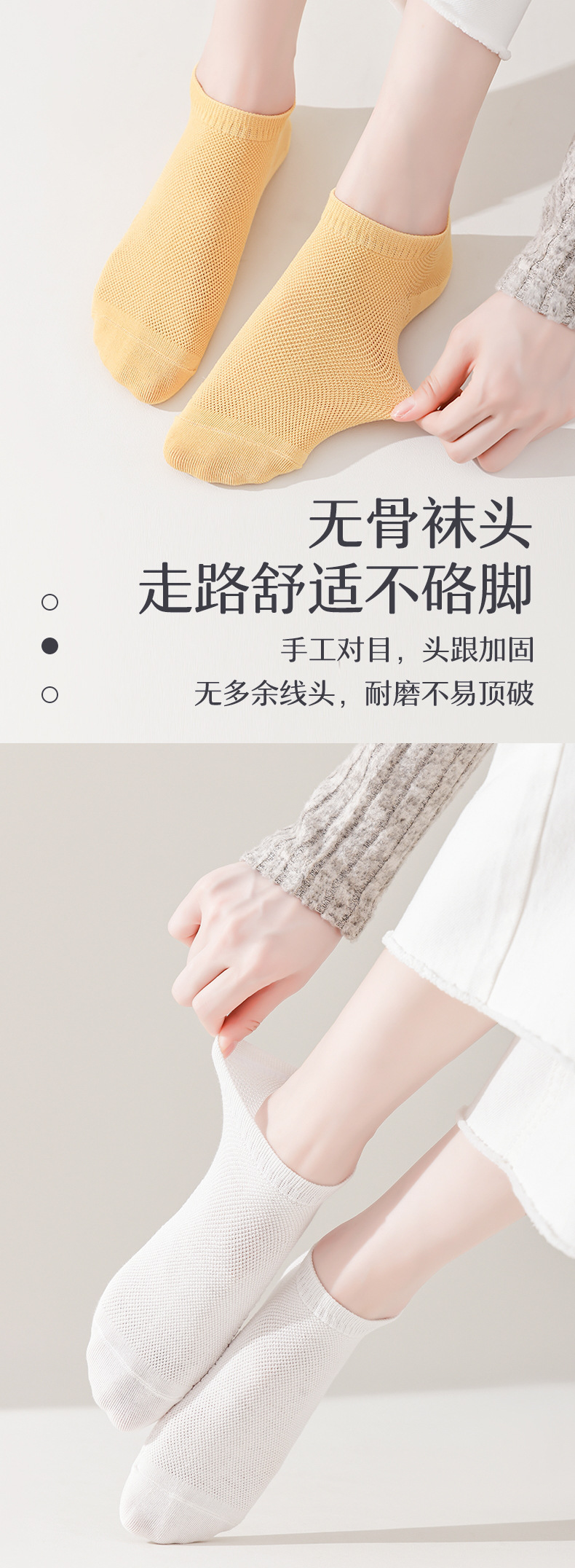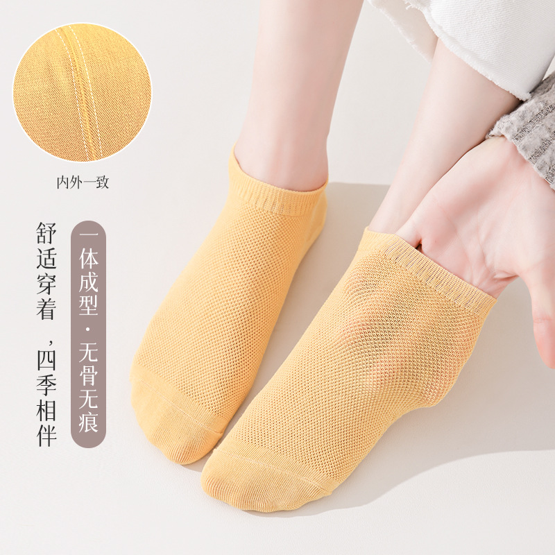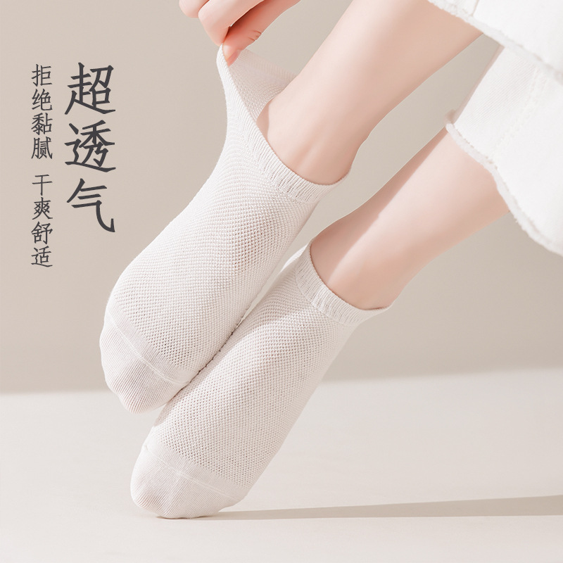 无骨袜子女浅口隐形不掉跟短袜纯棉薄款透气船袜网眼简约ins