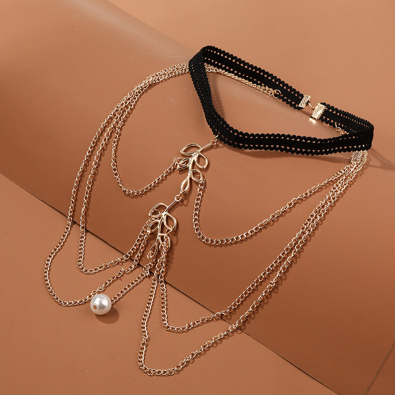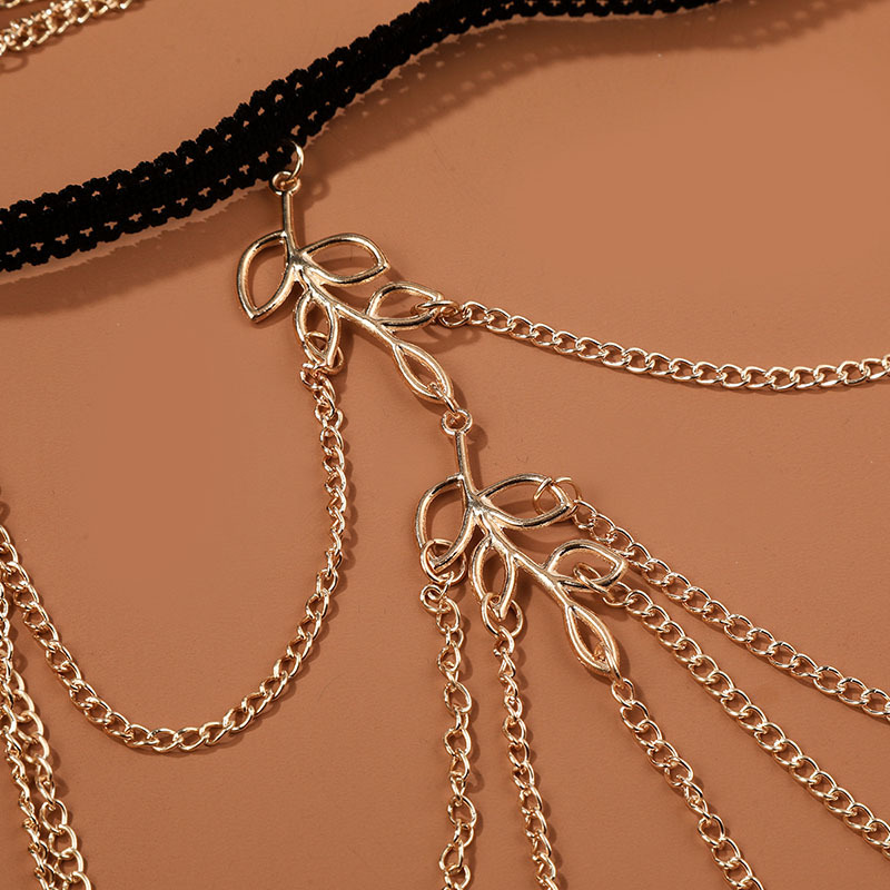 欧美潮流简约多层弹力树叶大腿链女 ins创意个性链条身体链