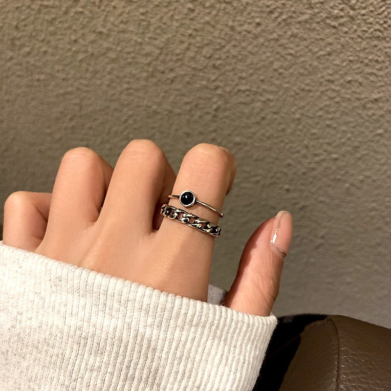 戒指不掉色小众设计开口可调节食指戒复古高级感轻奢ins风手饰女