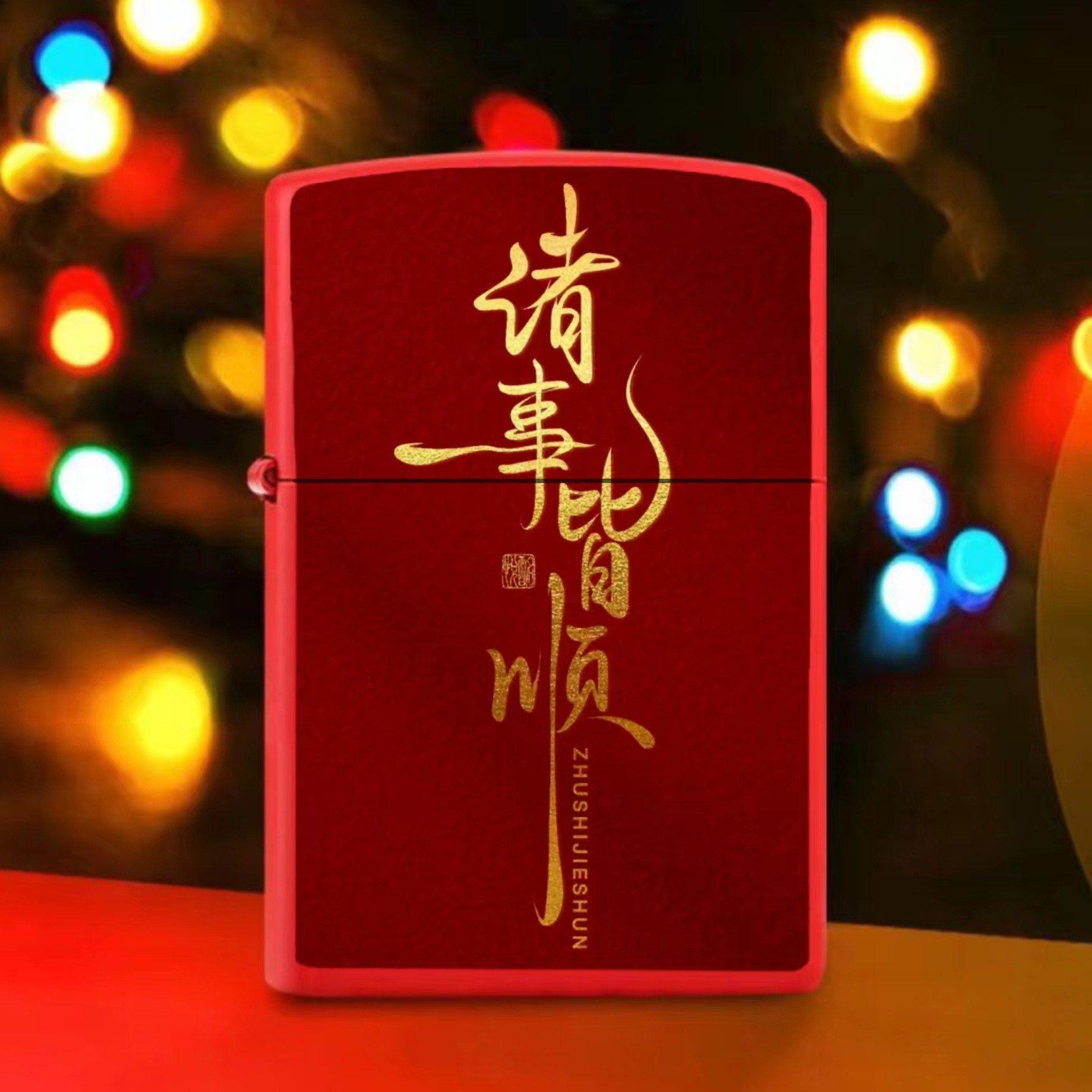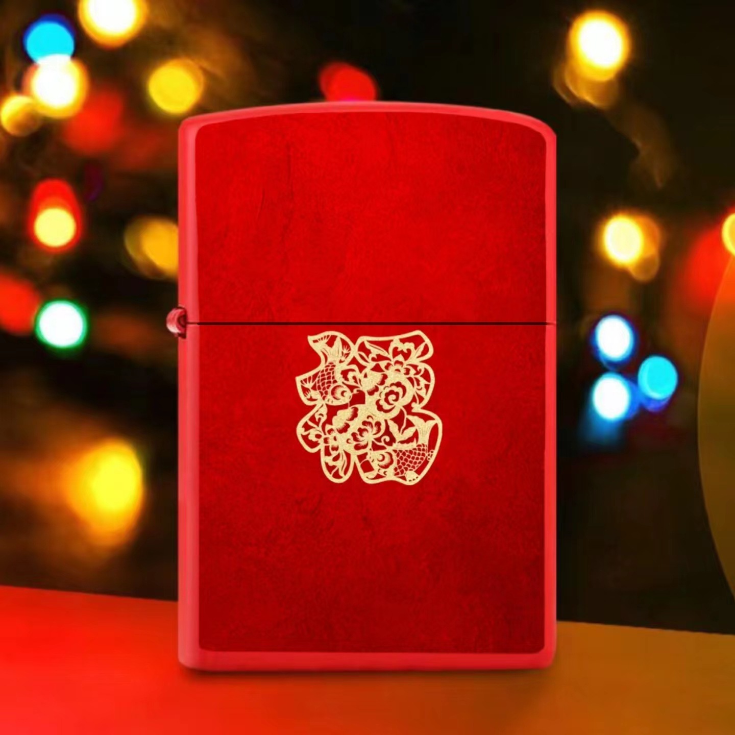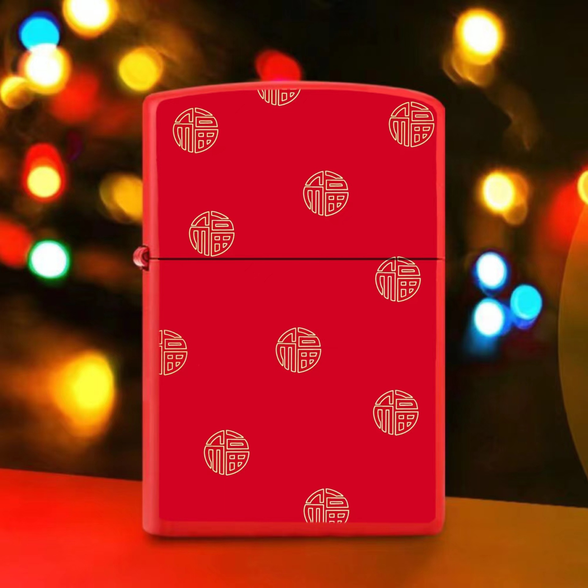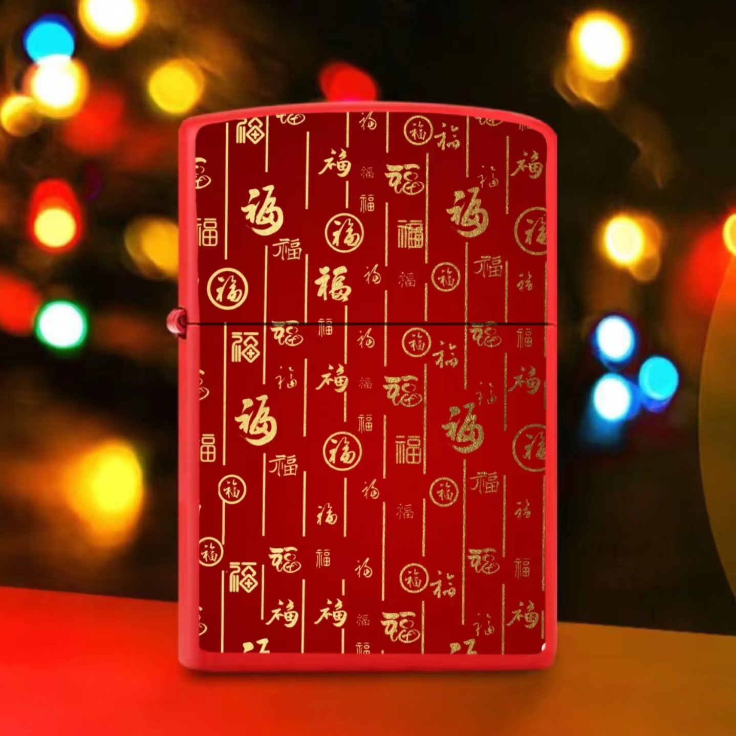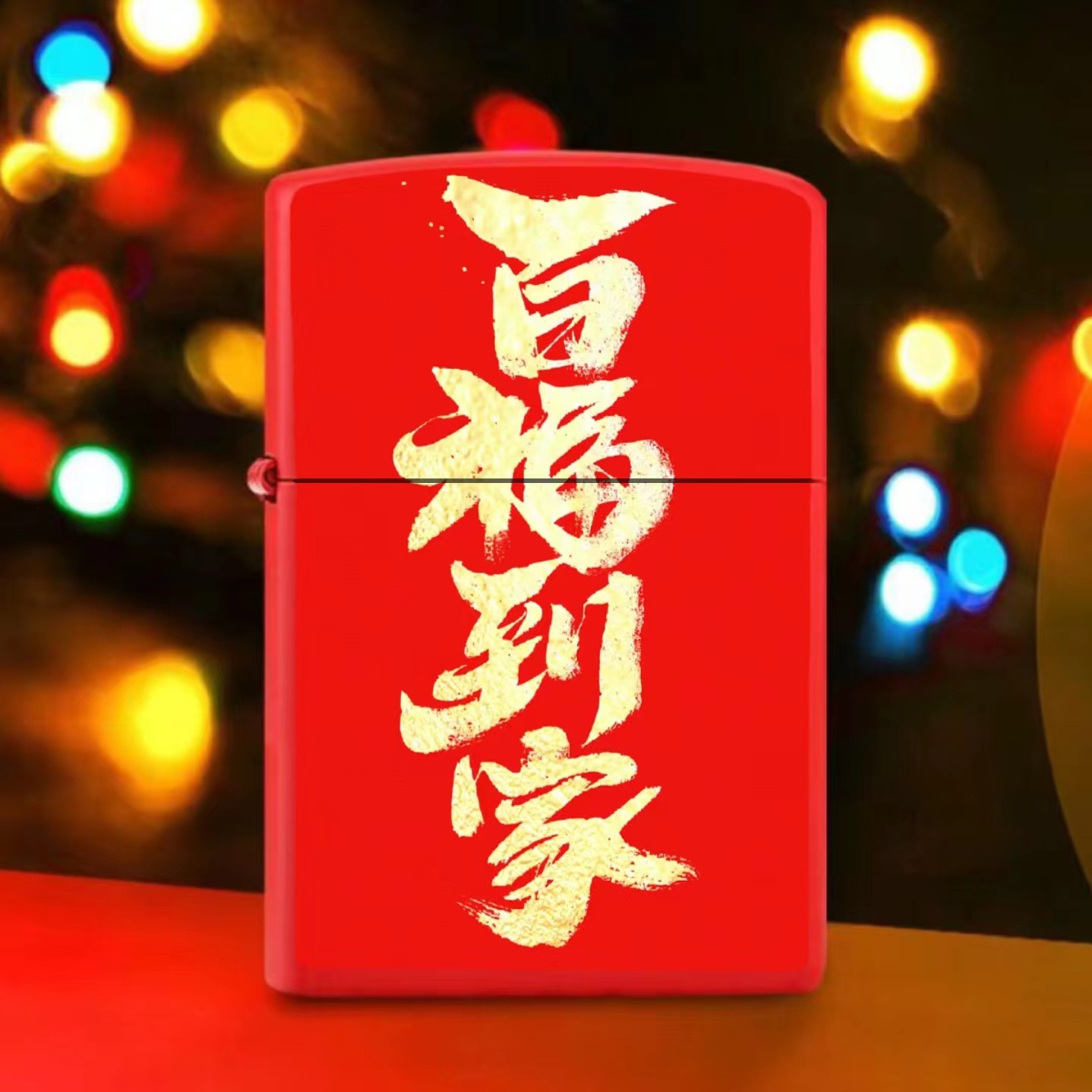 2024新年中国红百福打火机龙年有钱花煤油防风打火机抖音面单代发