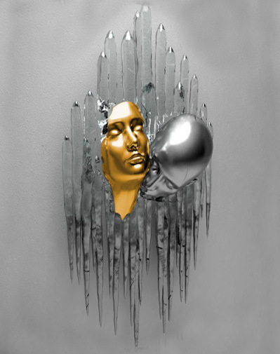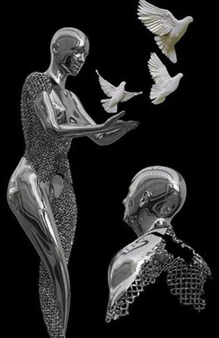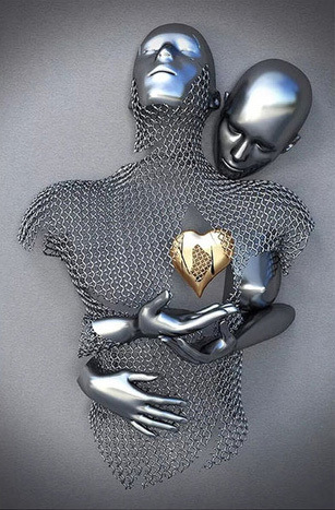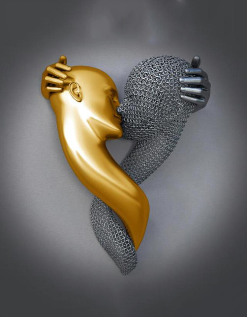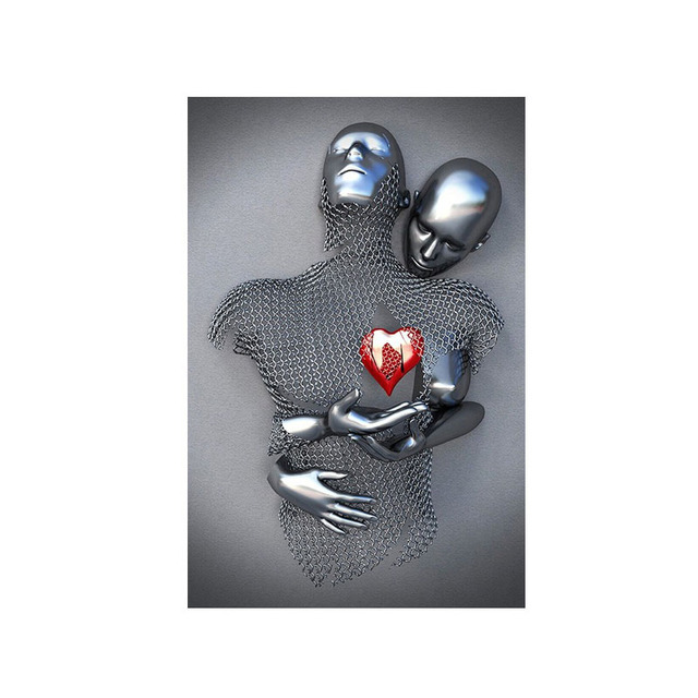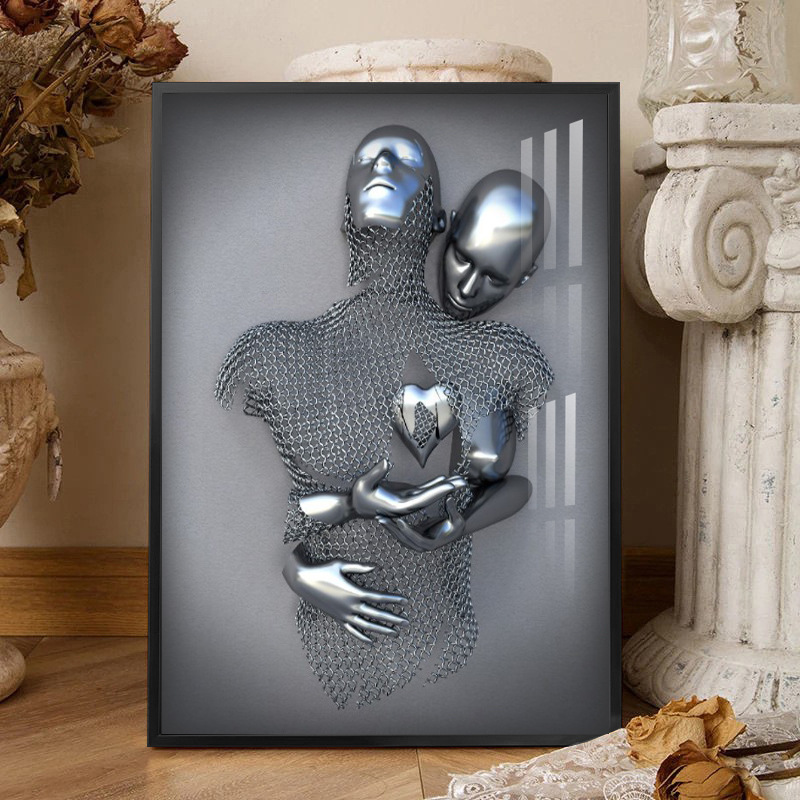 外贸热销抽象钢丝金属人物雕像雕塑帆布画情侣挂画 高清喷印画芯