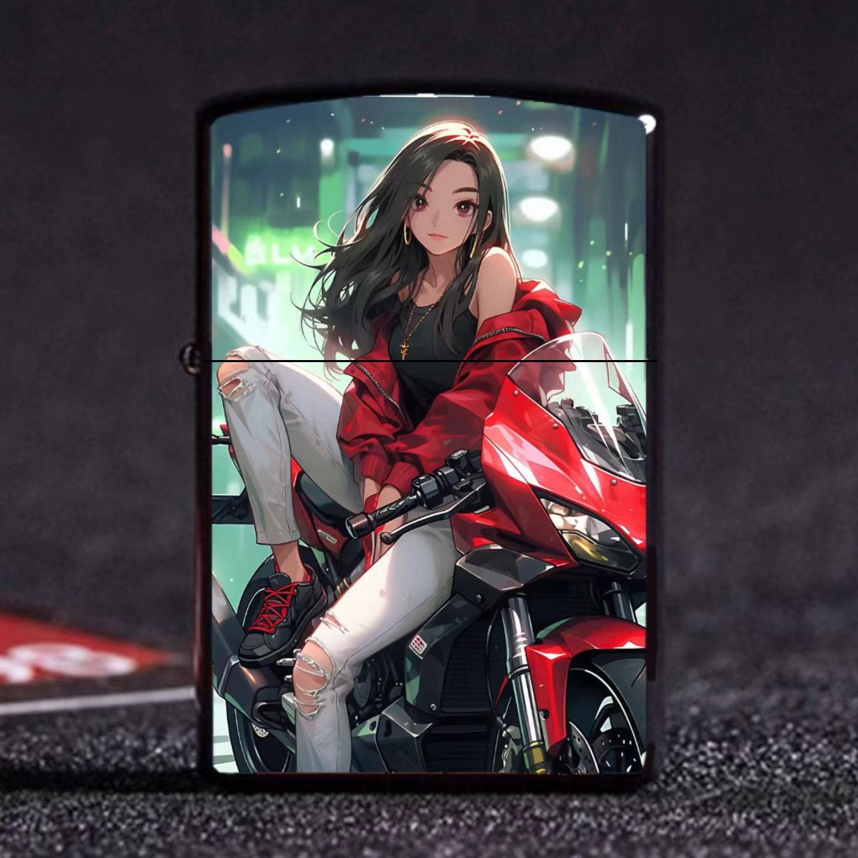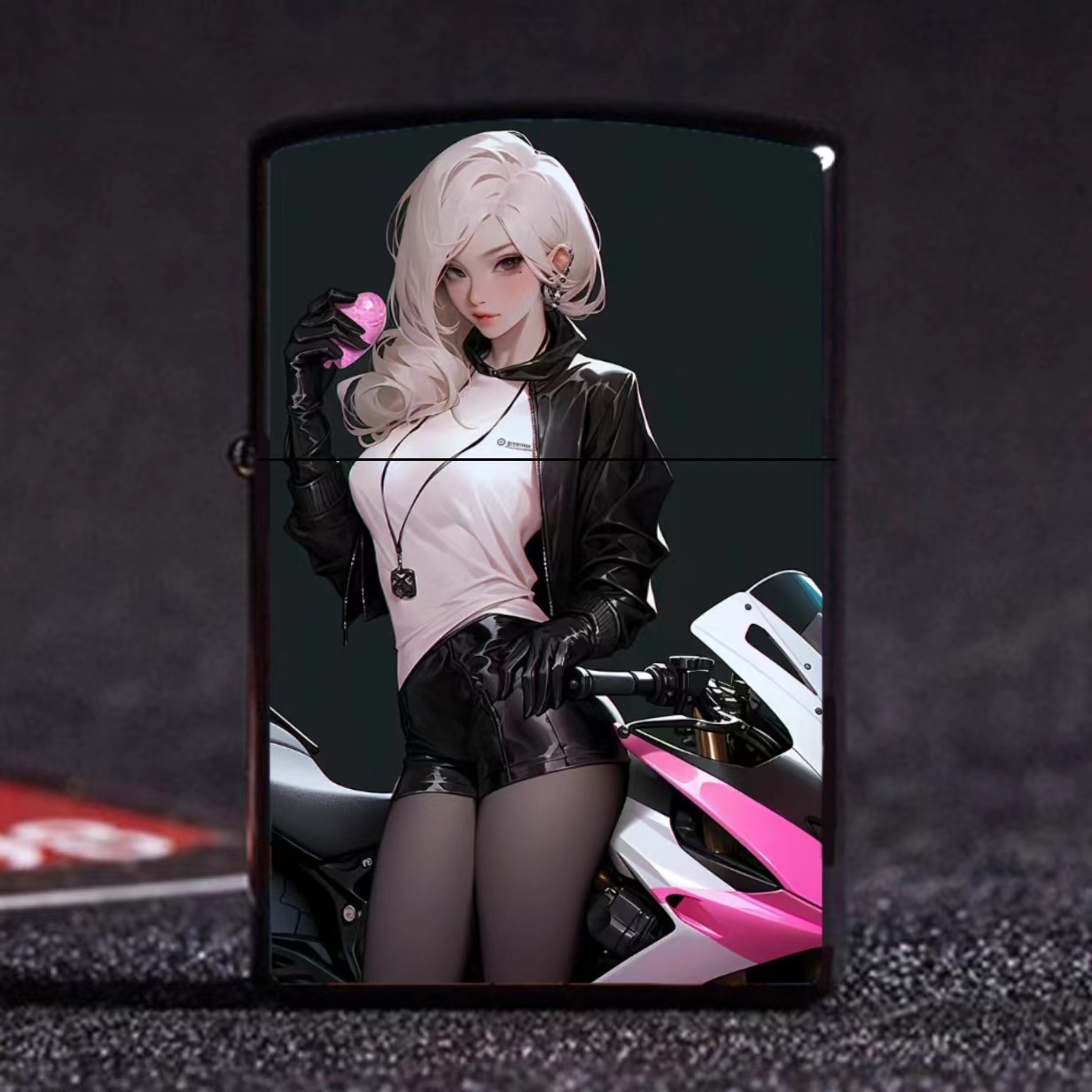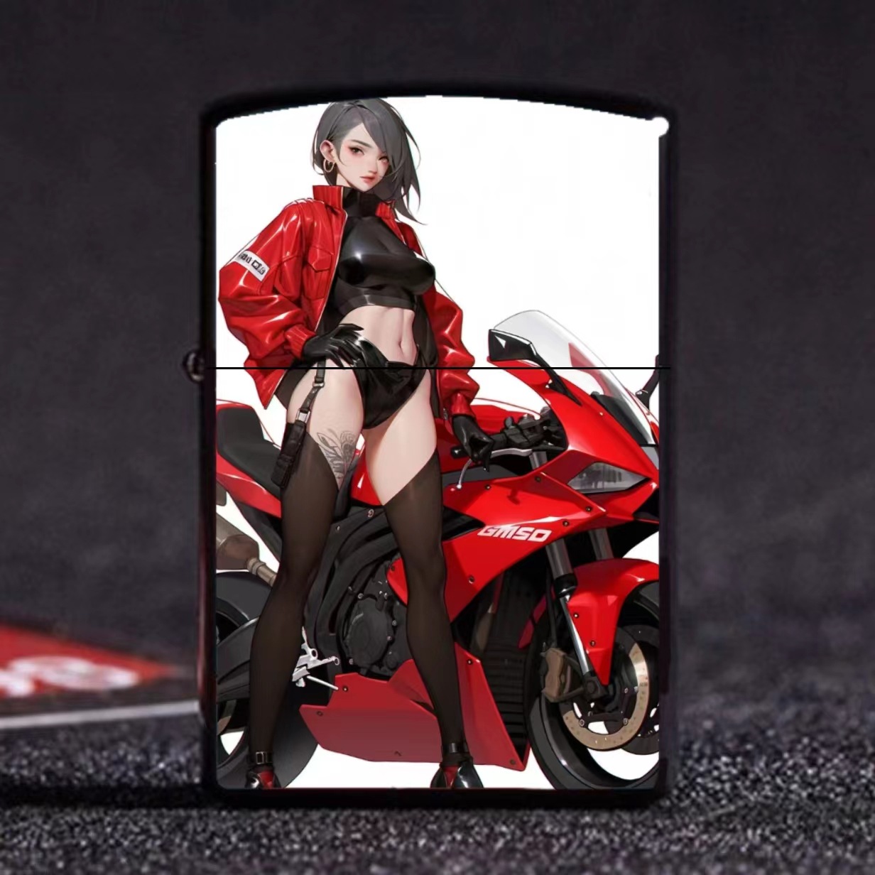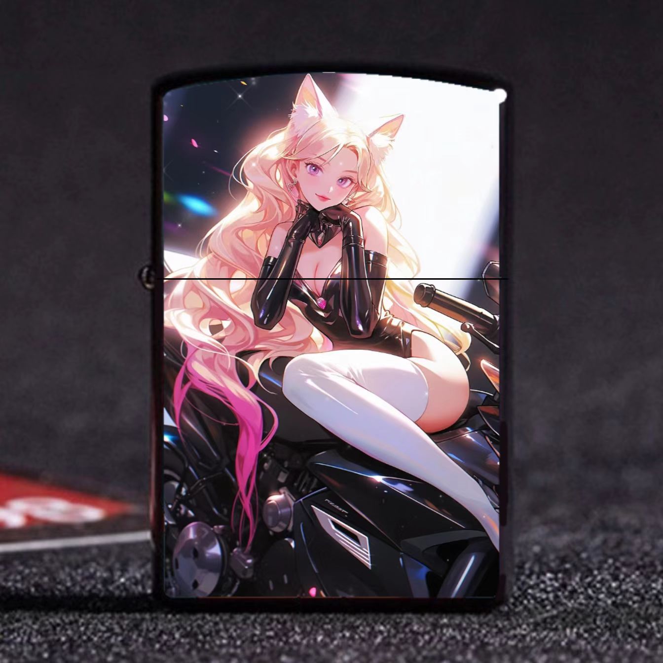 机车女孩煤油打火机 二次元周边创意防风金属煤油打火机地推礼品