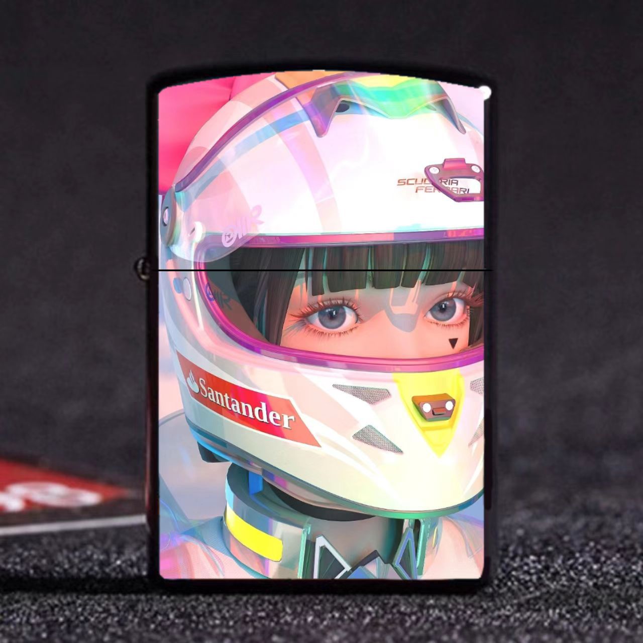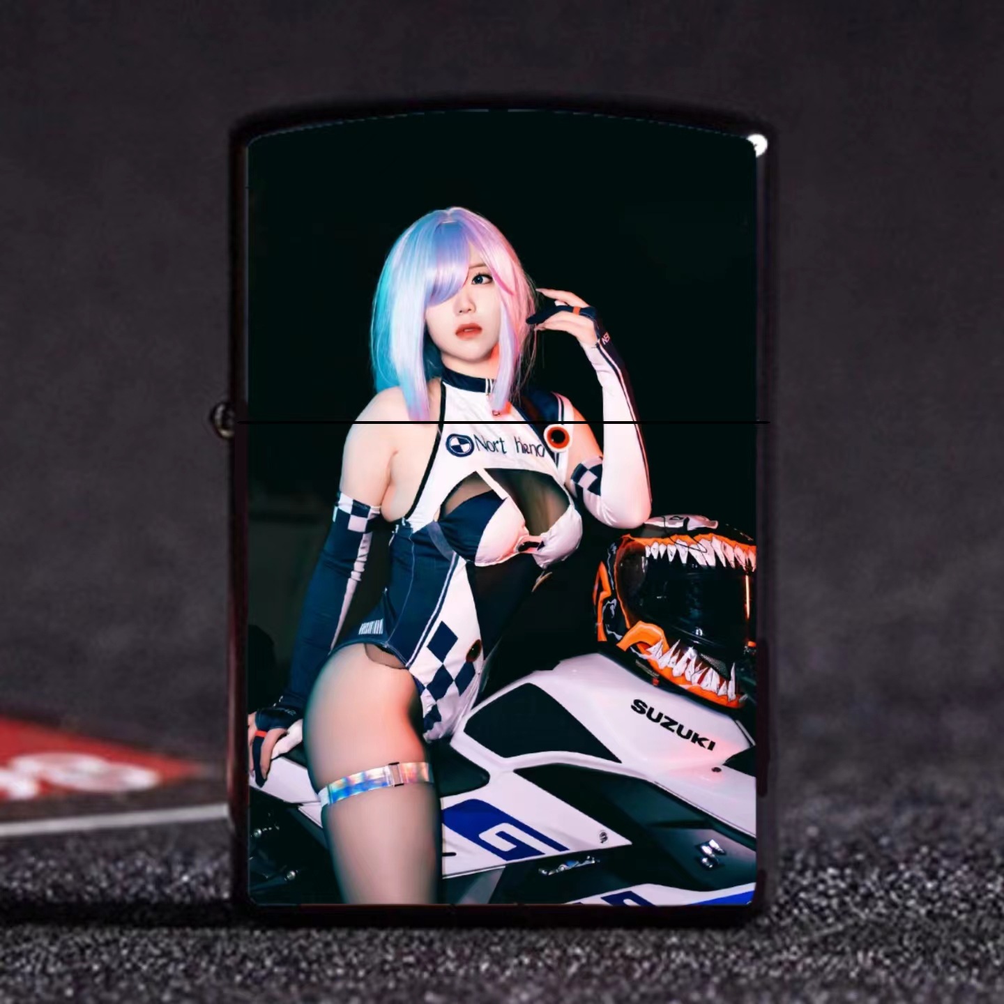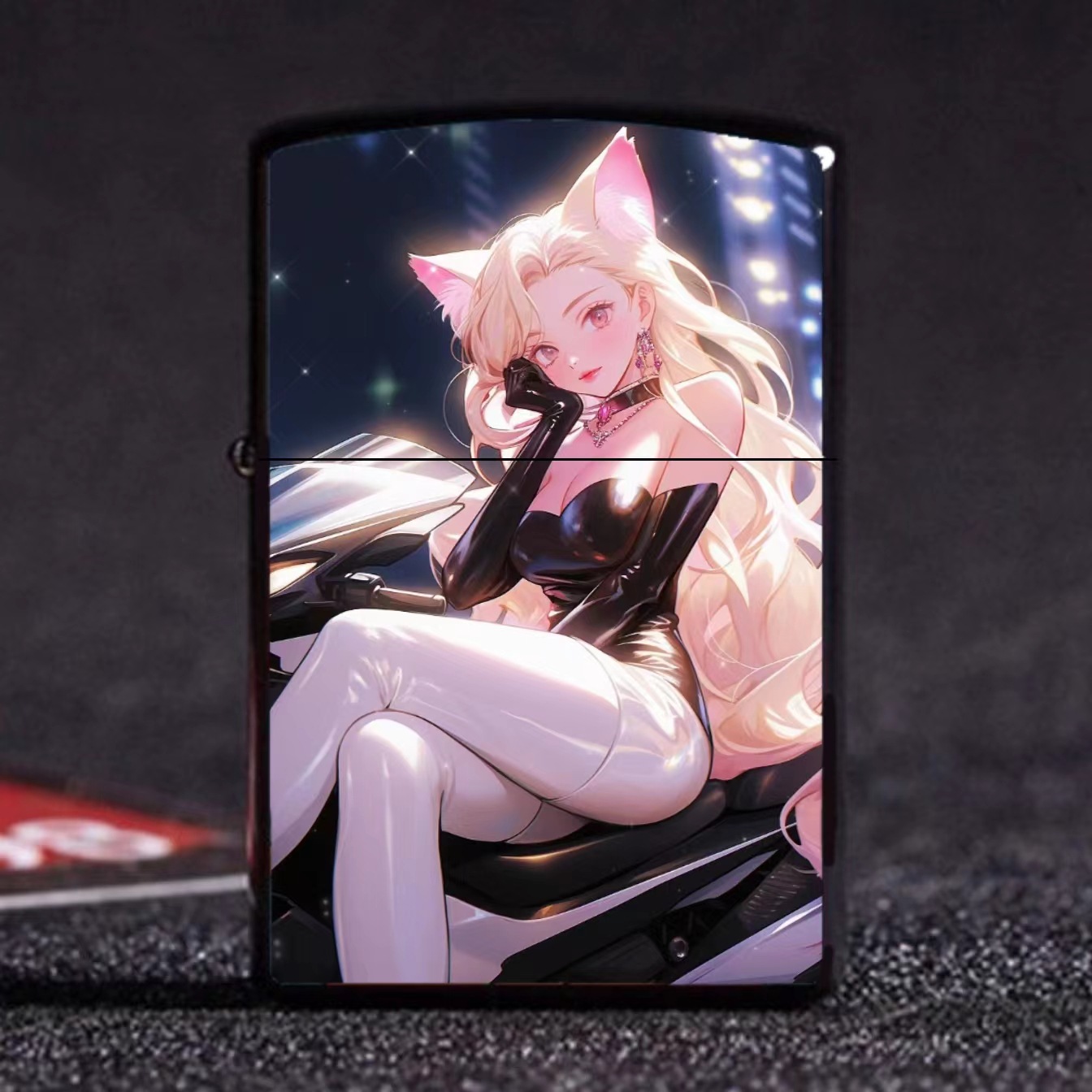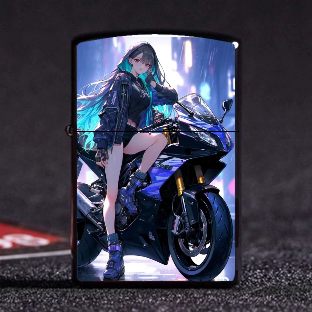 机车女孩煤油打火机 二次元周边创意防风金属煤油打火机地推礼品