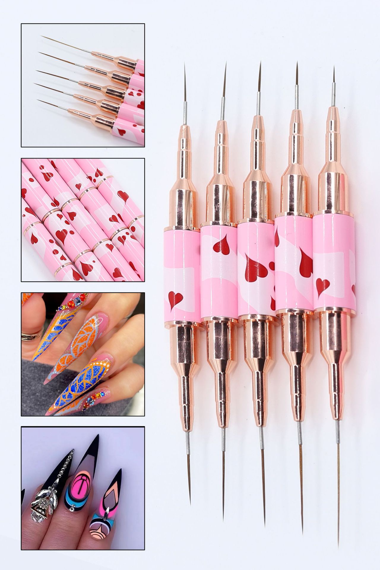 344爱心金属杆双头针管拉线笔5支装极细拉线笔勾线拉花彩绘笔