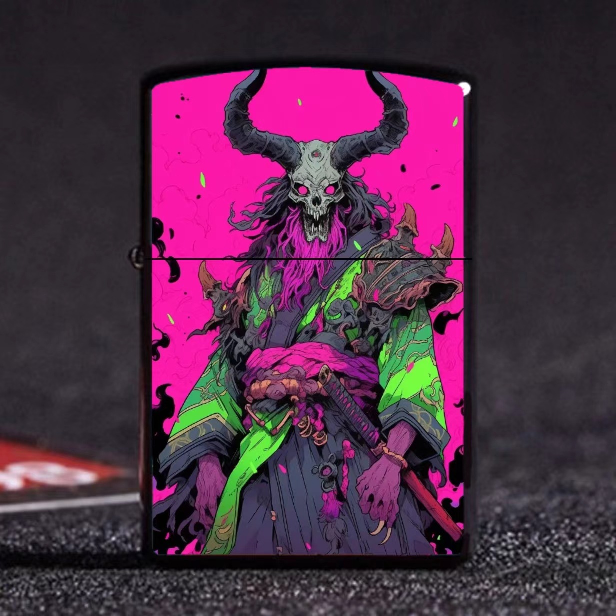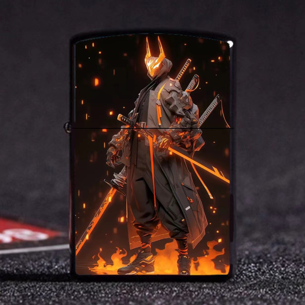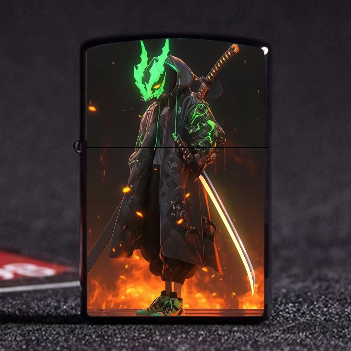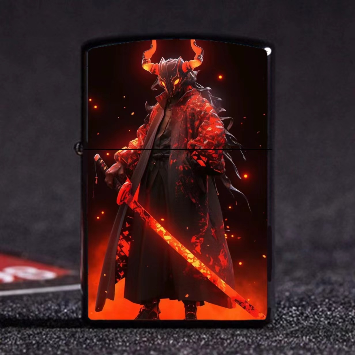 暗夜武士煤油打火机 创意动漫游戏图金属打火机多巴胺煤油防风机