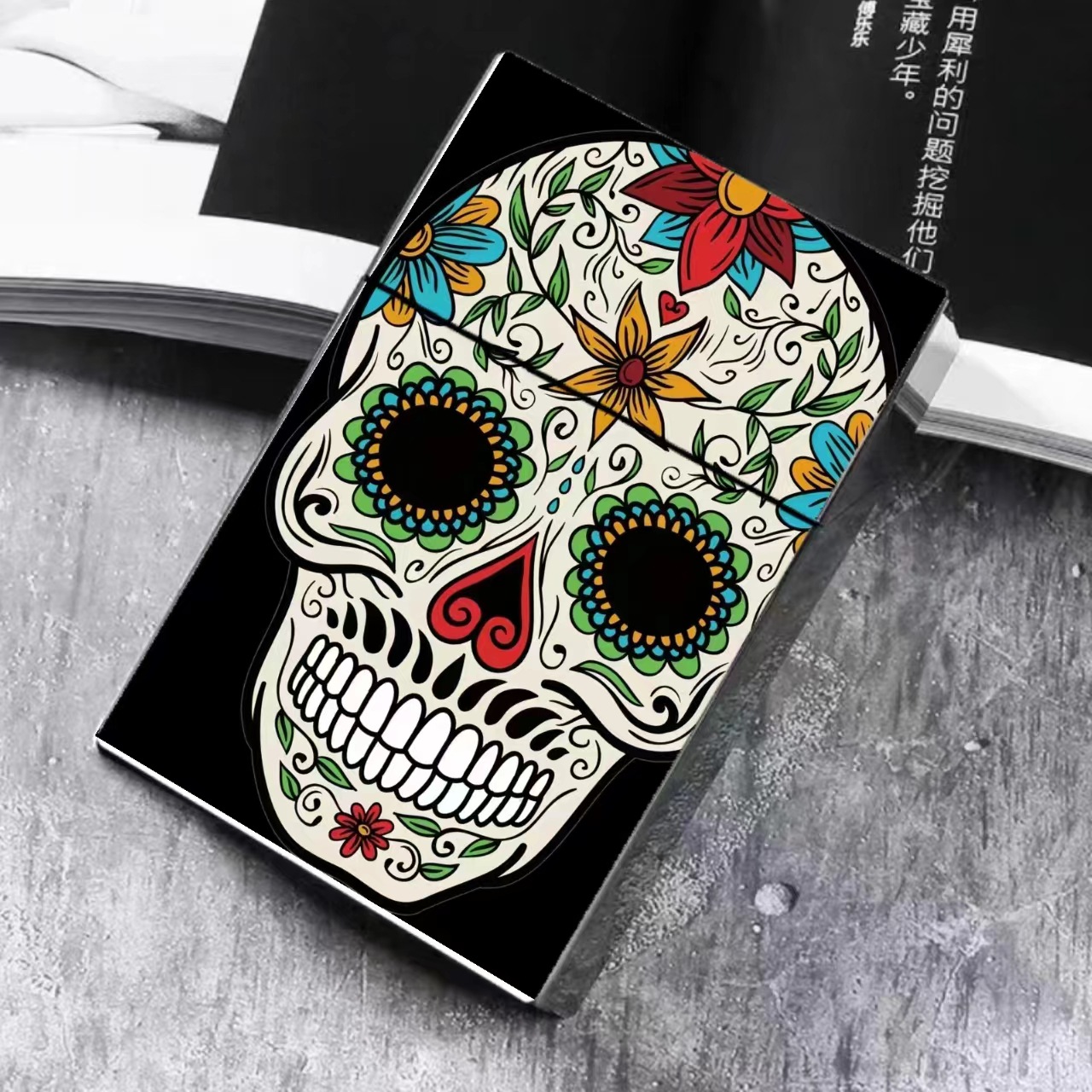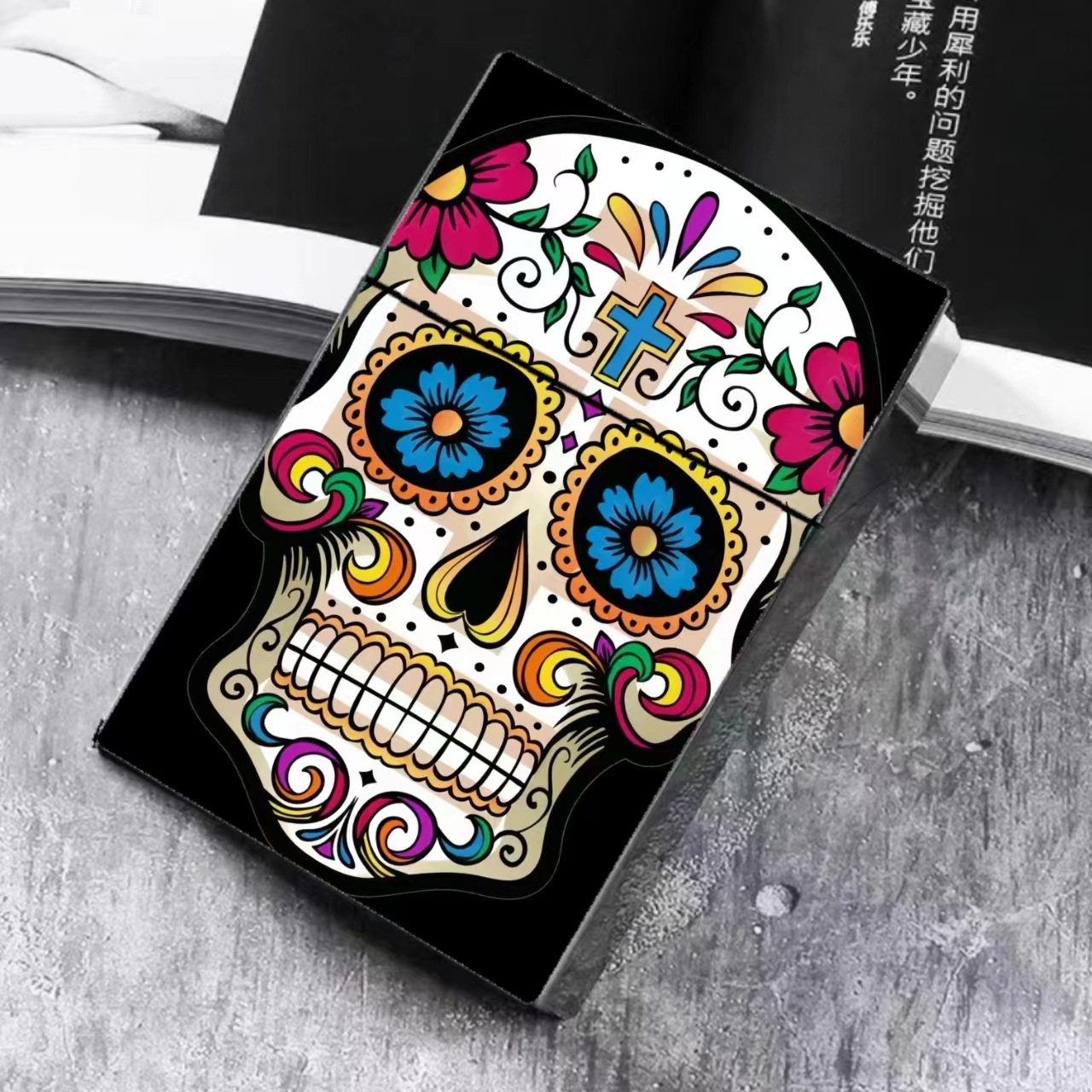 粗支自动弹烟盒 骷髅艺术创意烟盒 翻盖便携粗支烟盒烟盒外包装
