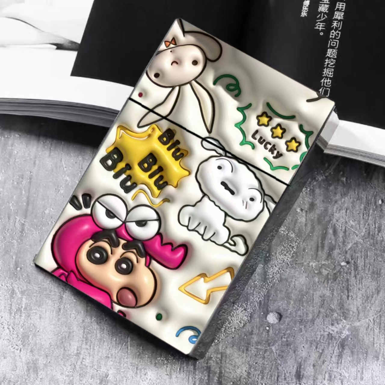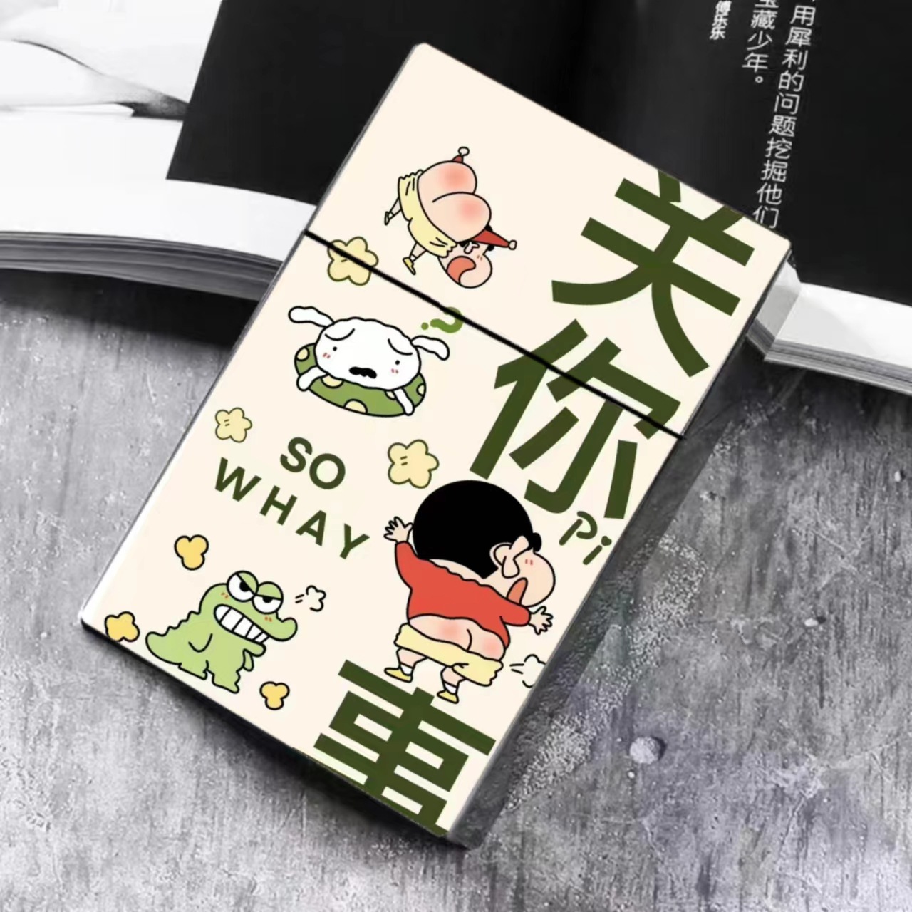 卡通小新收纳盒 20支粗支烟盒按压自动弹塑料盒支持抖音面单代发