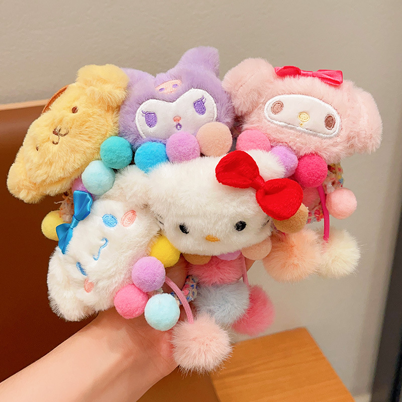 儿童三丽鸥毛球头绳女童可爱发圈高弹耐用皮筋扎丸子头高马尾发饰