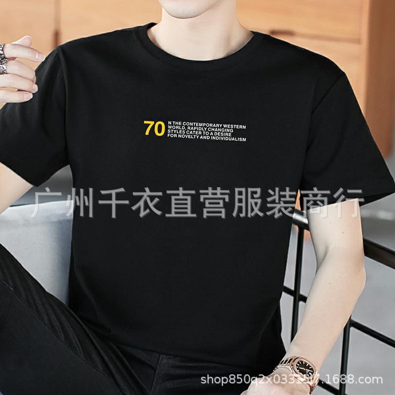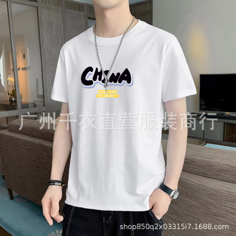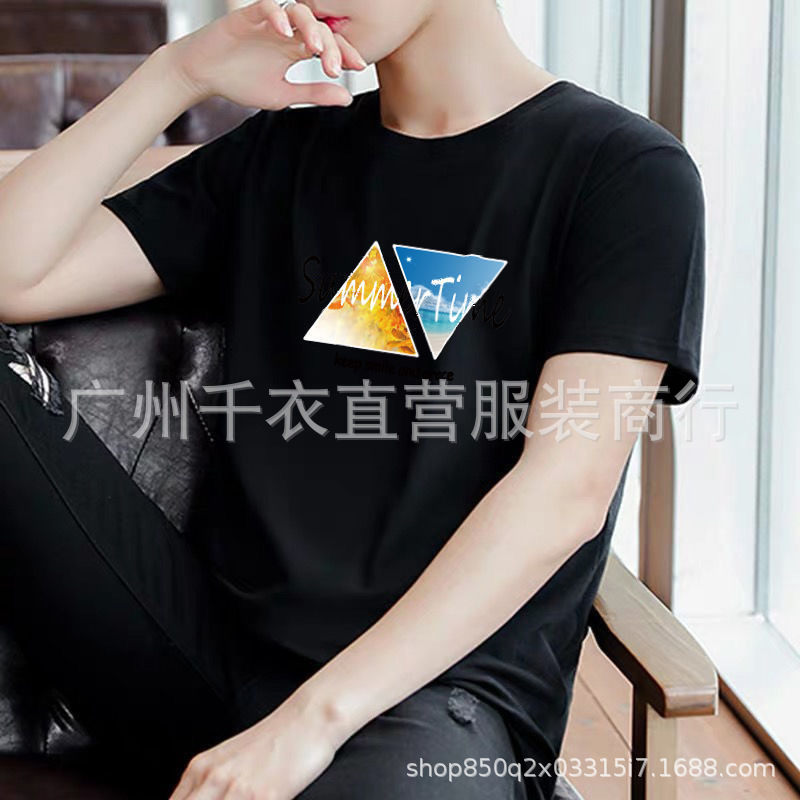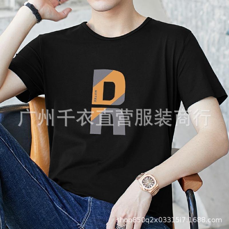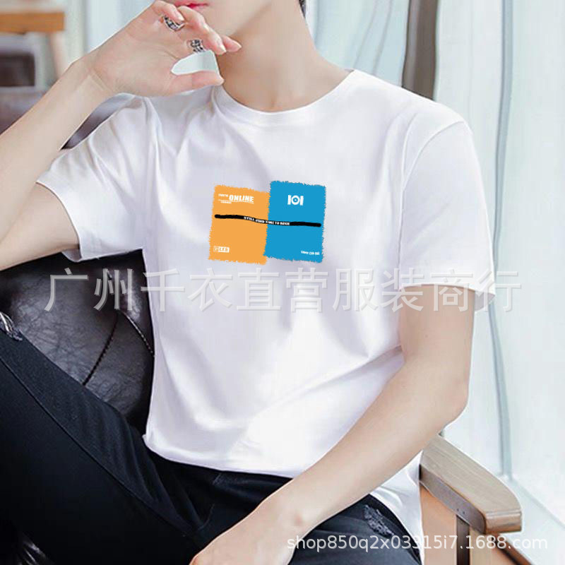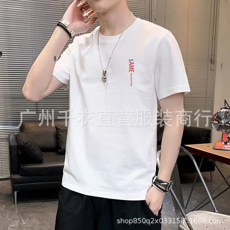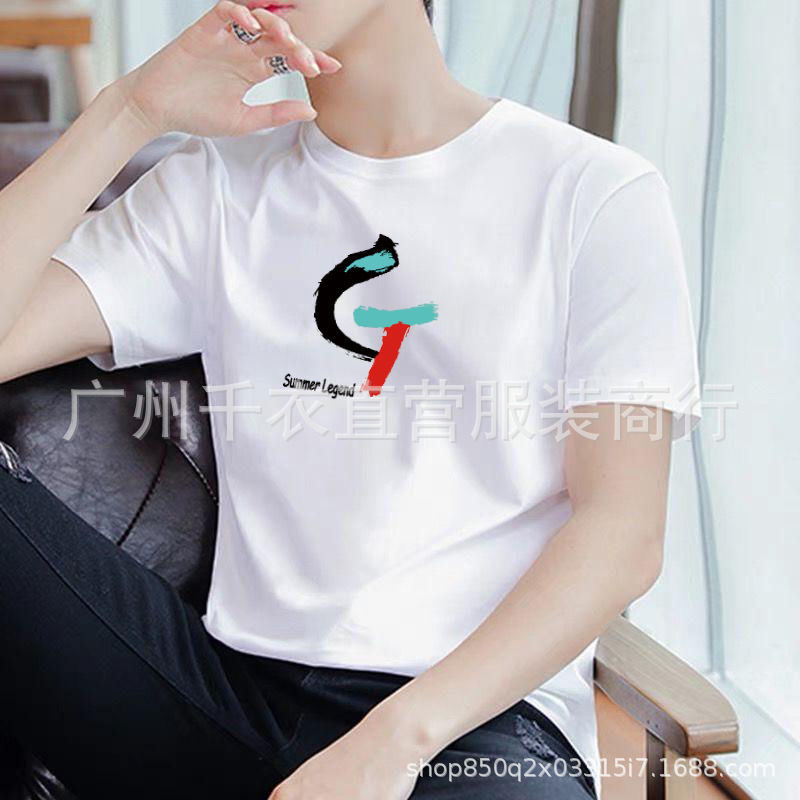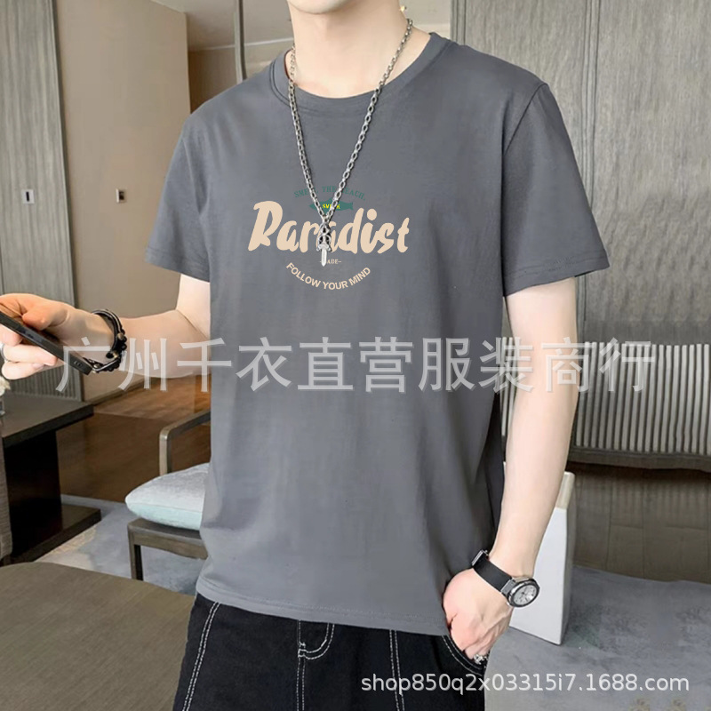2024夏季新款靓仔男装短袖T恤外贸男士t恤地摊珠地棉半袖上衣批发
