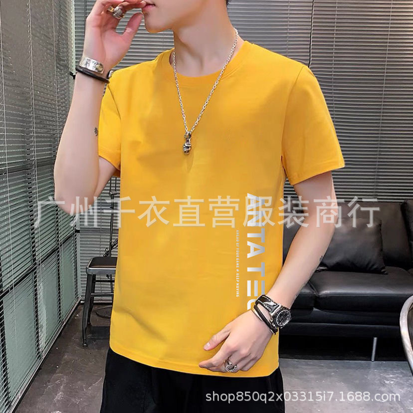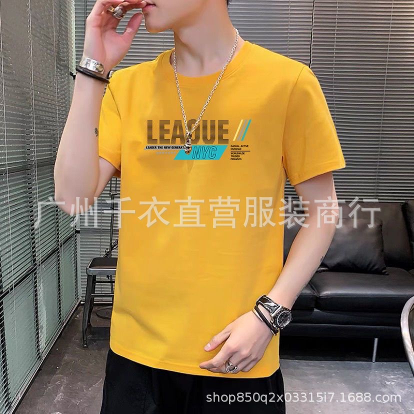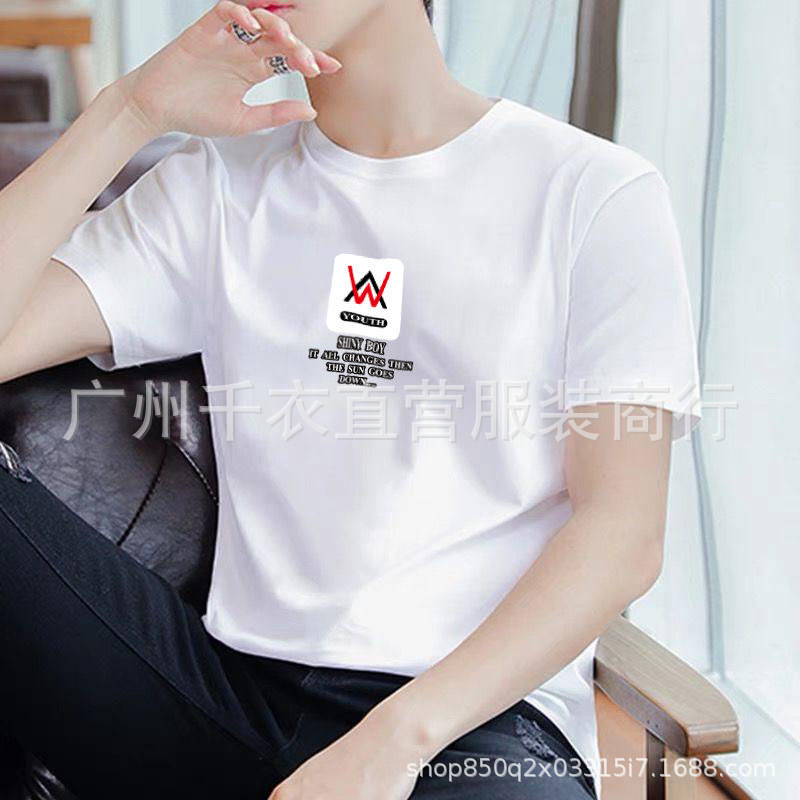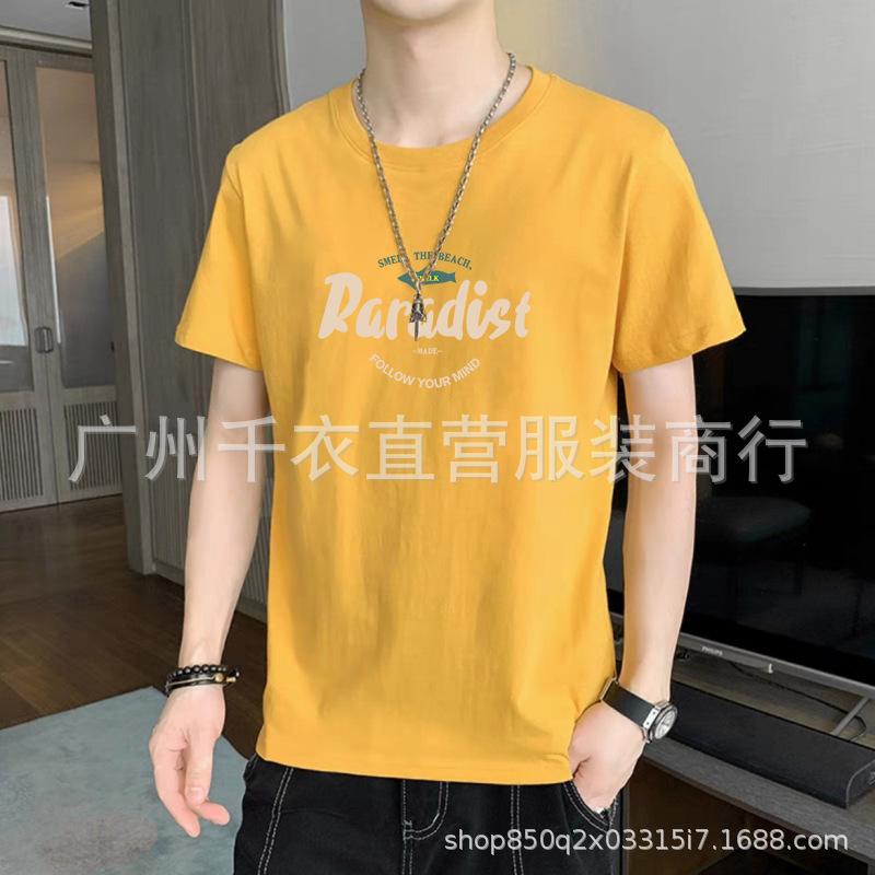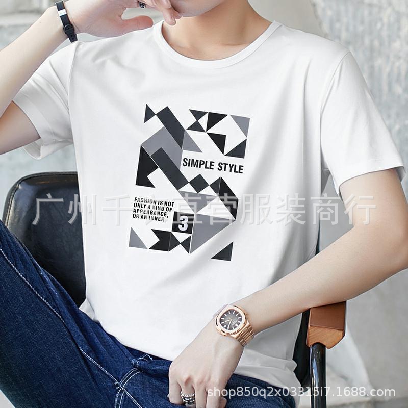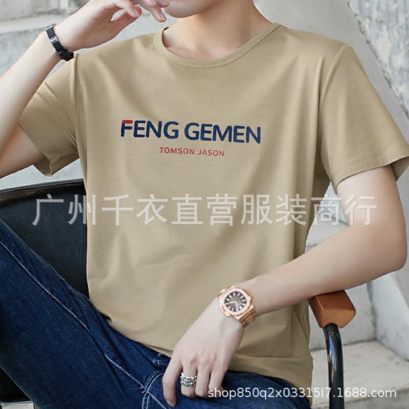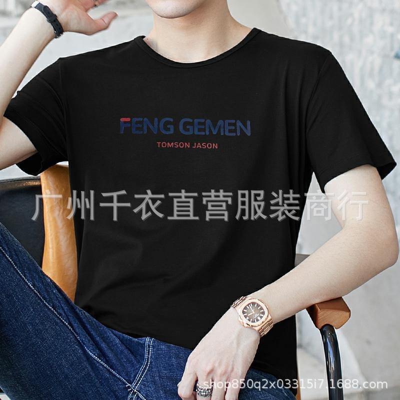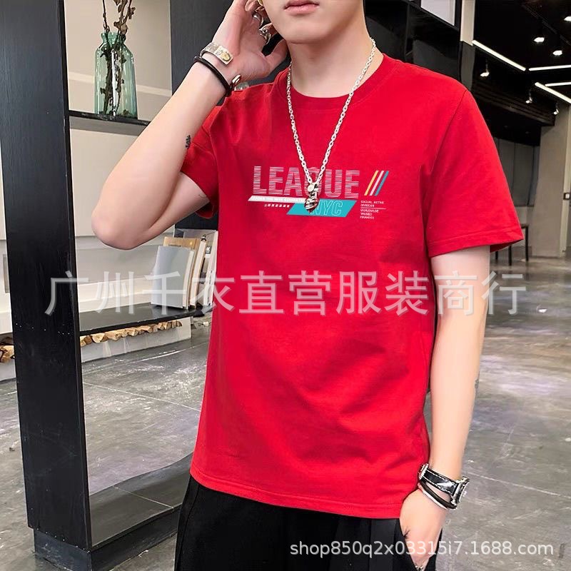 2024夏季新款靓仔男装短袖T恤外贸男士t恤地摊珠地棉半袖上衣批发