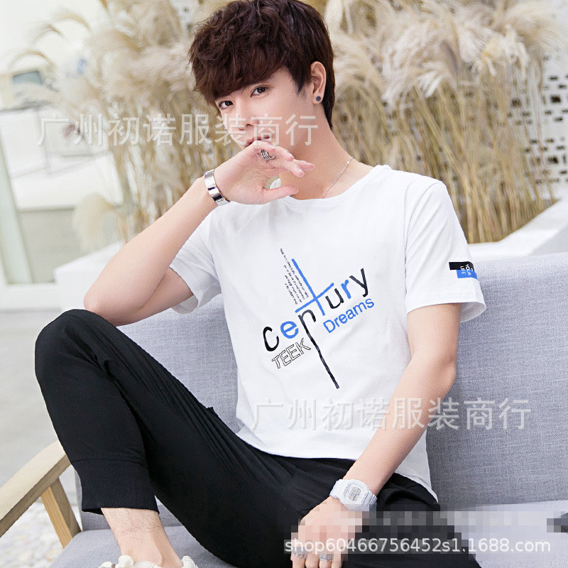 夏季新款t恤男装半袖上衣圆领潮流男士短袖T恤上衣外贸地摊批发