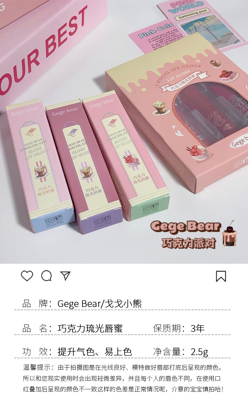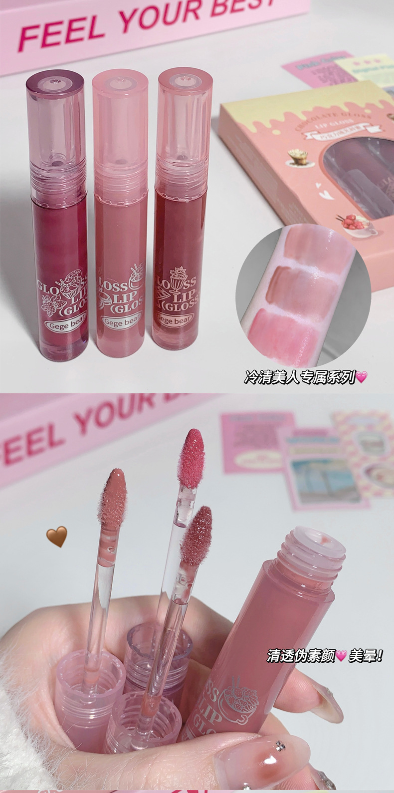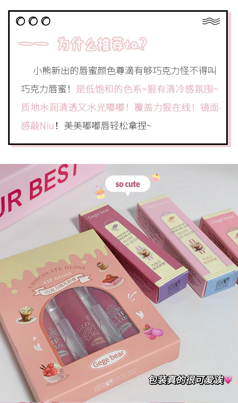 Gegebear小熊琉光唇蜜 润泽保湿嘟嘟唇 不易沾杯显嫩提色口红套盒
