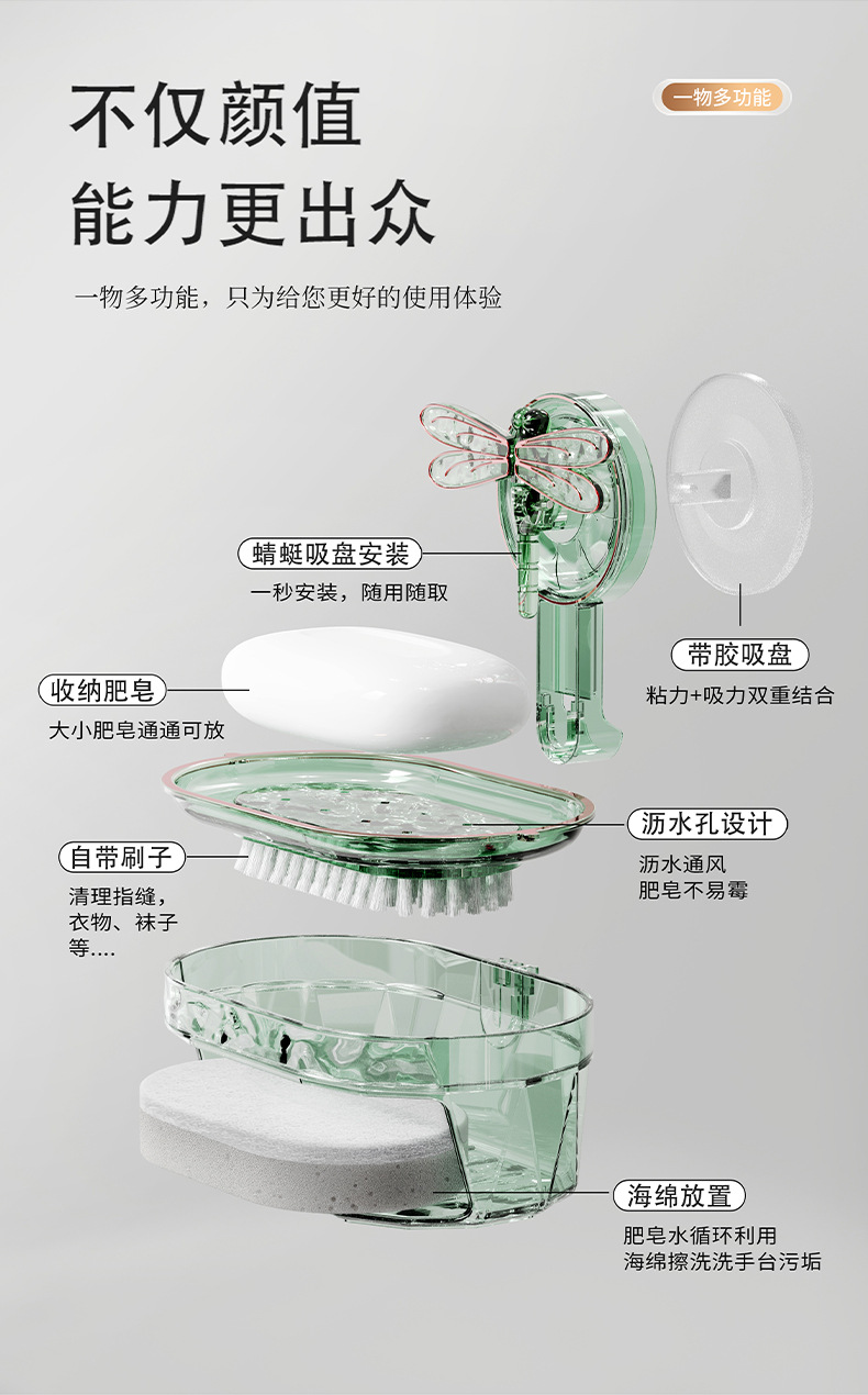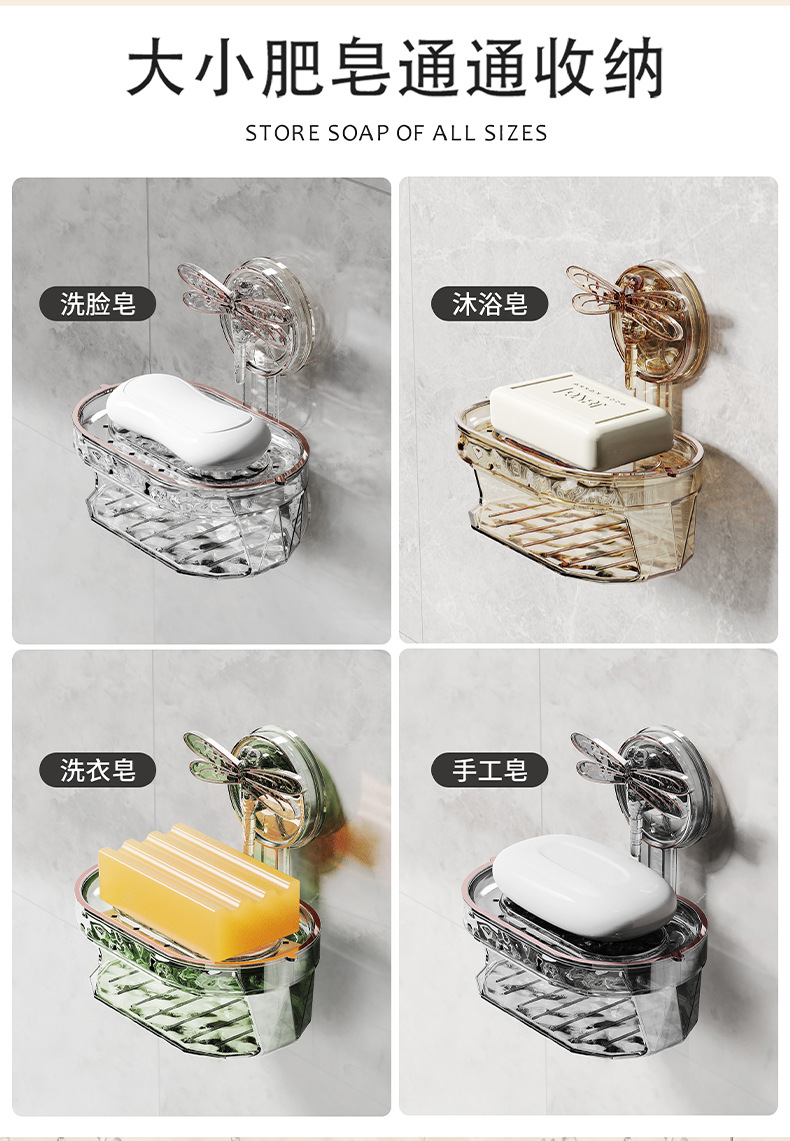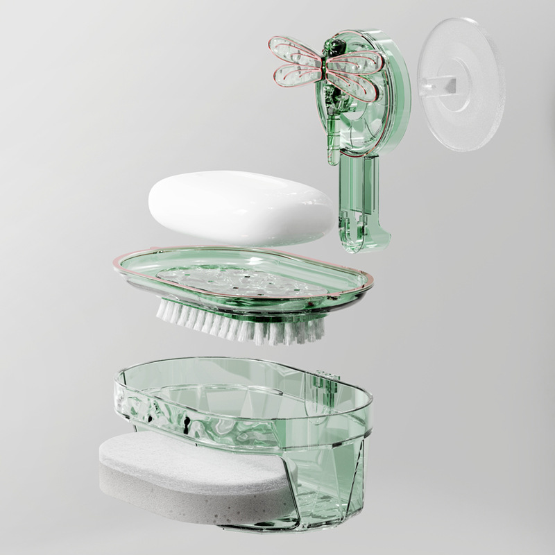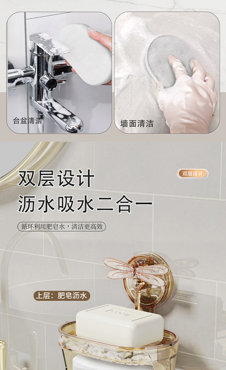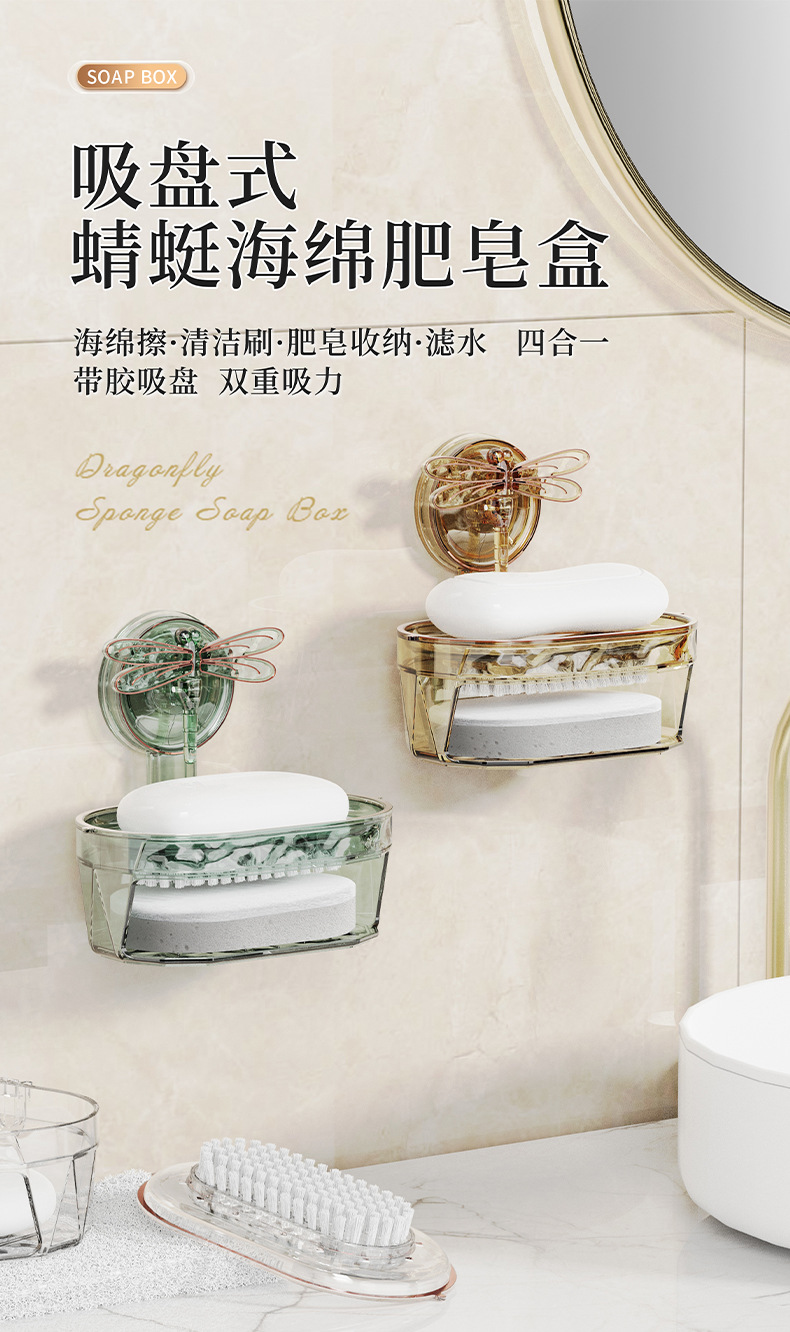 蜻蜓吸盘肥皂盒壁挂式免打孔多功能香皂盒沥水海绵刷子浴室家用