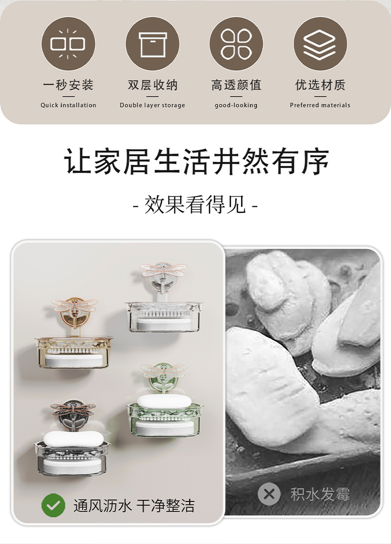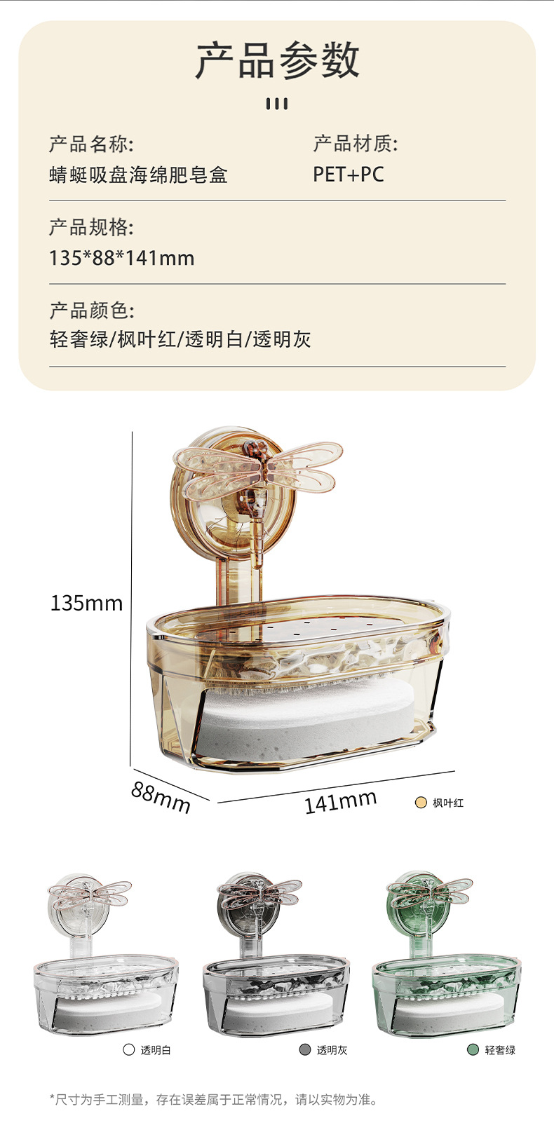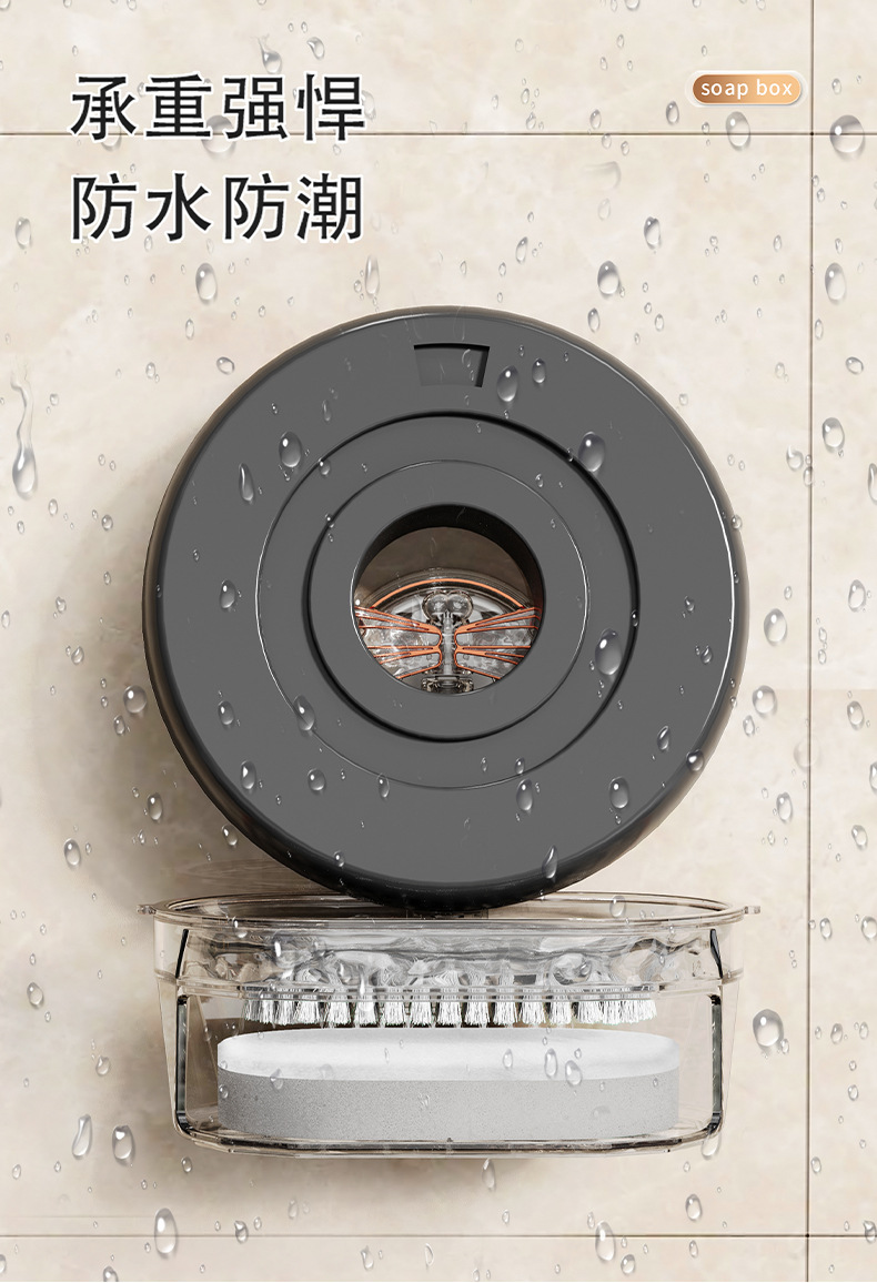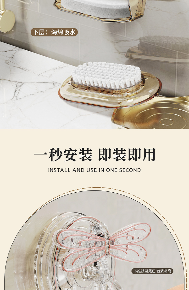 蜻蜓吸盘肥皂盒壁挂式免打孔多功能香皂盒沥水海绵刷子浴室家用