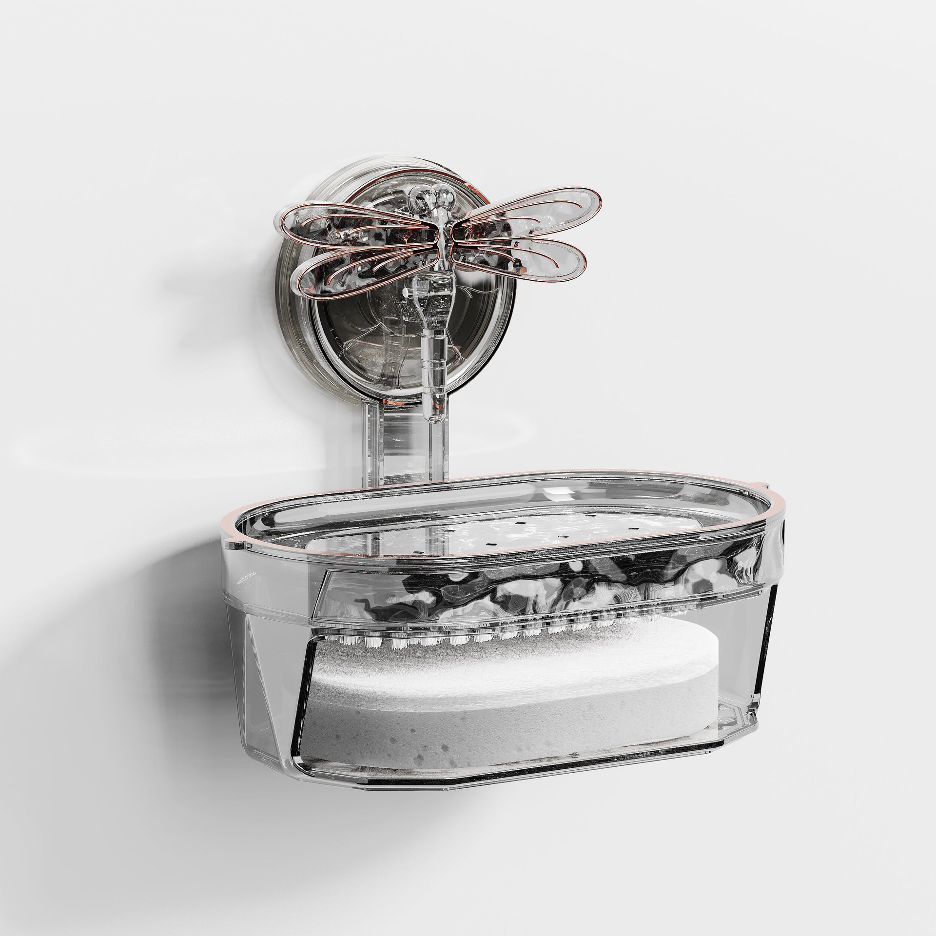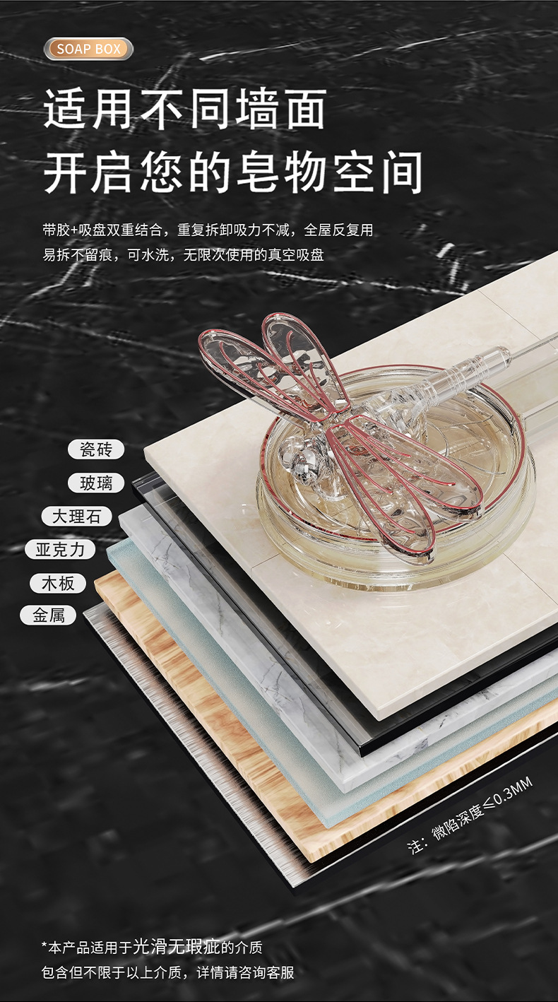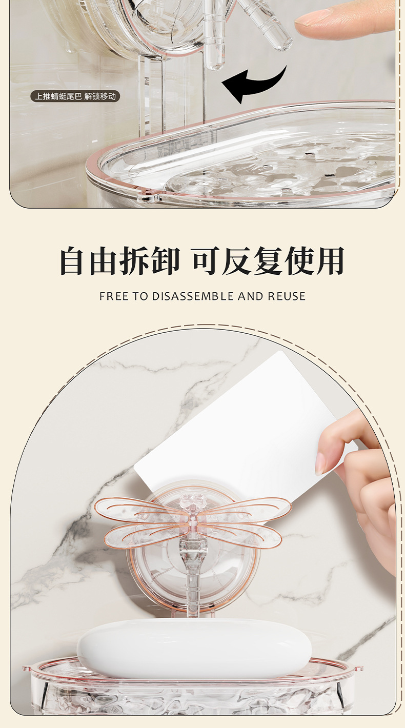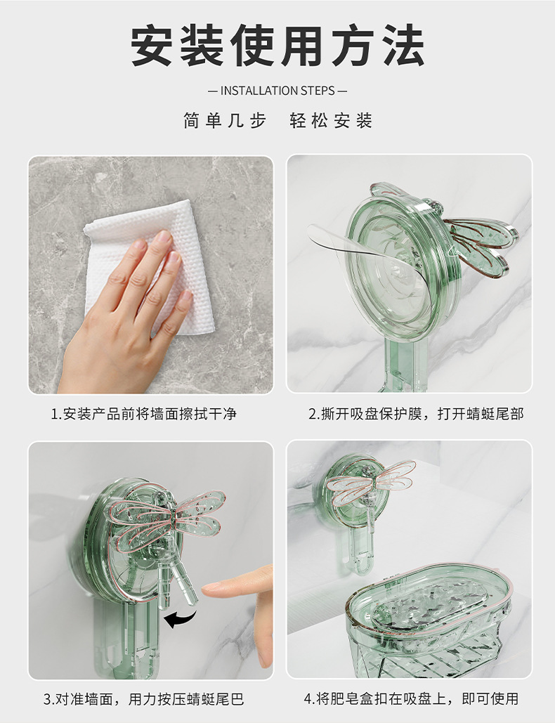 蜻蜓吸盘肥皂盒壁挂式免打孔多功能香皂盒沥水海绵刷子浴室家用