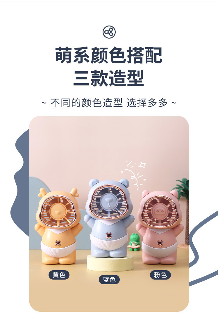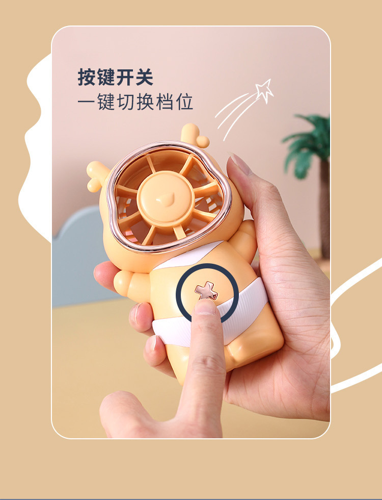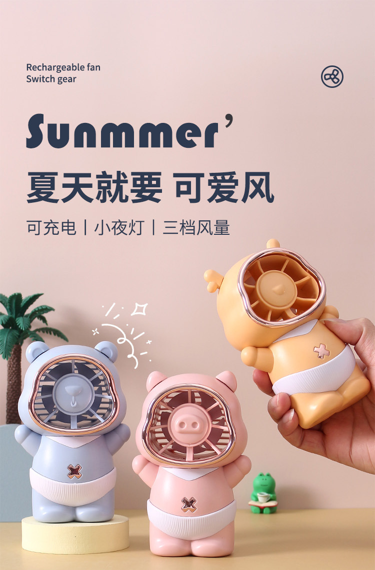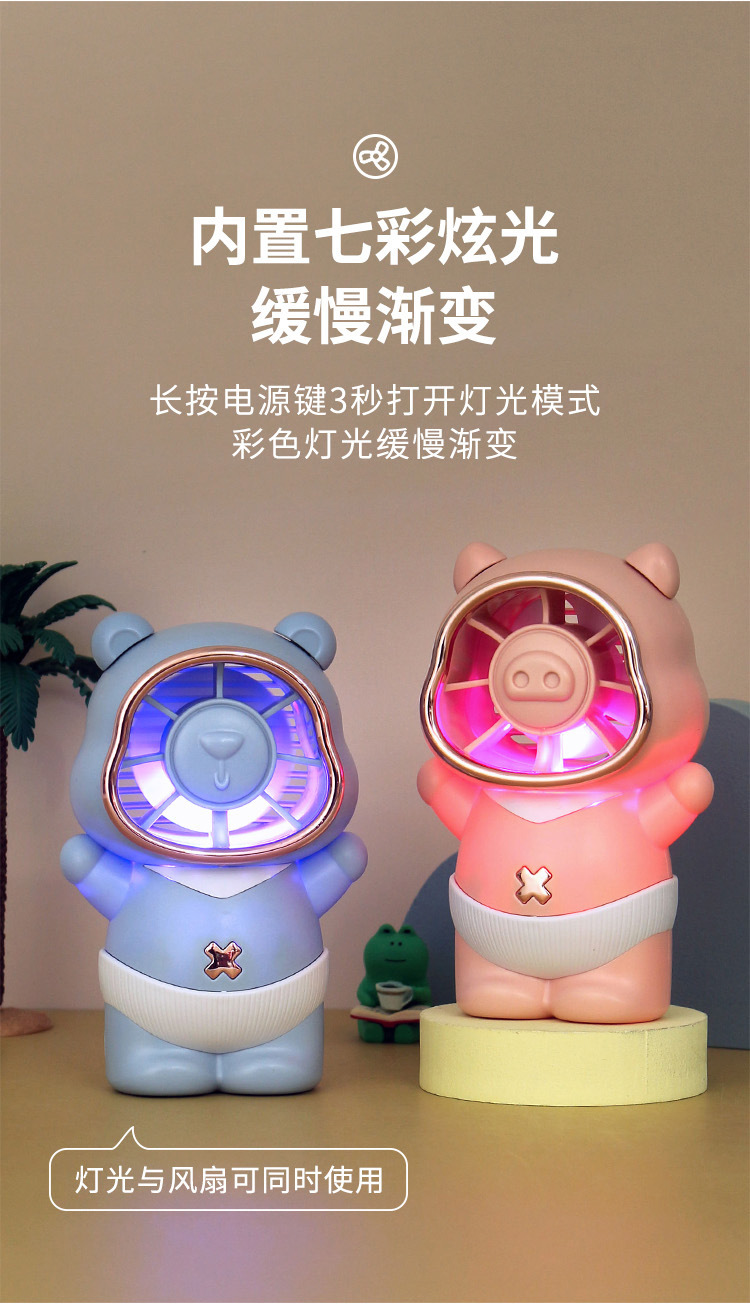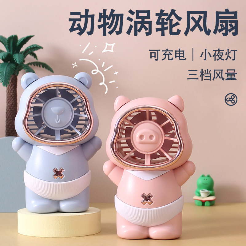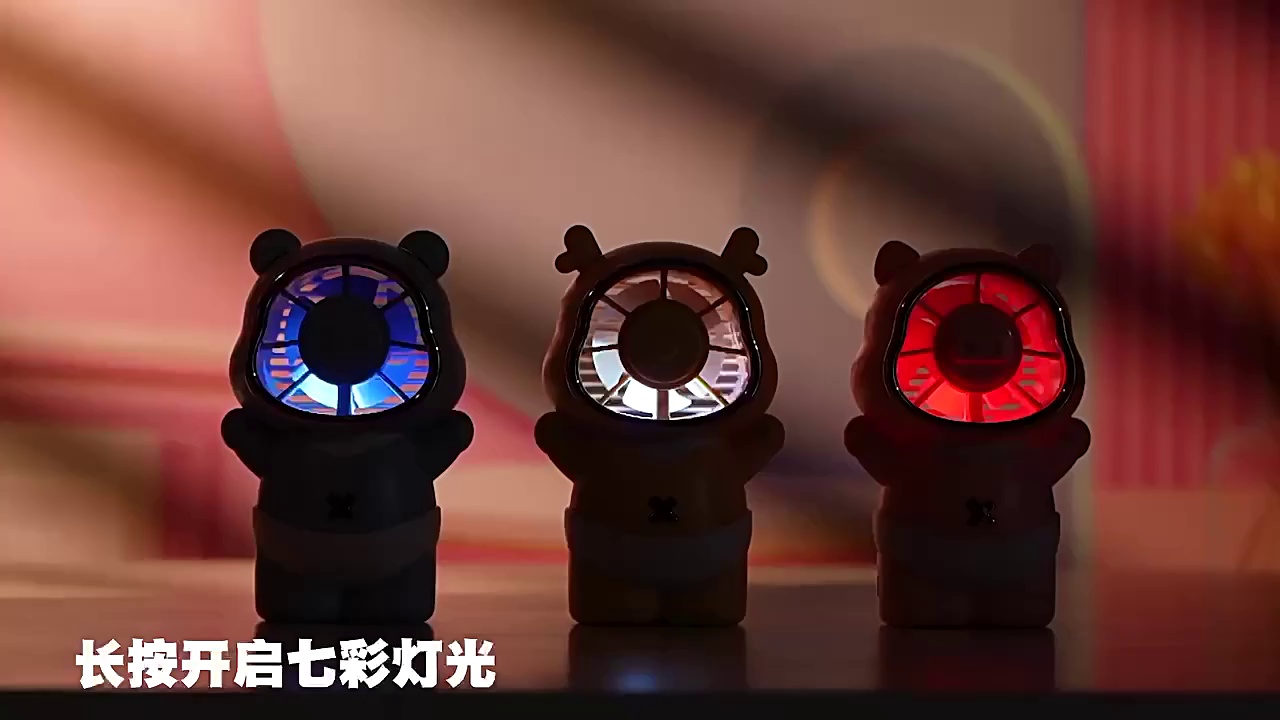 源头厂家可爱动物灯光手持充电风扇桌面随身大风力风扇3档风速